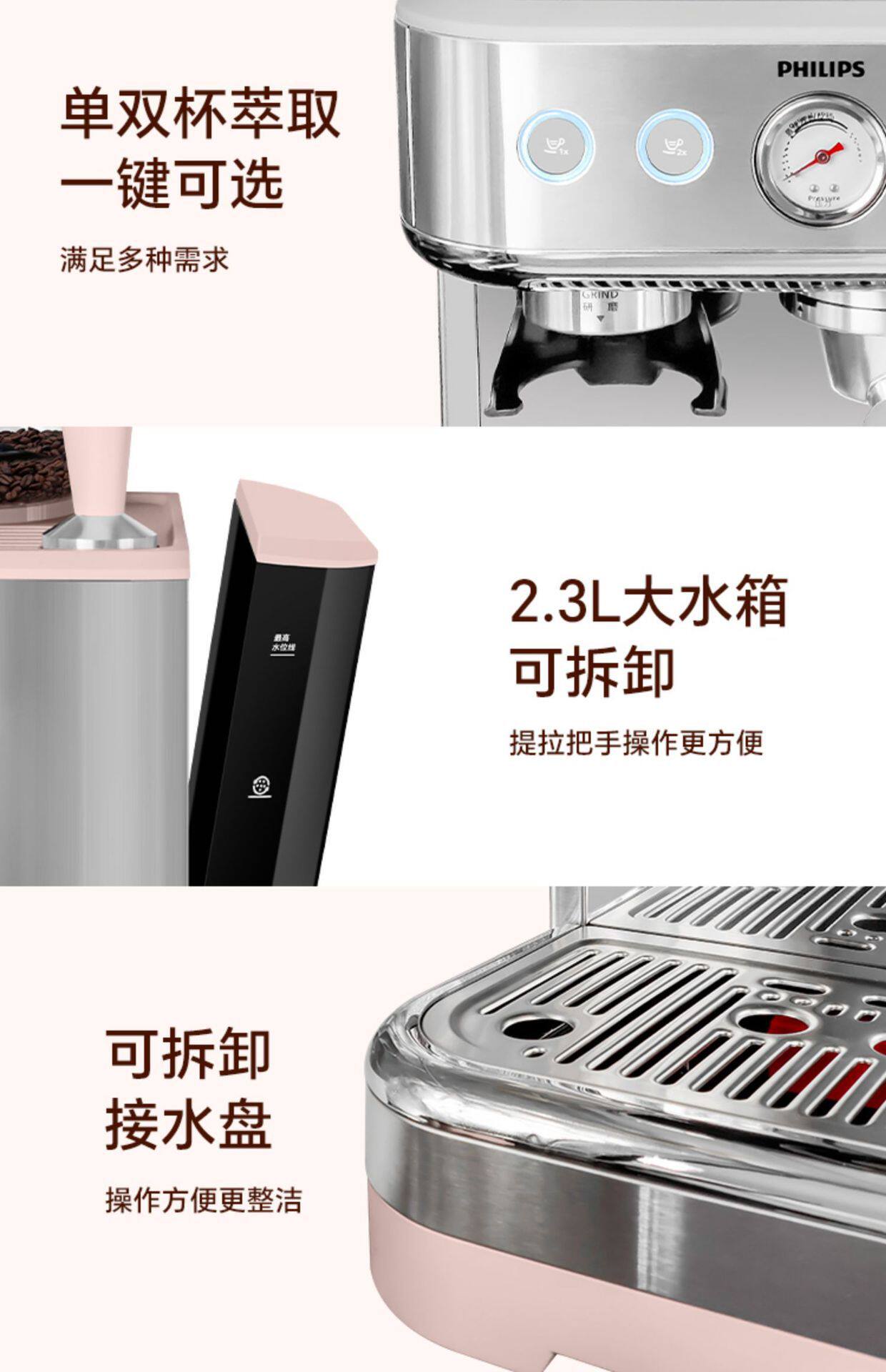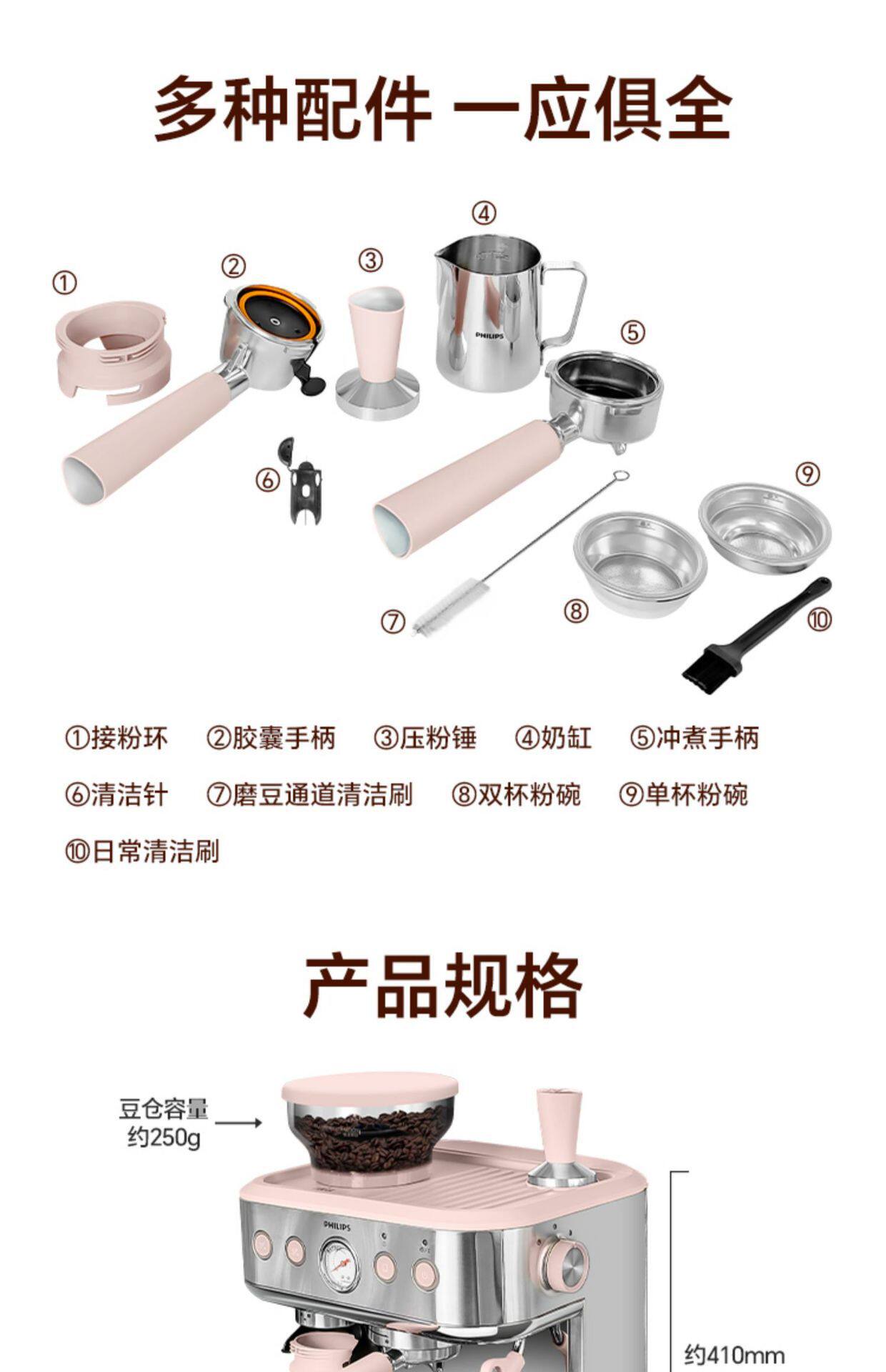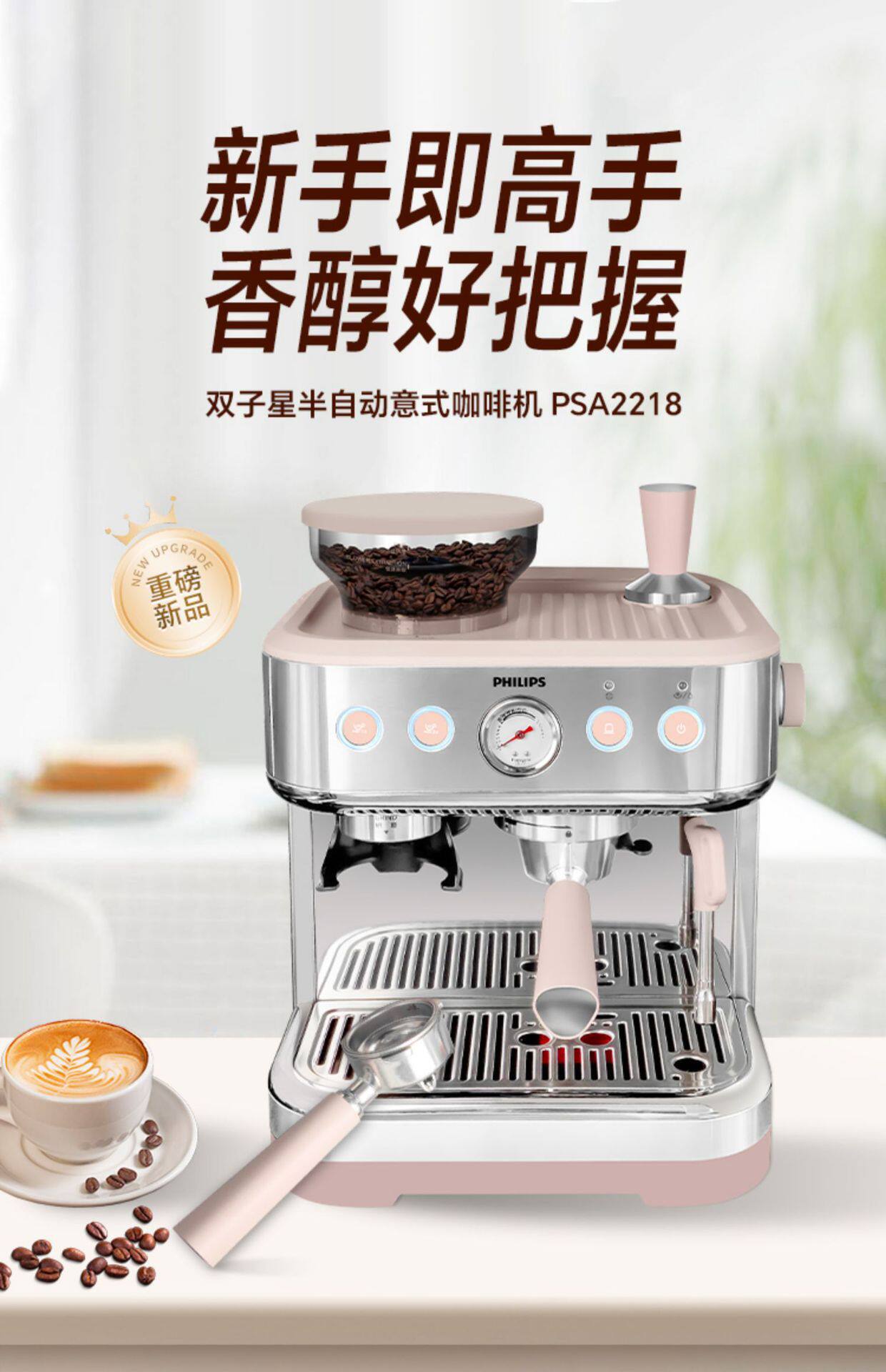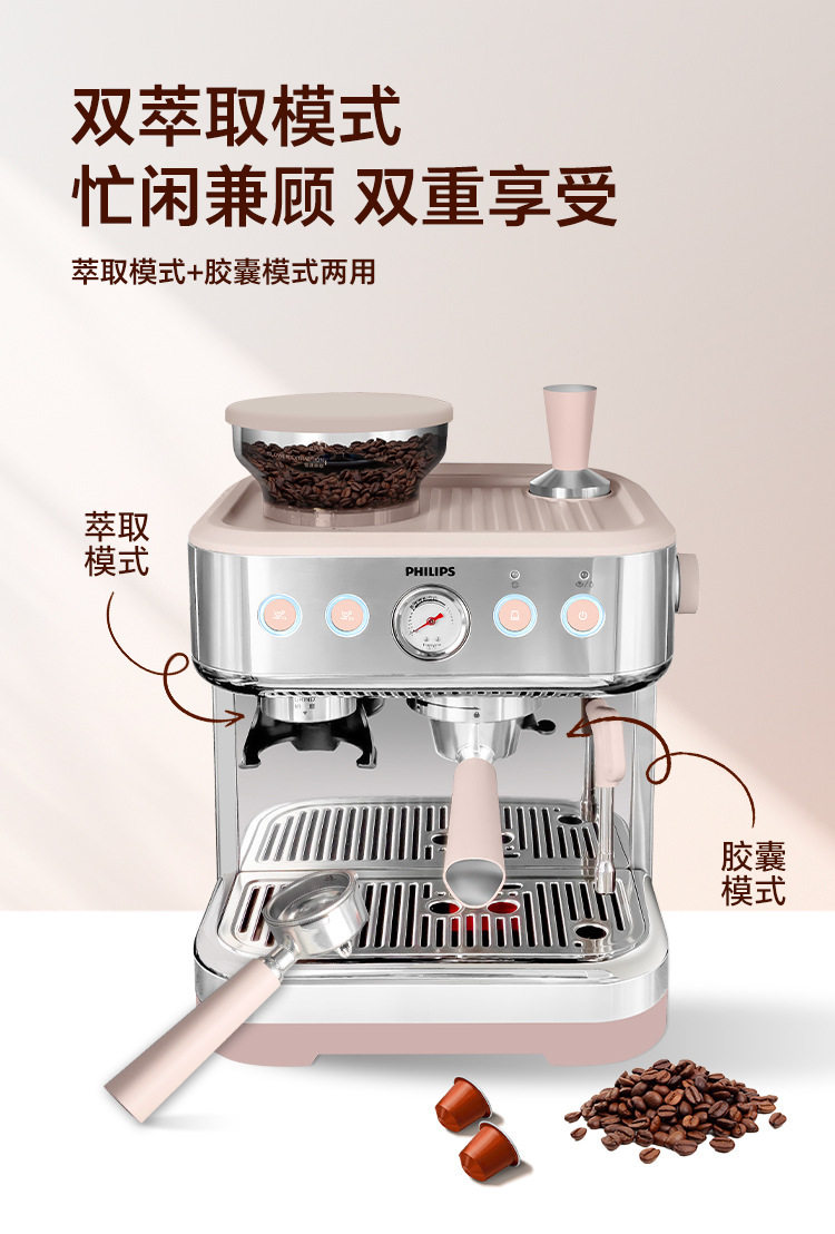 Philips Coffee Machine New Gemini Italian Home Semi-Automatic Capsule Grinding Integrated Psa2218