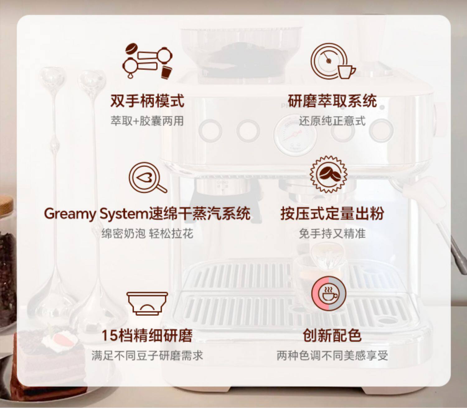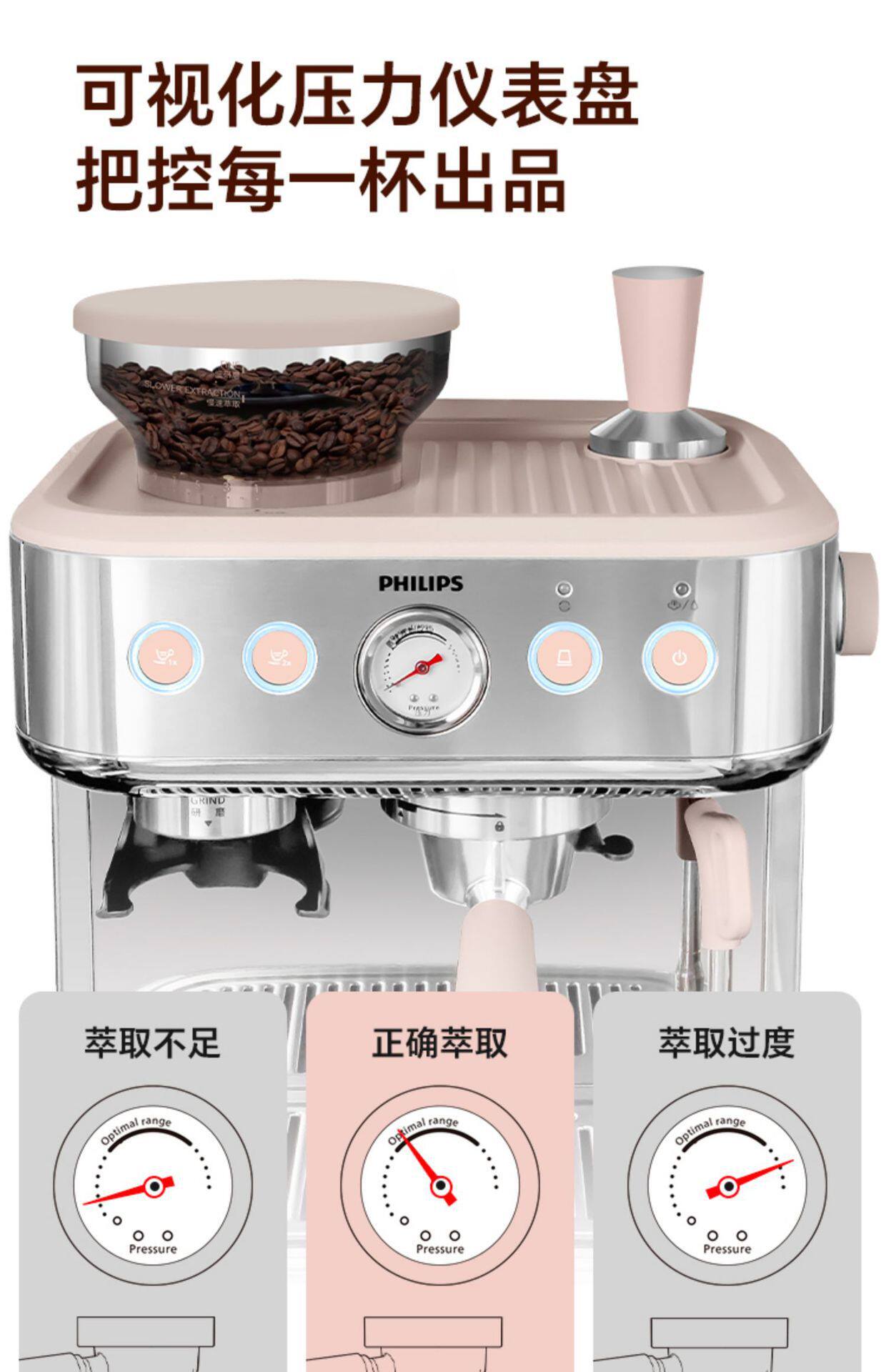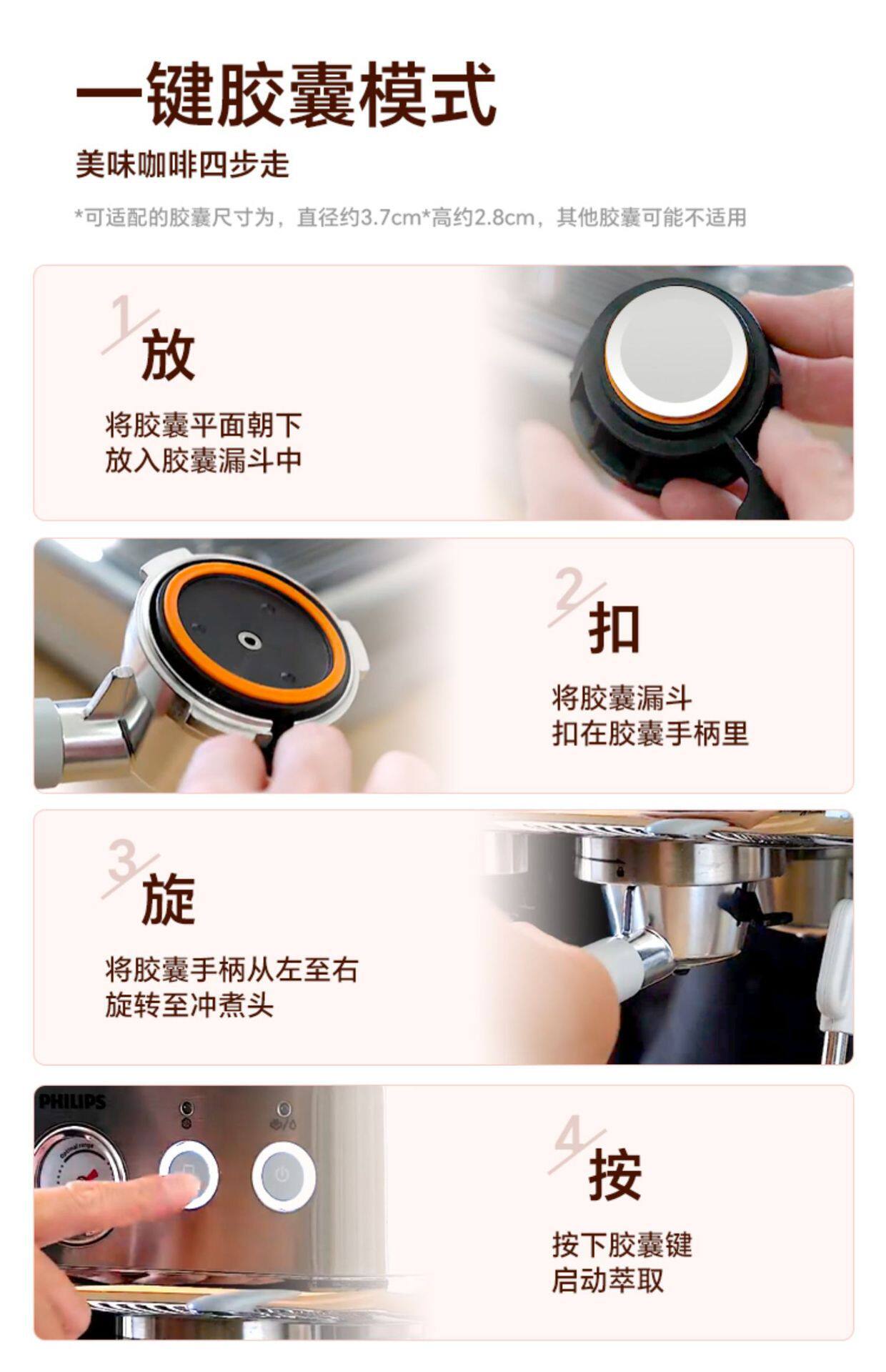 Philips Coffee Machine New Gemini Italian Home Semi-Automatic Capsule Grinding Integrated Psa2218
