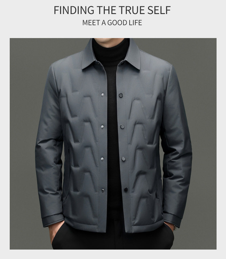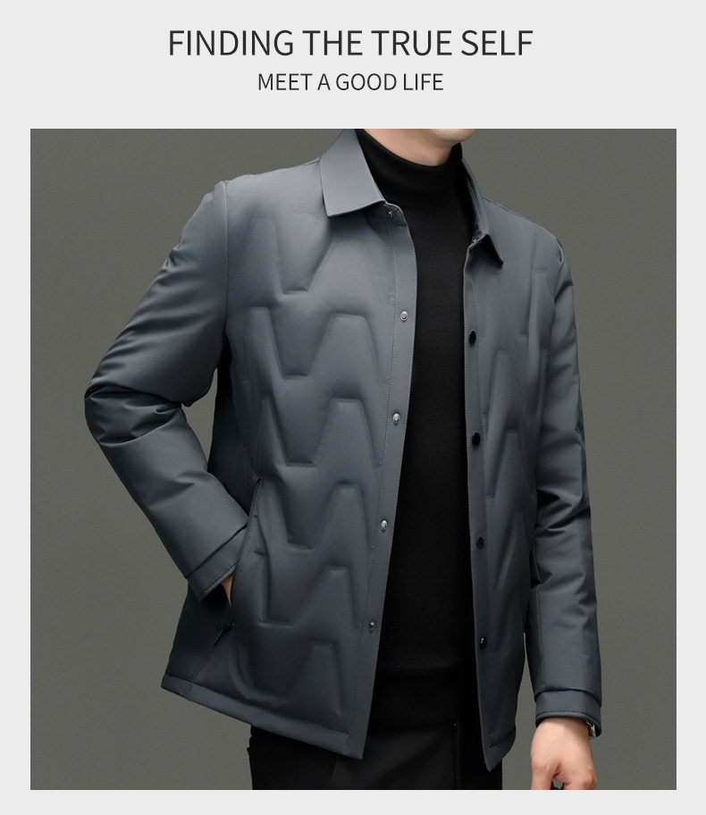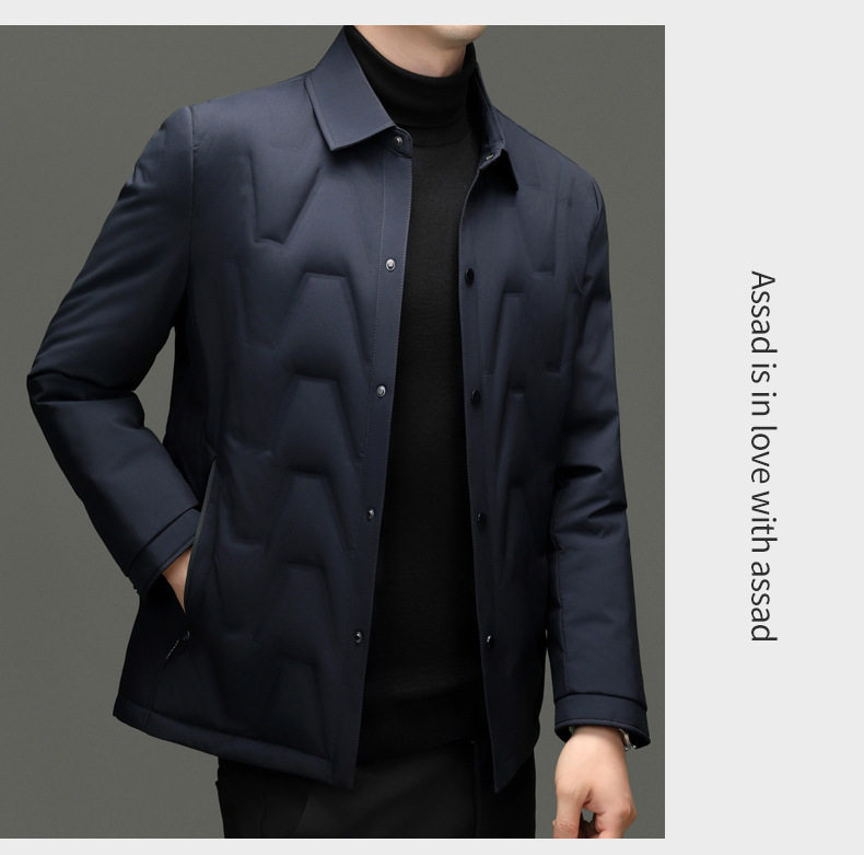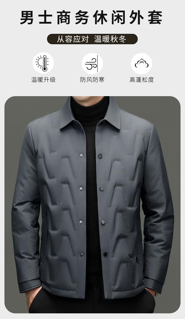 Shirt Style Men's down Jacket Middle-Aged Business Casual Lapel Snap Button Warm Jacket White Duck down Jacket Winter Wear