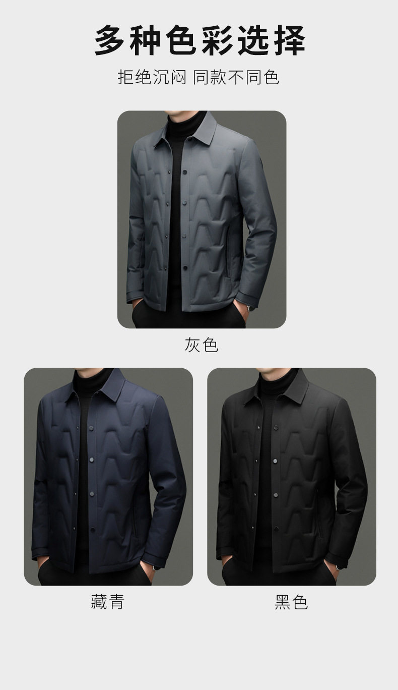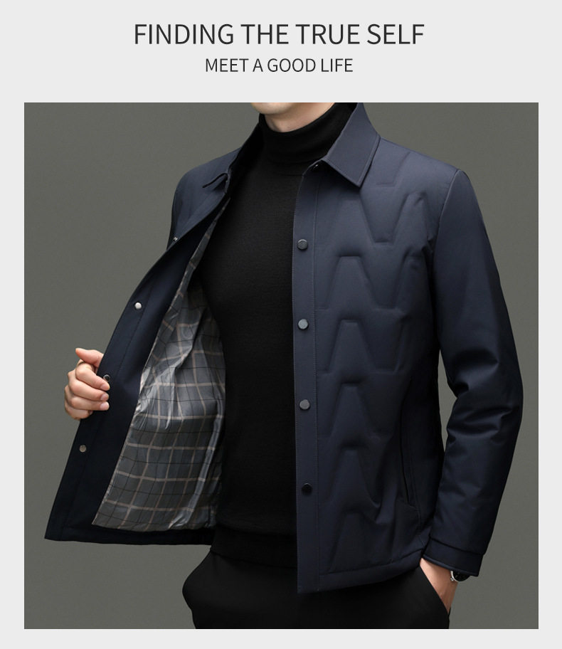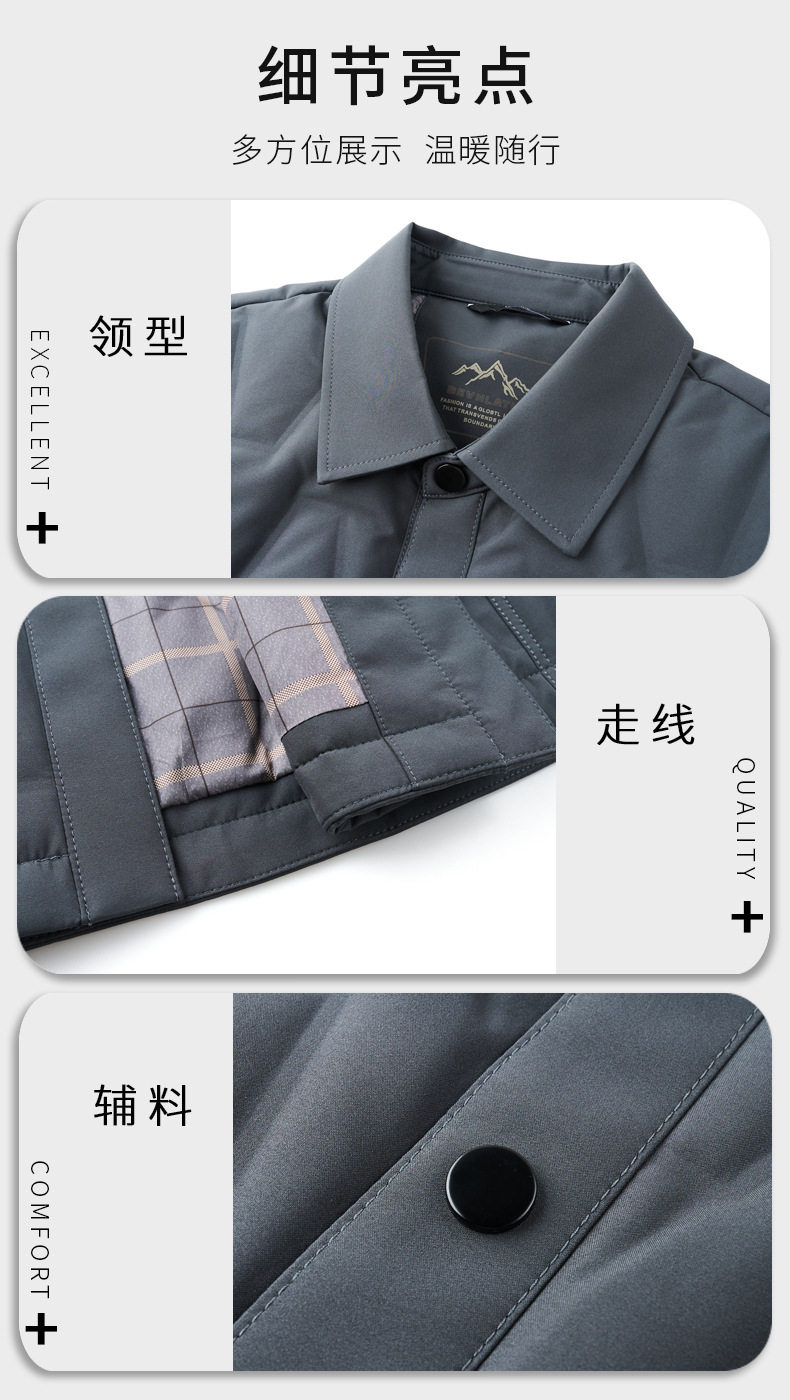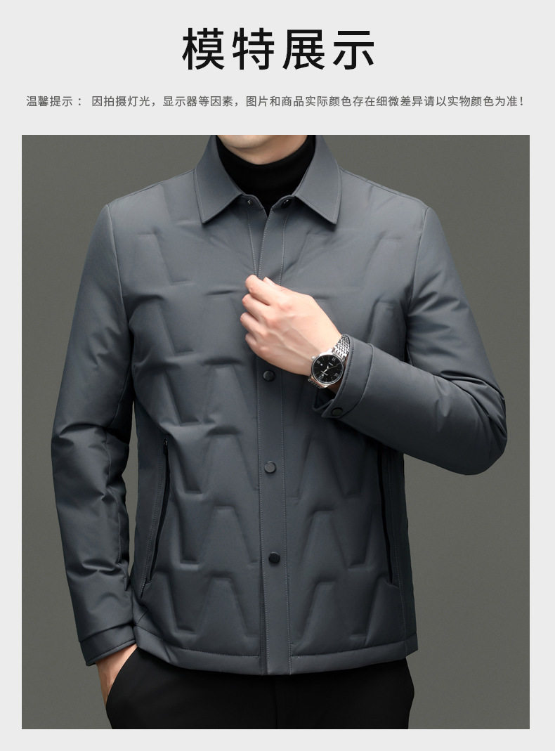Shirt Style Men's down Jacket Middle-Aged Business Casual Lapel Snap Button Warm Jacket White Duck down Jacket Winter Wear