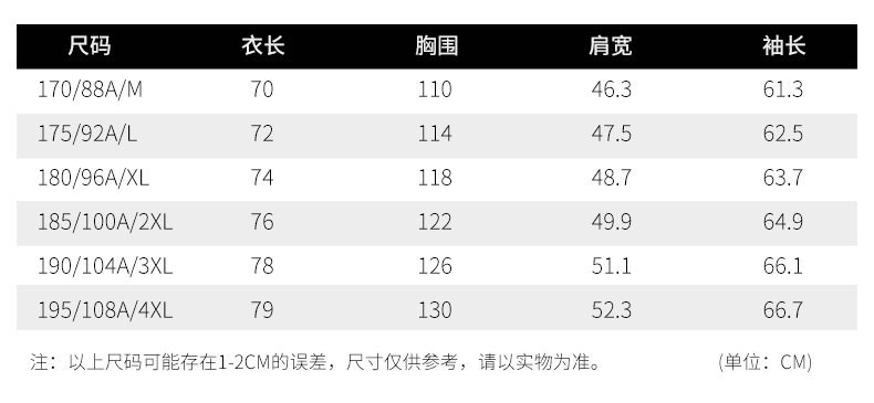 | Size | M/170,L/175,Xl/180,2xl/185l,3xl/190,4xl/195l |