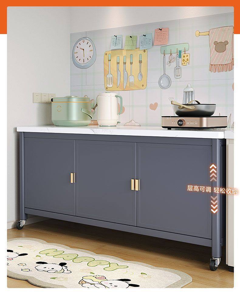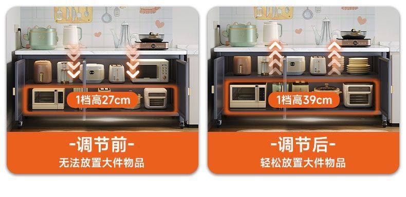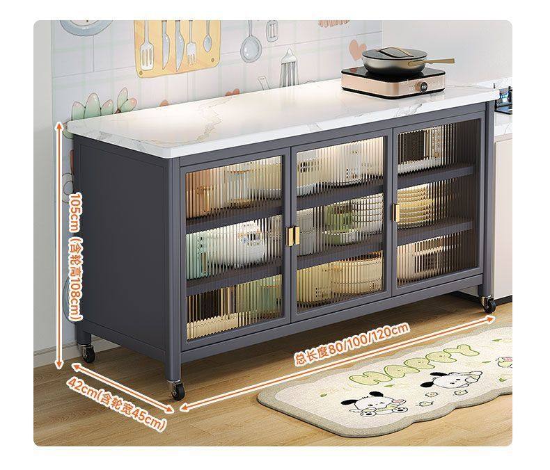 Double-Door Slate Kitchen Storage Rack Floor-Standing Multi-Layer Storage Cabinet Multi-Function Microwave Oven Vegetable Cutting Sideboard