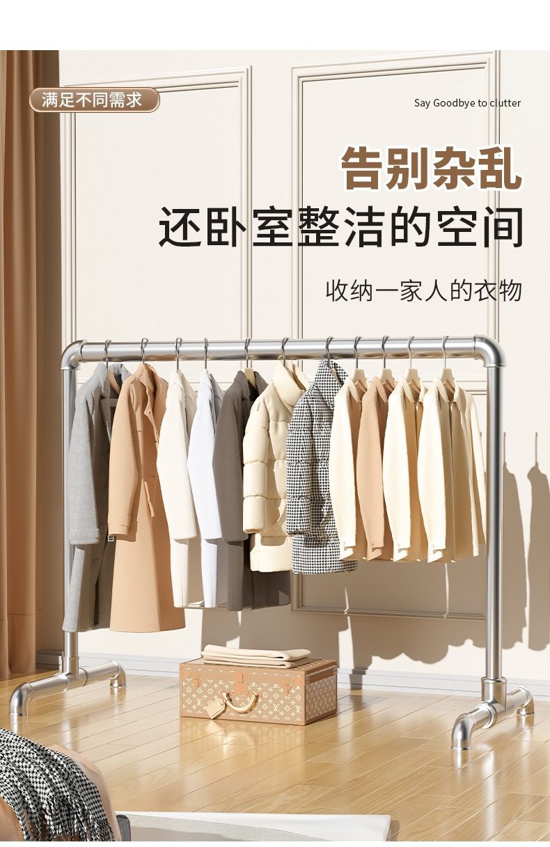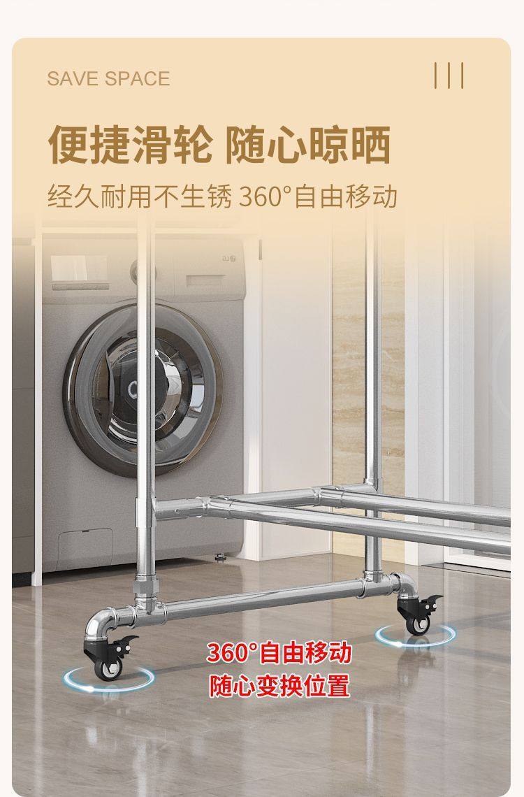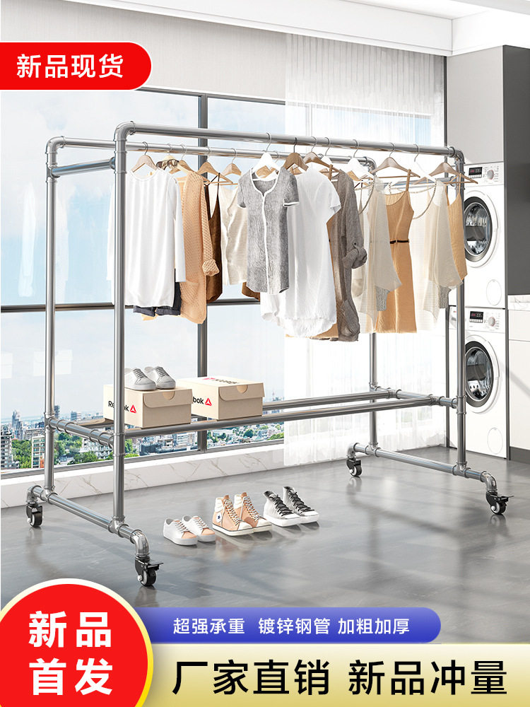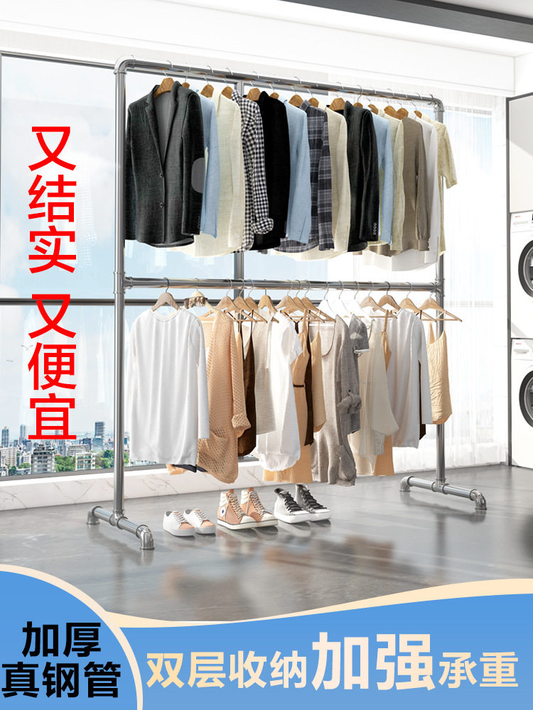 Steel Pipe Clothes Drying Rack, Clothes Rack, Clothes Drying Rod, Balcony Household Floor-Standing Bedroom Outdoor Clothes Hanging Simple Quilt Drying Pipe