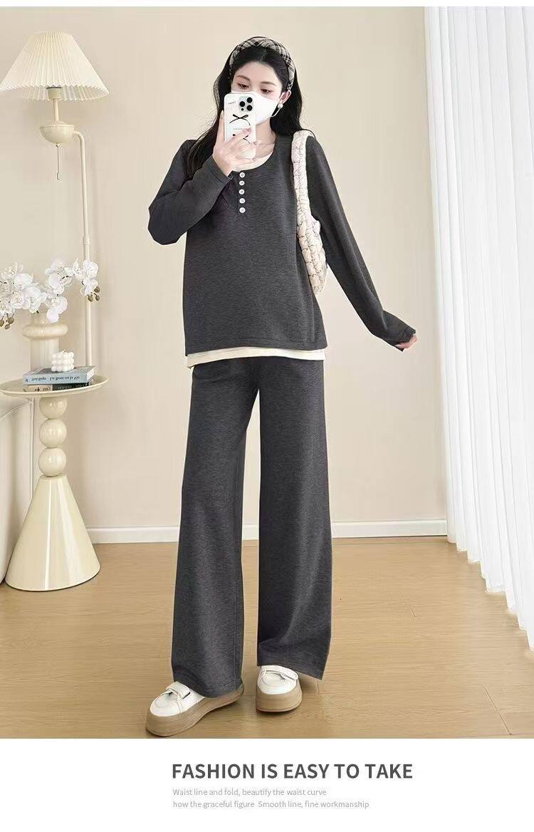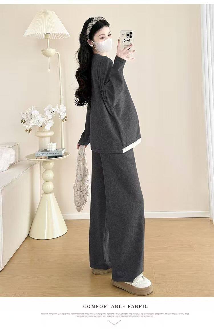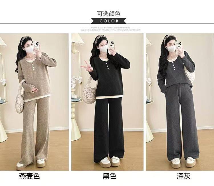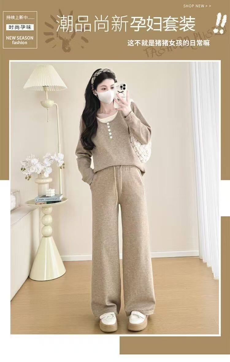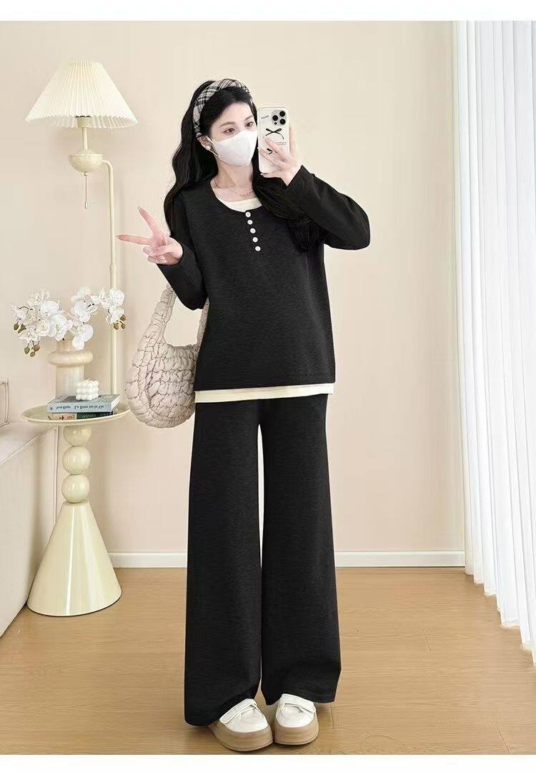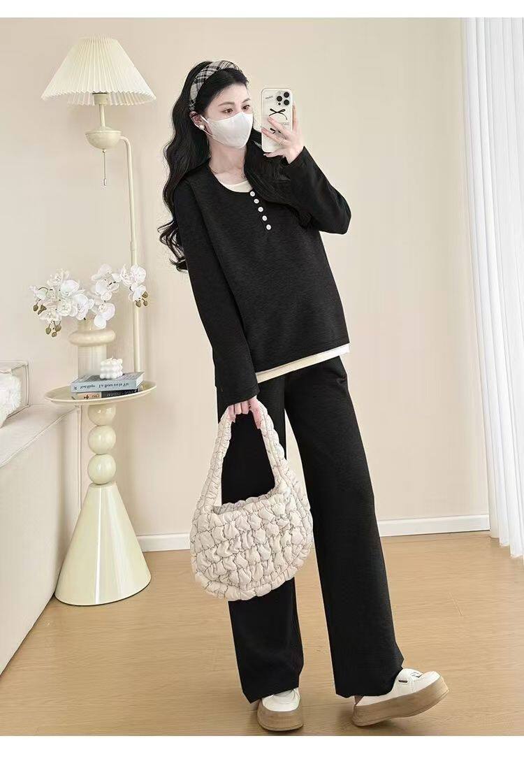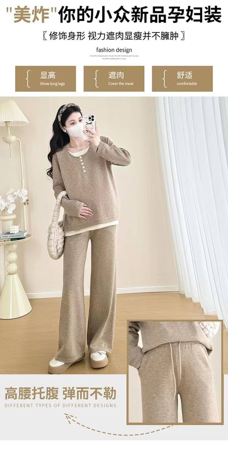 Maternity Wear 2025 New Autumn Fake Two-Piece Flesh-Covering Fashionable Casual Spring Autumn Winter Long-Sleeved Slimming Look Pants Suit