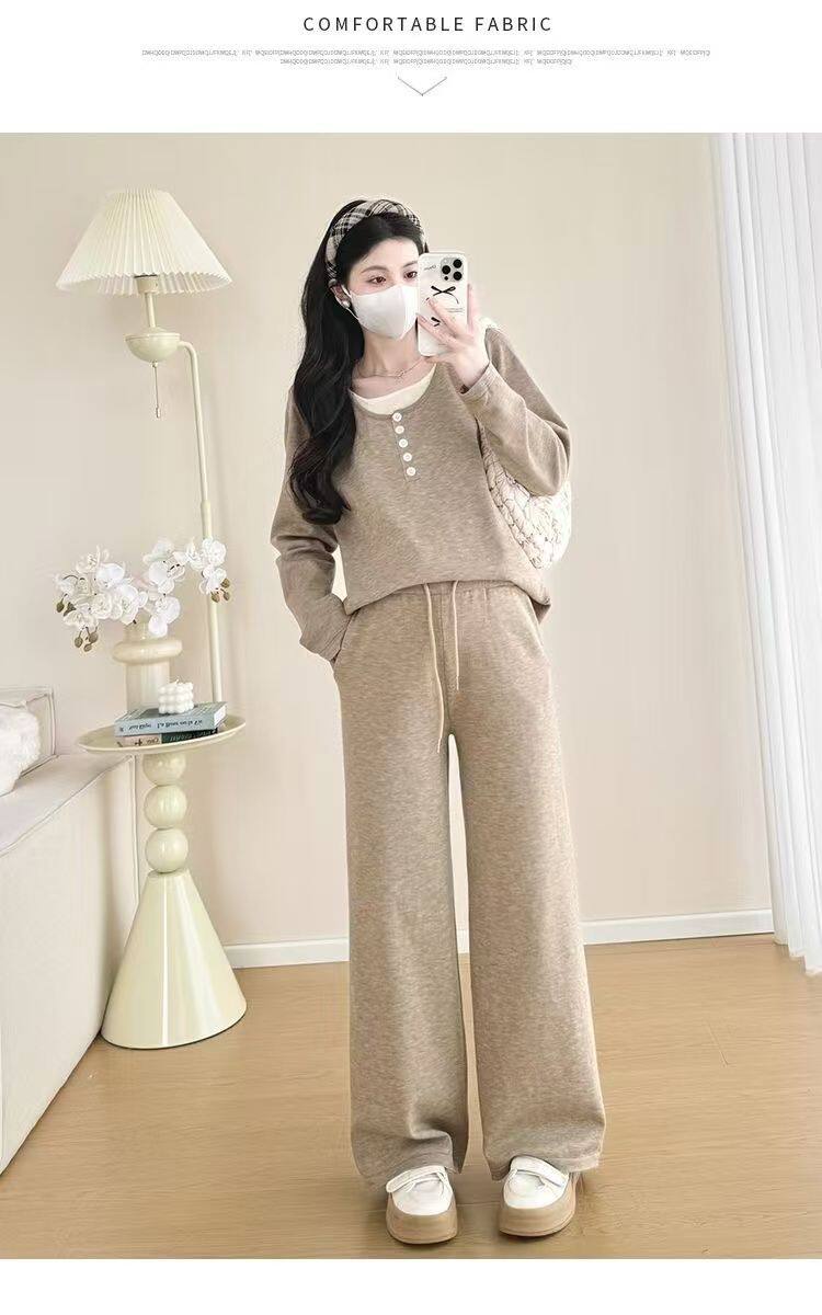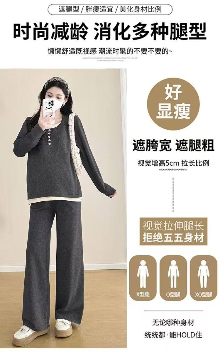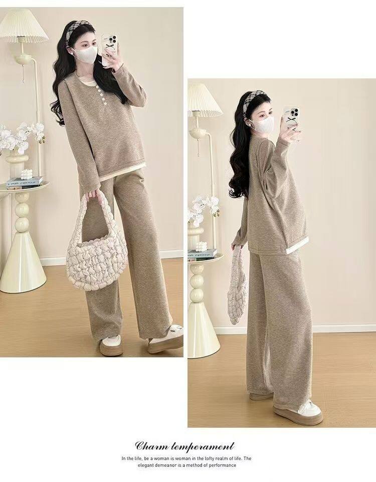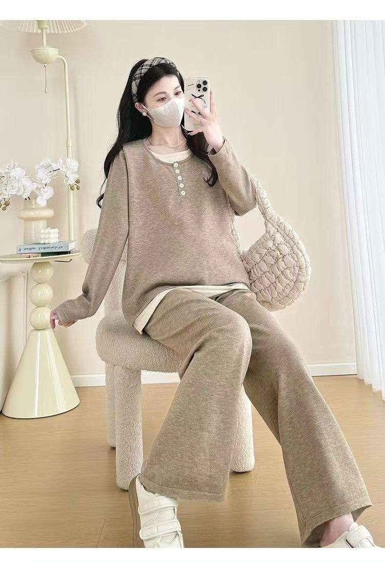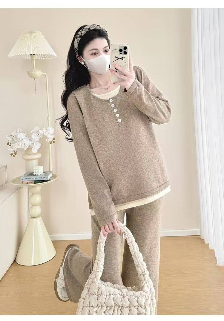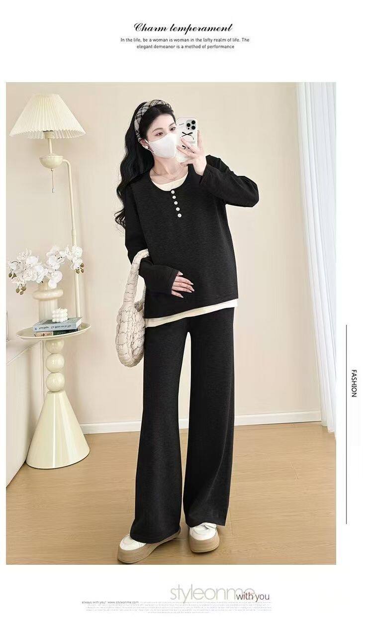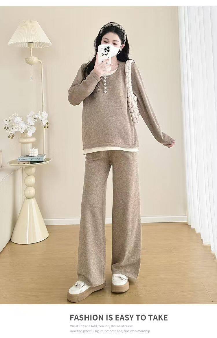 Maternity Wear 2025 New Autumn Fake Two-Piece Flesh-Covering Fashionable Casual Spring Autumn Winter Long-Sleeved Slimming Look Pants Suit