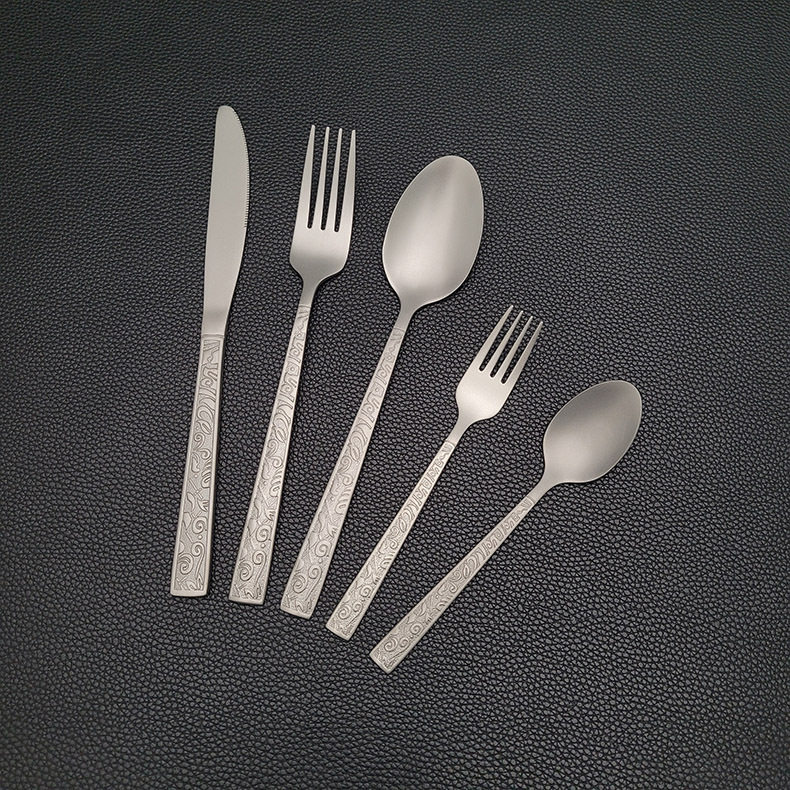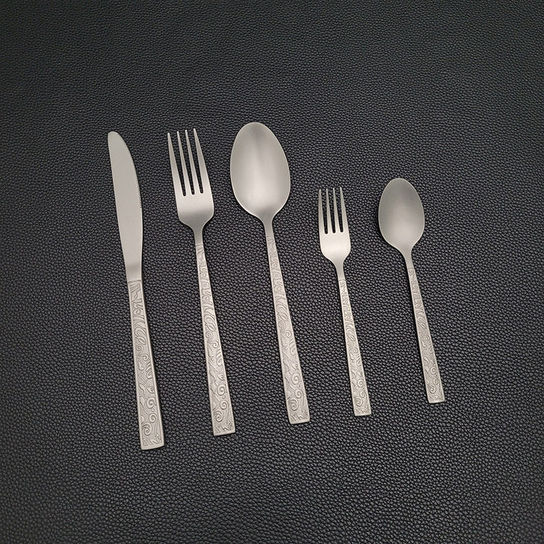 Factory Direct Sales Stainless Steel Titanium Purification Knife, Fork and Spoon Persian Pattern High-End Western Tableware Steak Knife and Fork Five-Piece Set