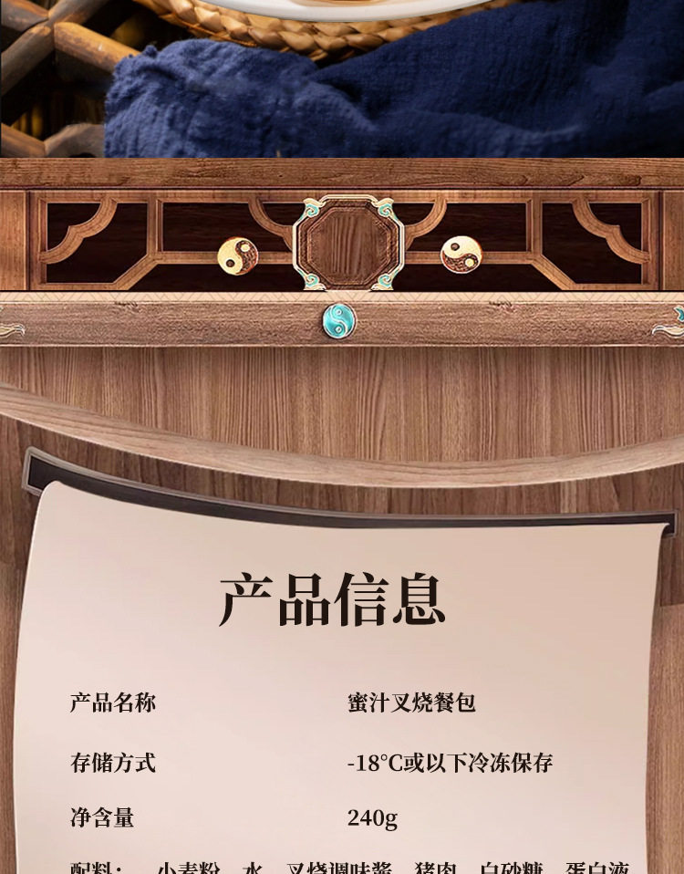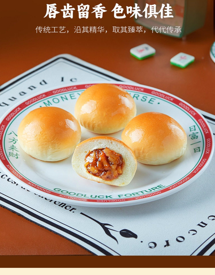 | Packaging specifications | 240g honey barbecued pork meal bag,[7 packs, 42 pieces] 260g barbecued pork buns, 6 pieces/pack,260g barbecued pork buns 6 pieces/pack,450g barbecued pork buns 9 pieces/bag,480g barbecued pork buns 6 pieces/pack,300g open barbecued pork buns 6 pieces/pack,Shishi ruyi barbecued pork buns 210g |