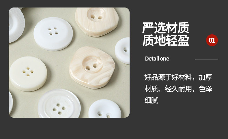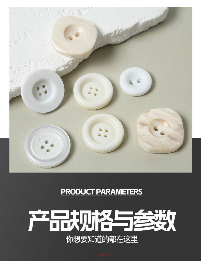 High-End Resin Buttons for Clothing, Shirts and Coats, Two-Eye and Four-Eye Buttons, White Classic Versatile Buttons, DIY Buttons