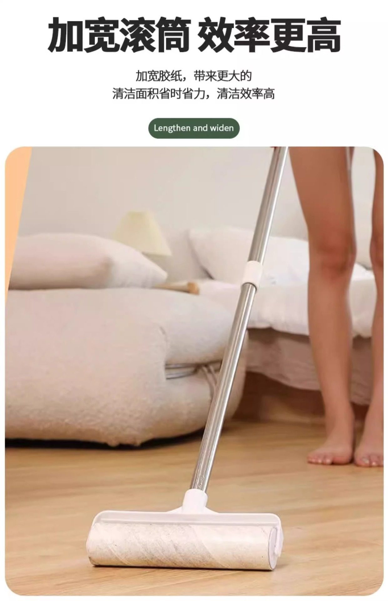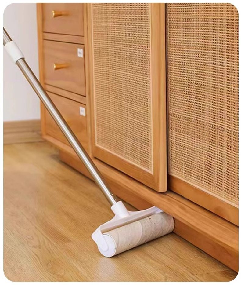 Lint Roller with Long Handle for Removing Hair from Bed and Floor, Hair Cleaning Felt Roller with Tearable Paper