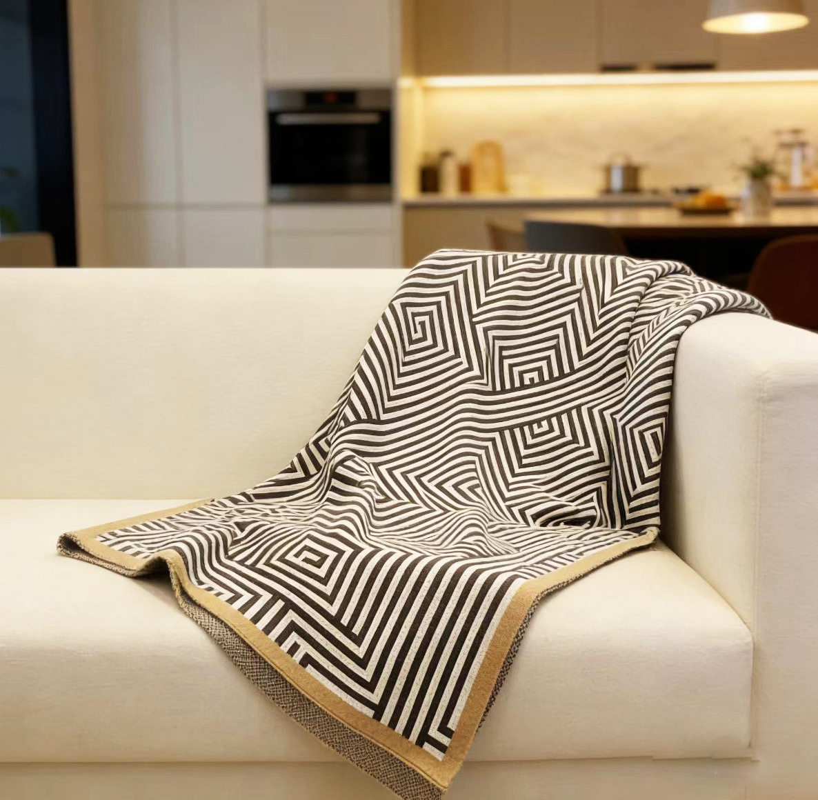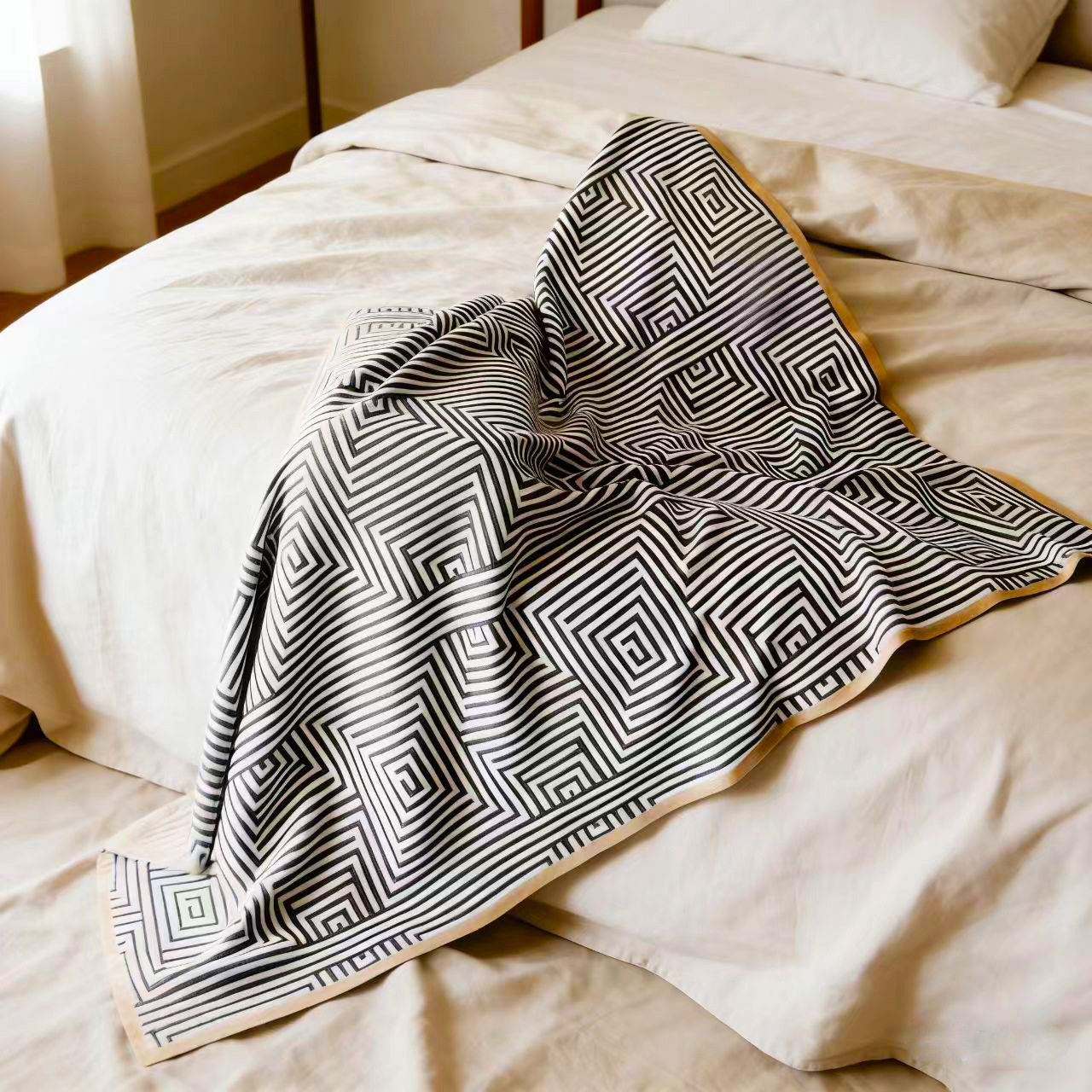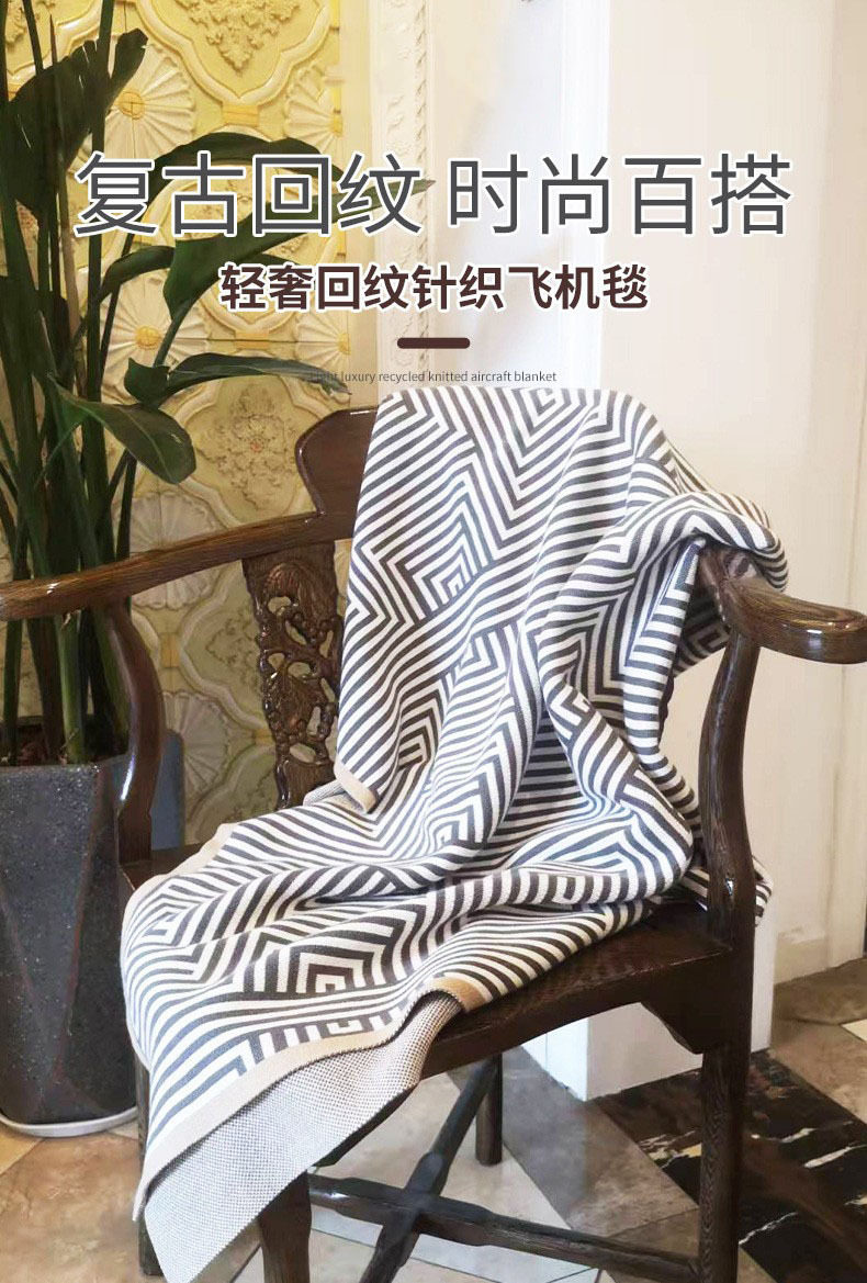 Geometric Loop Line Acrylic Jacquard Blanket Scandinavian Air-Conditioned Office Lunch Break Blanket Airplane Blanket Can Be Printed with Logo