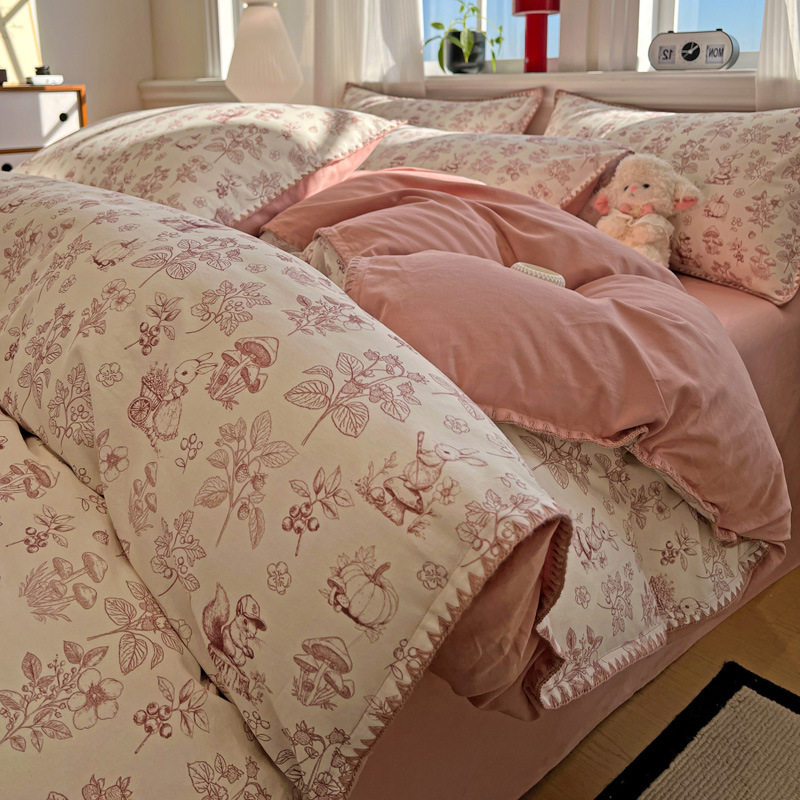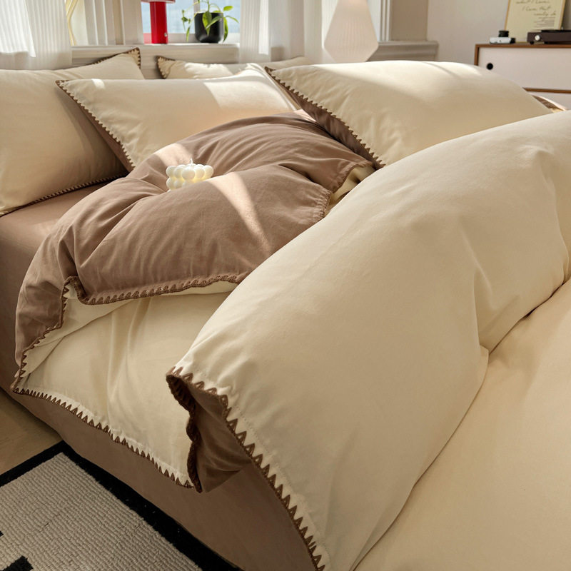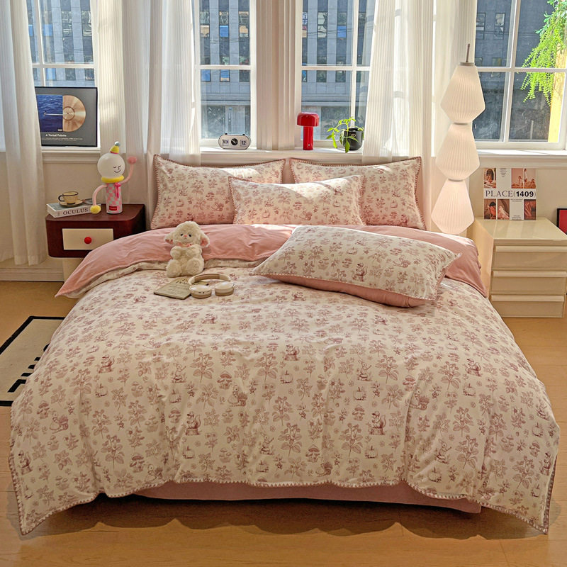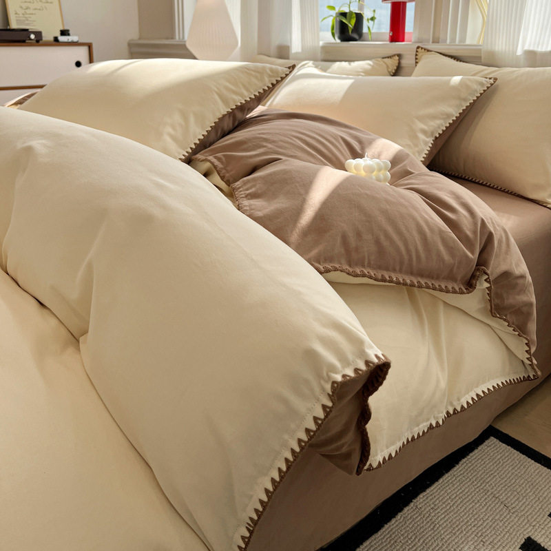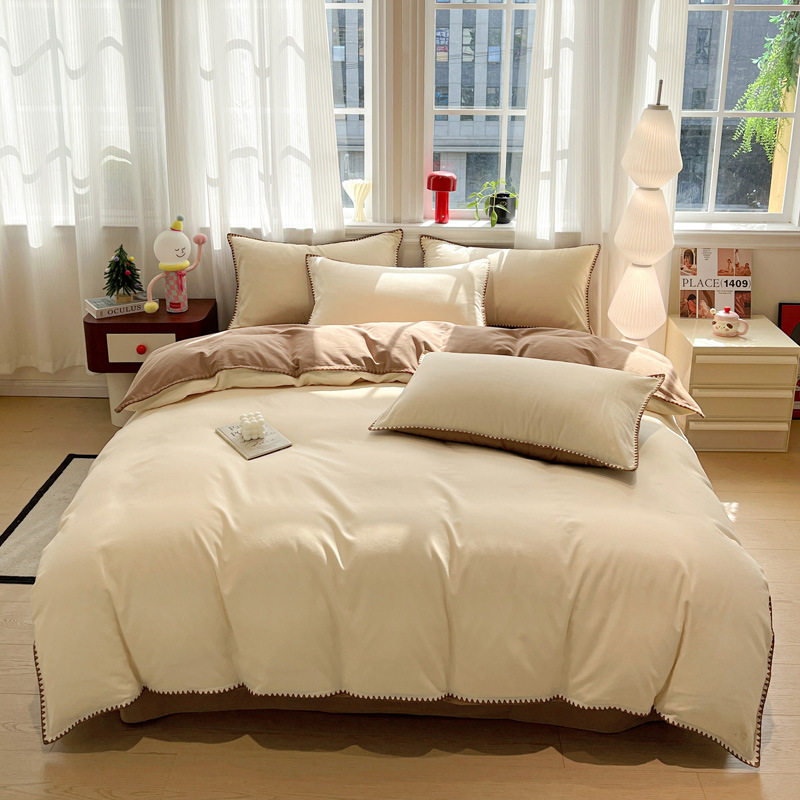 Four Seasons 100% Cotton Brushed Four-Piece Set Pure Cotton Bedding Quilt Cover Bed Sheet Student Dormitory Three-Piece Set Cross-Border Export