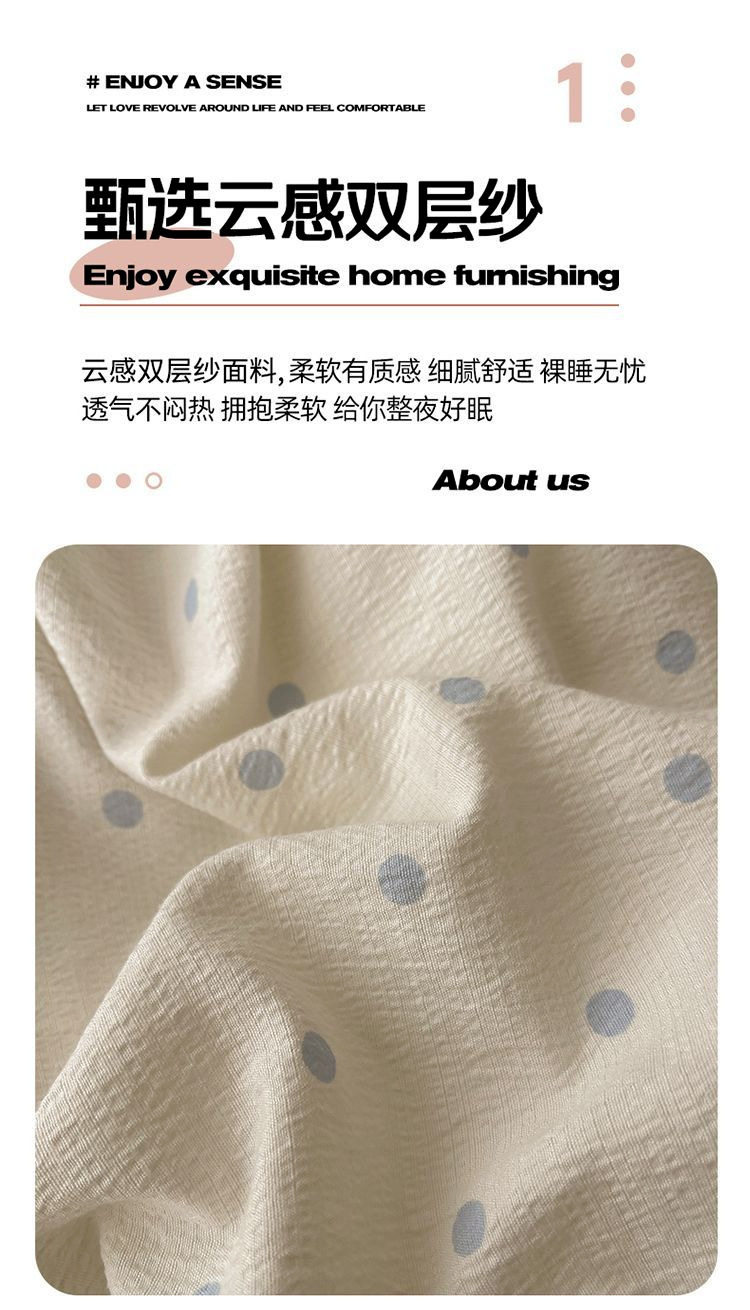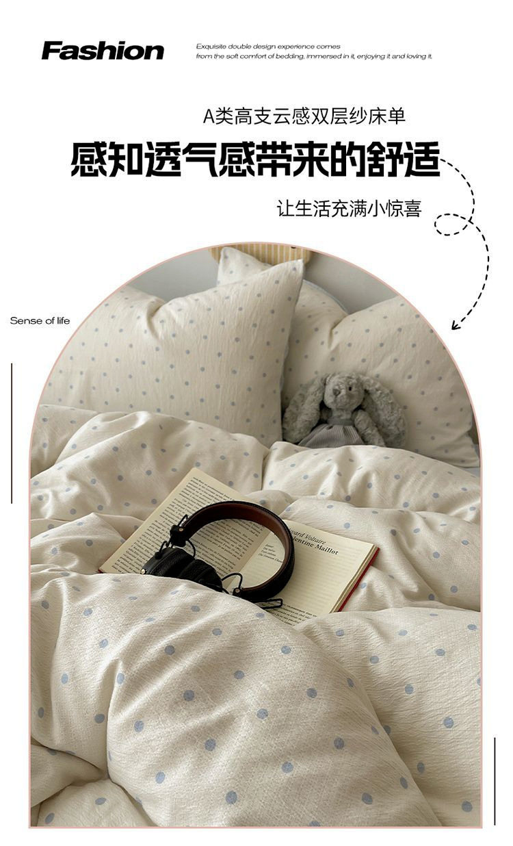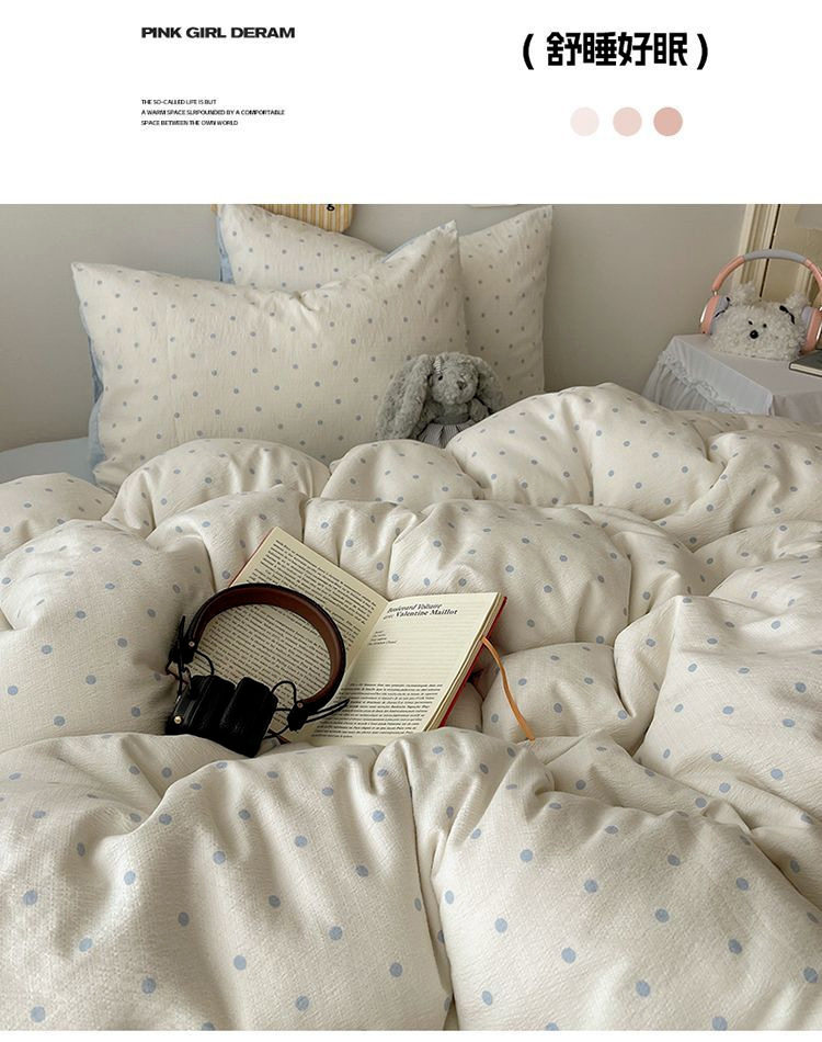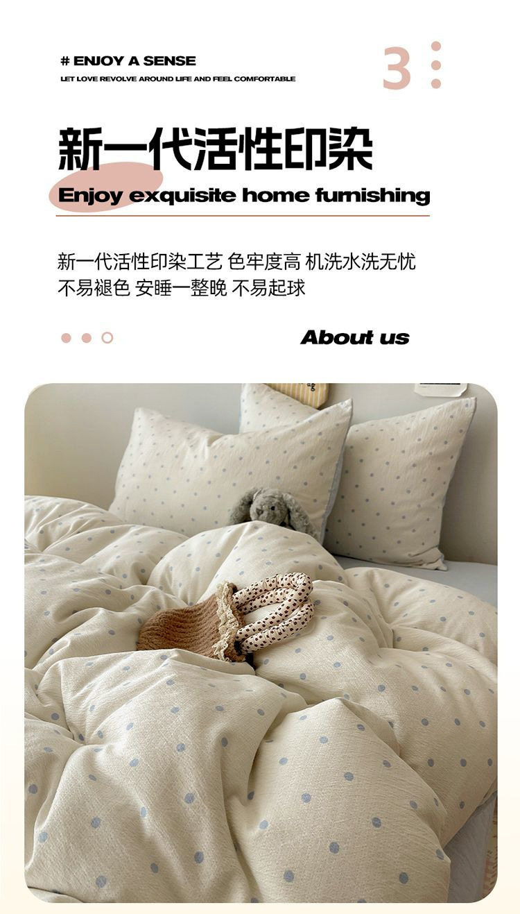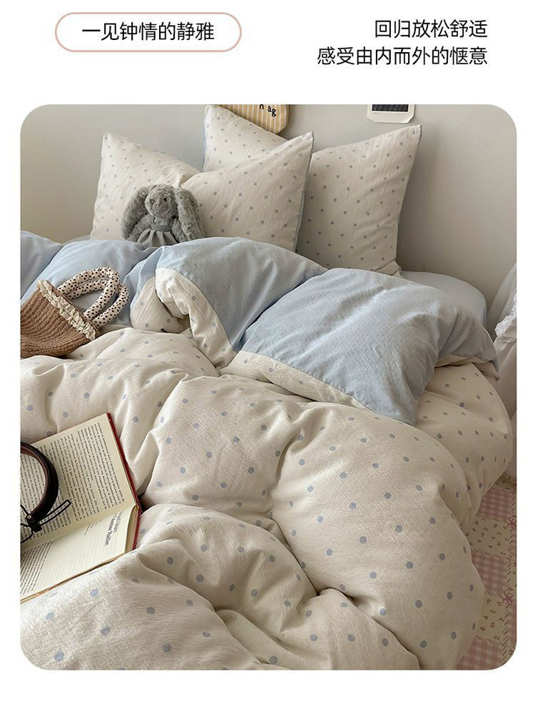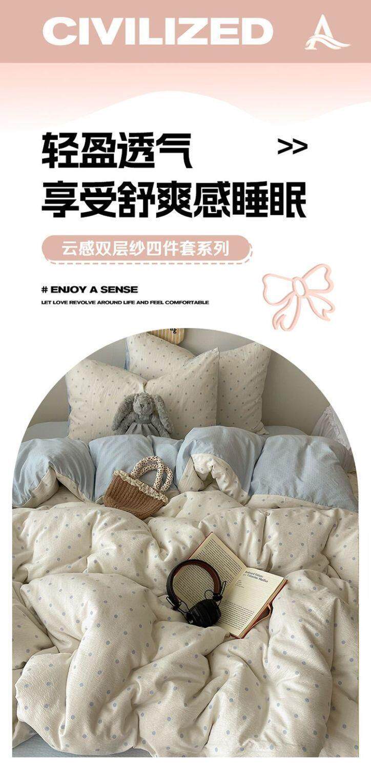 Milk Blue Polka Dot Type a Cloud-Like Double-Layer Yarn Bedding Four-Piece Set Quilt Cover Bed Sheetss Student Dormitory Three-Piece Set