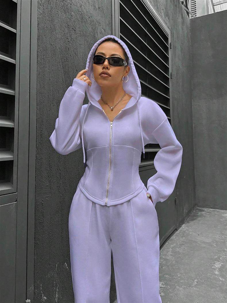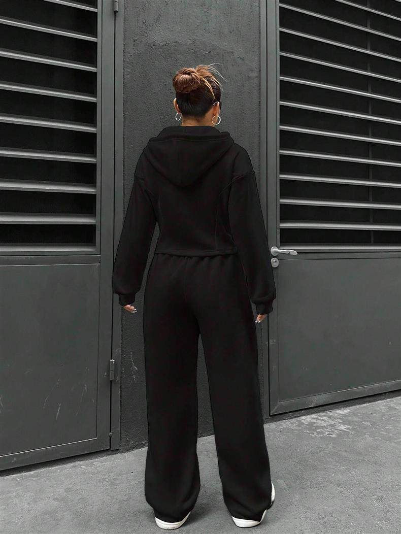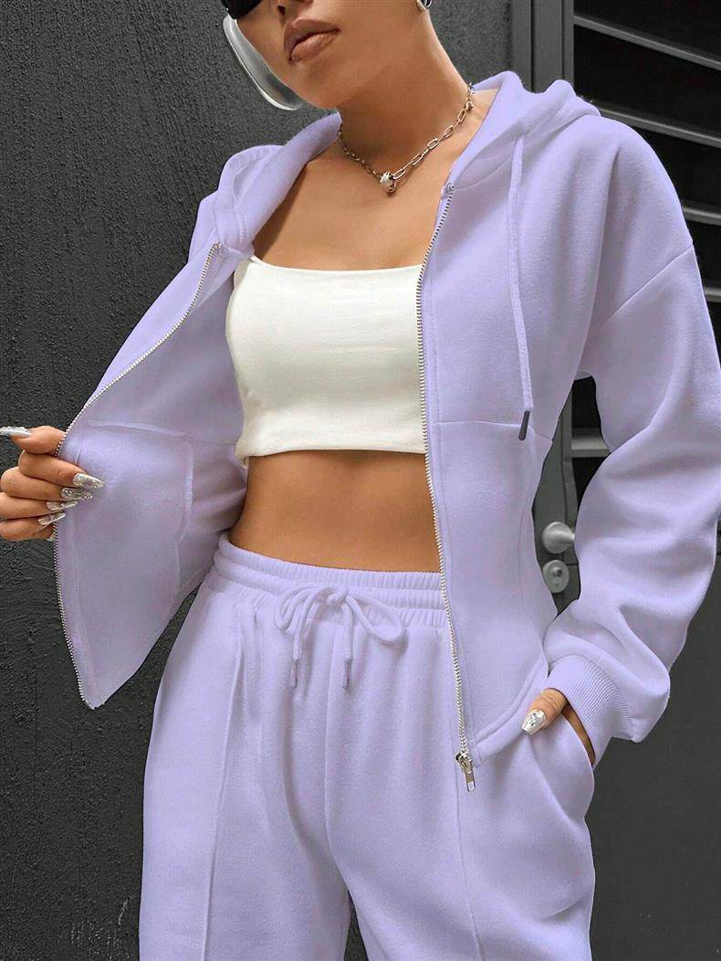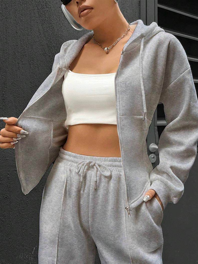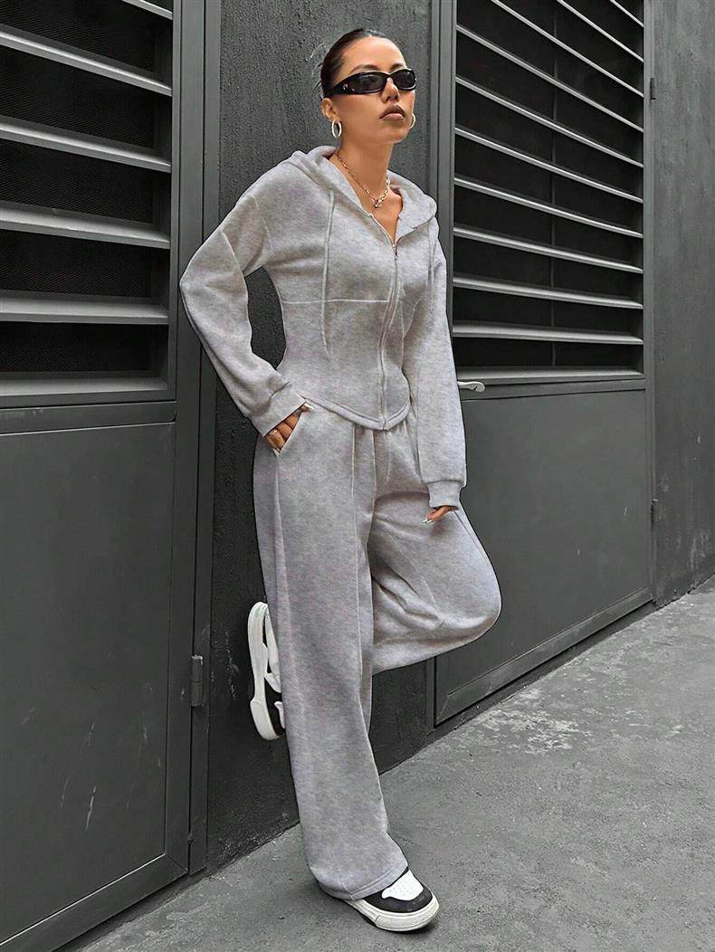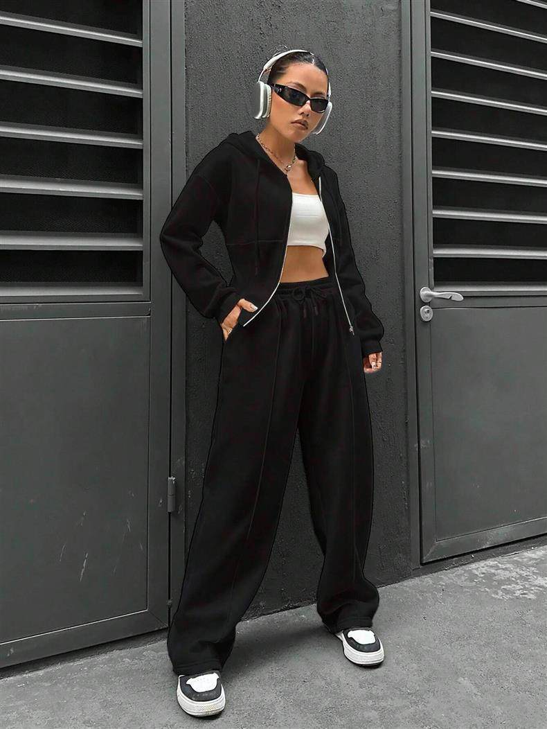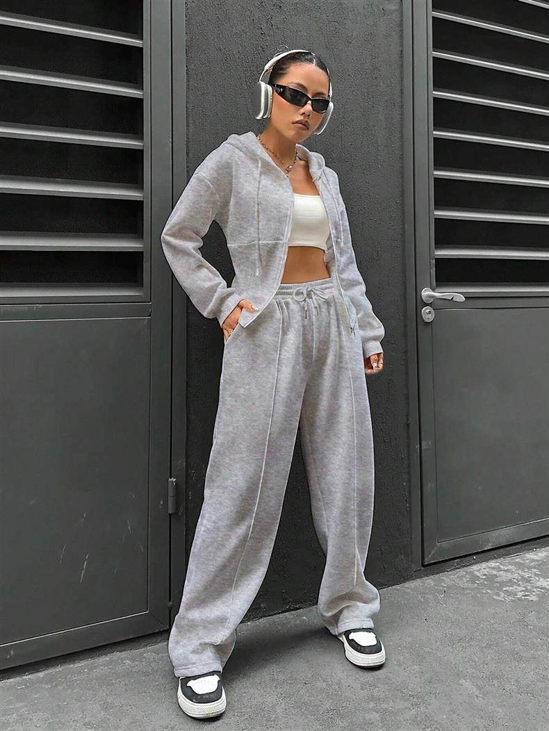 Amazon European and American Cross-Border Independent Station 2025 Autumn and Winter Women's Hooded Cardigan Slim Sweatshirt Wide-Leg Pants Two-Piece Set