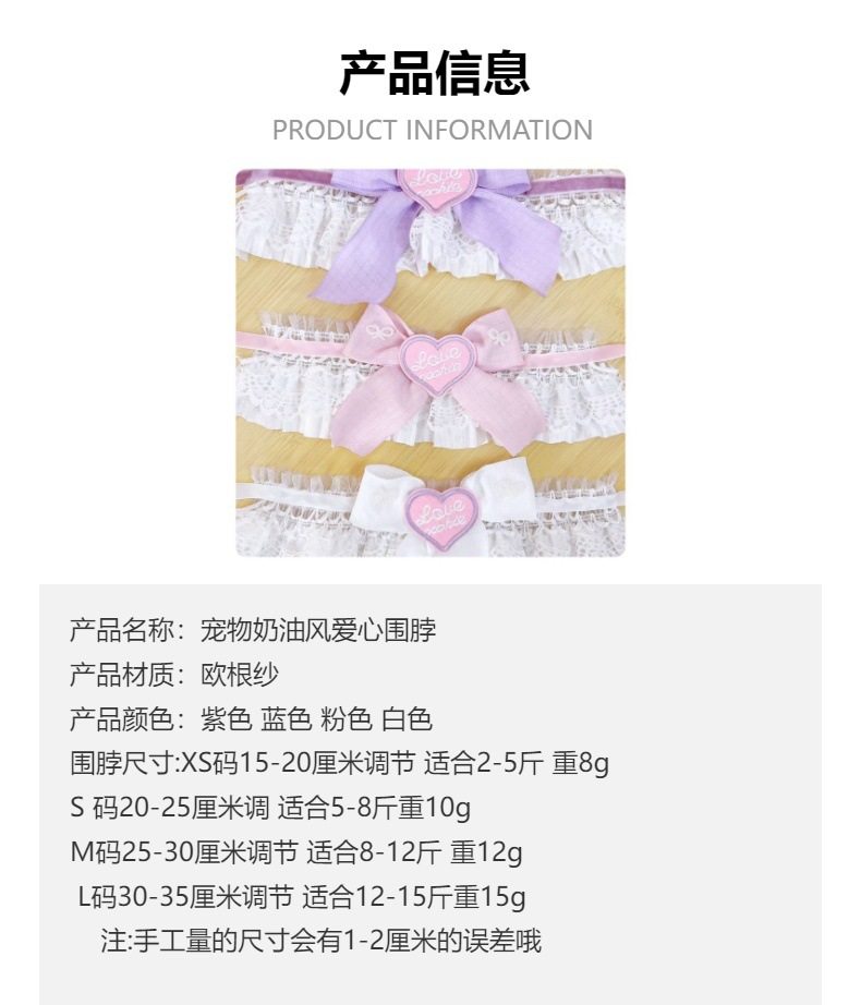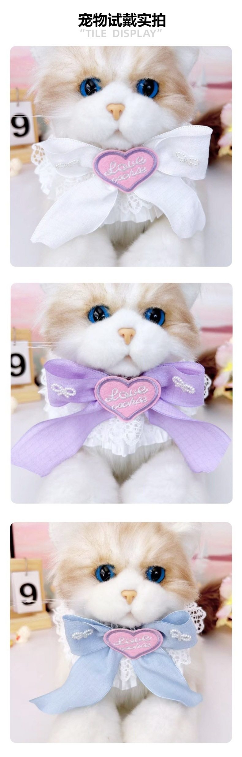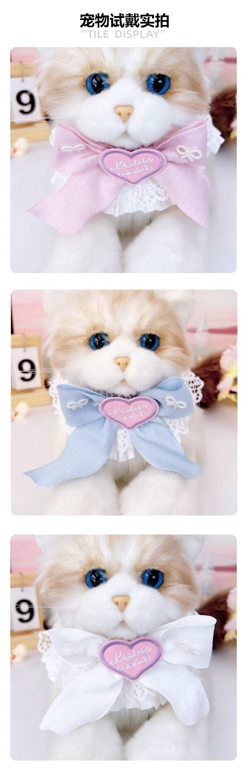 2025 Cross-Border Pet Cream Style Bow Love Collar Cat Lace Neck Collar Dog Collar Wholesale