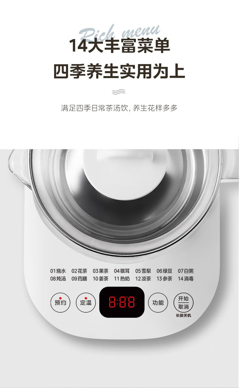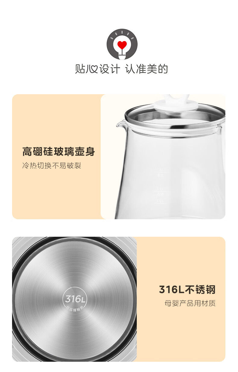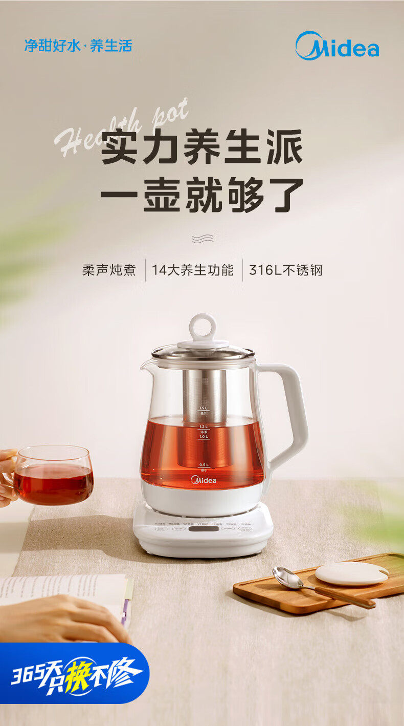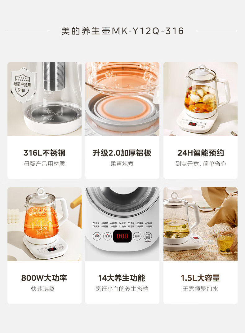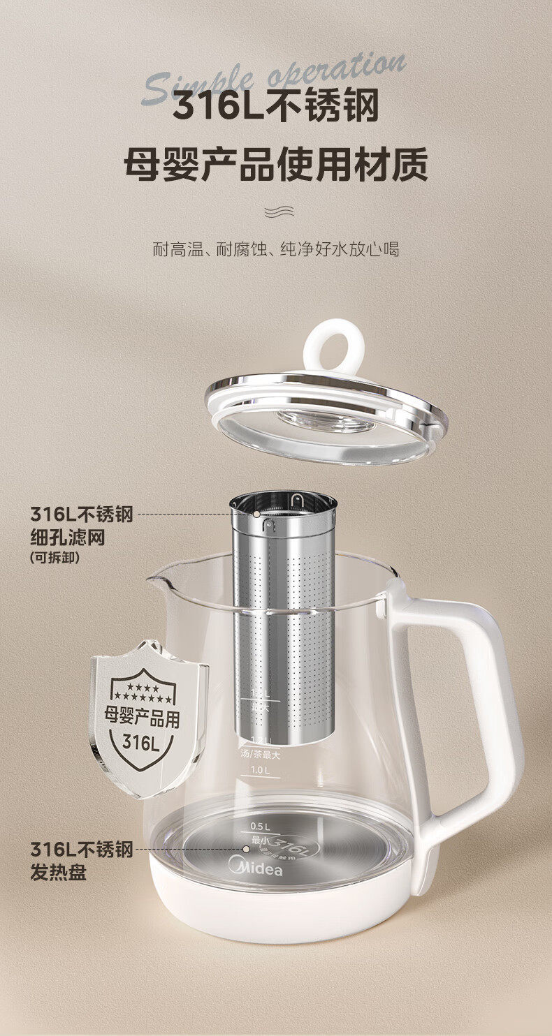 Midea Health Pot 1.5L Fully Automatic Tea Kettle 316L Mother and Baby Material Mk-Y12Q-316