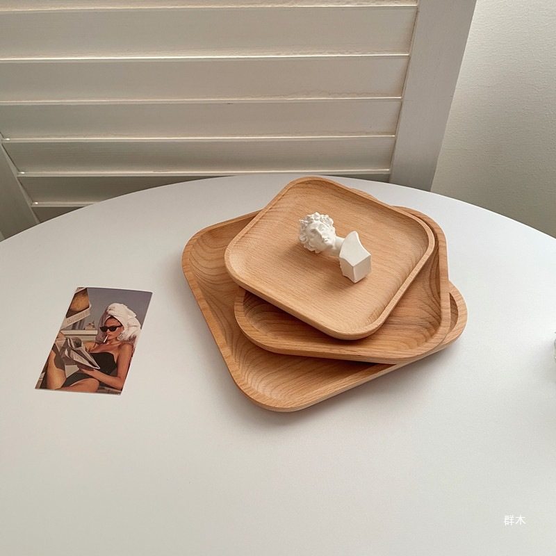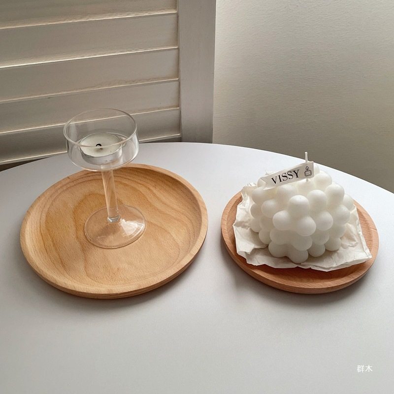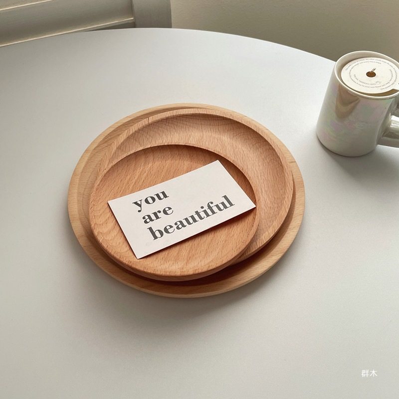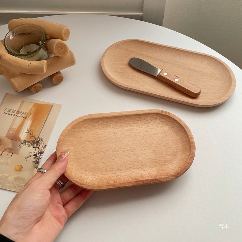 Ins-Style Wooden Tray Round Wooden Tray Japanese Oval Beech Small Wooden Plate Milk Snack Plate Display Plate