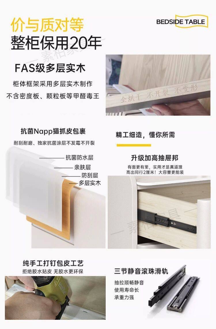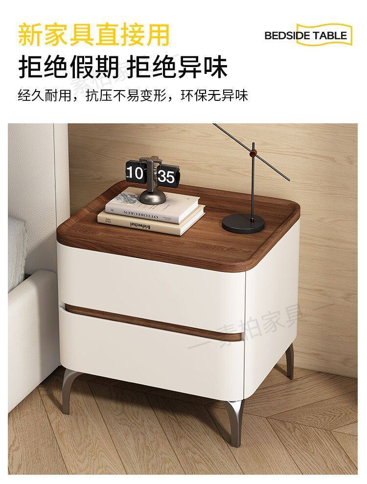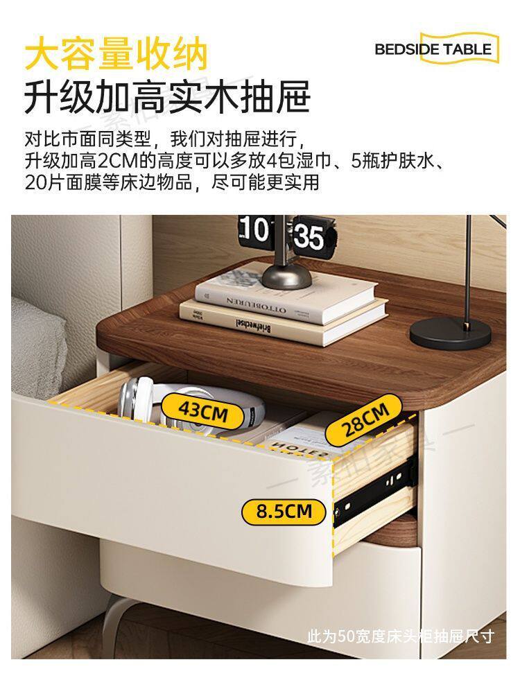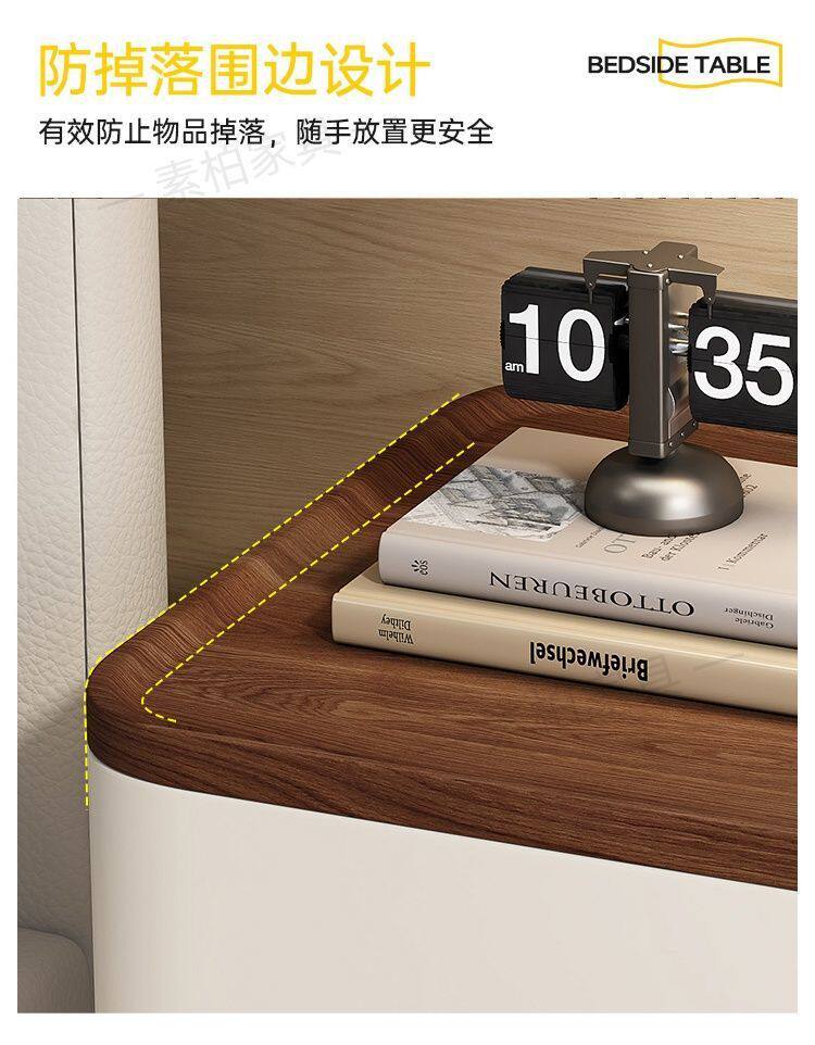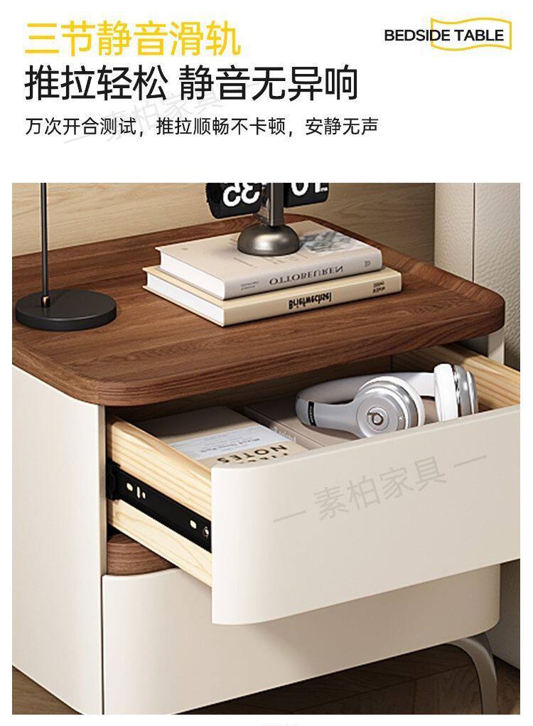 Solid Wood Bedside Table Modern Simple 2025 New High-End Accessible Luxury Bedroom Home Storage Leather Bedside Table