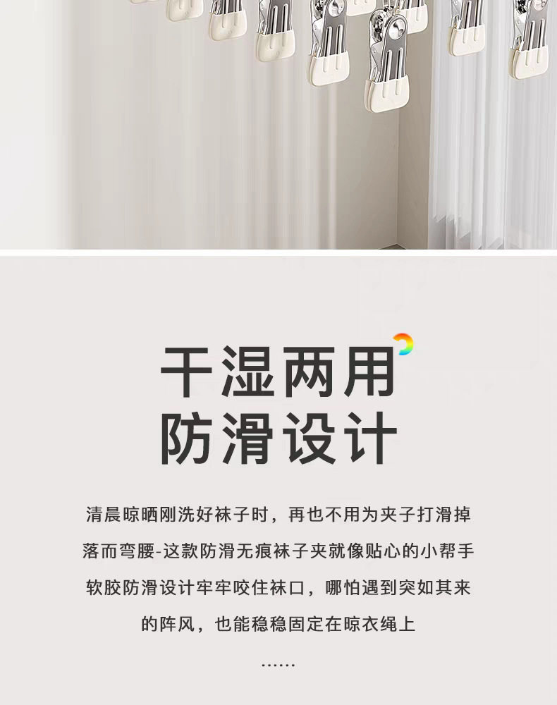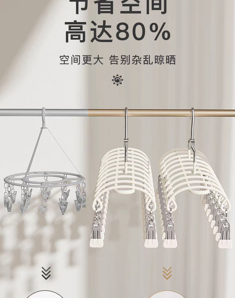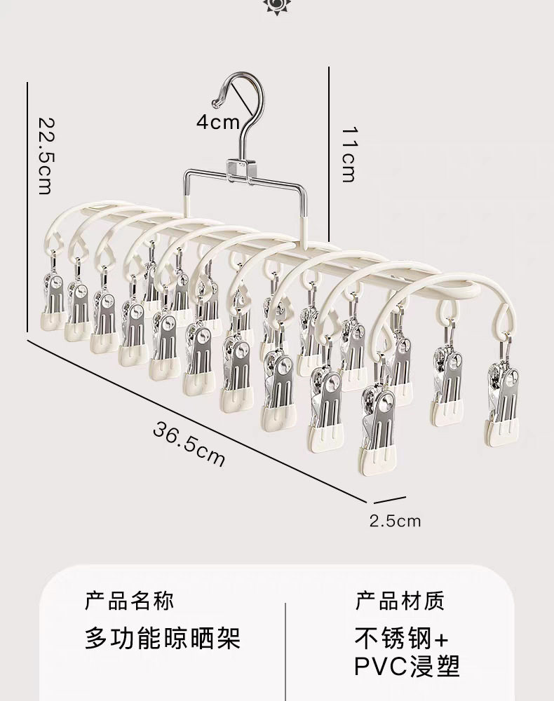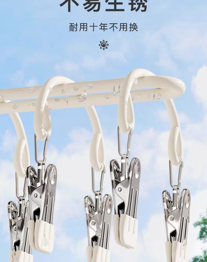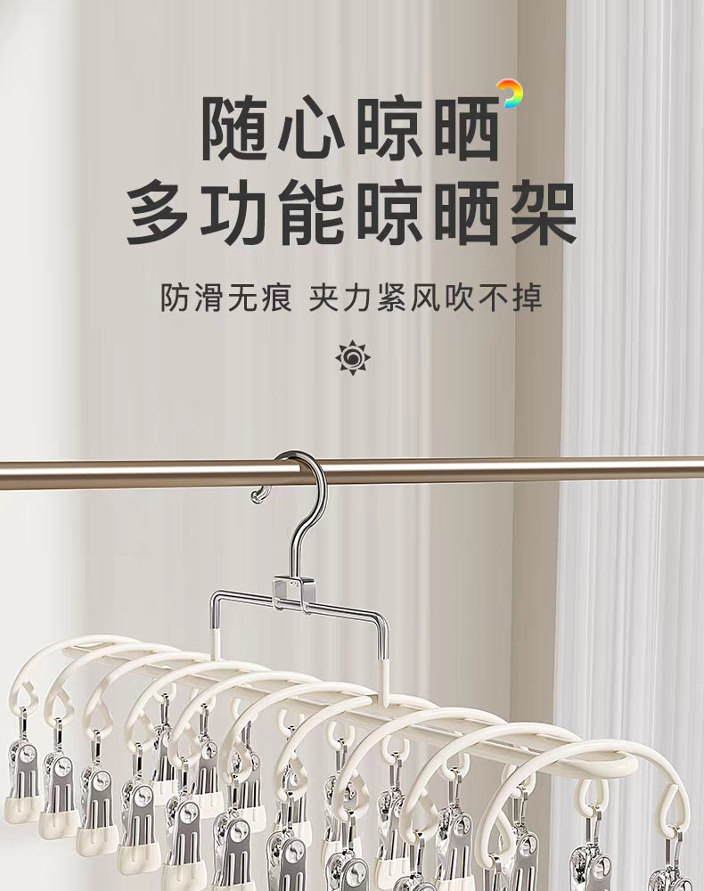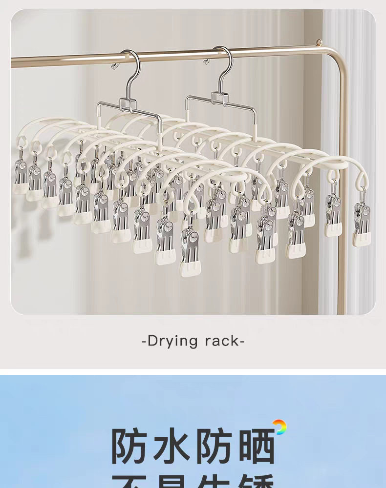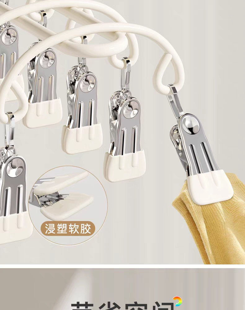 Multi-Clip Sock Drying Rack Stainless Steel Household Balcony Drying Underwear and Panties Gadget Windproof Hanger Baby Sock Clip