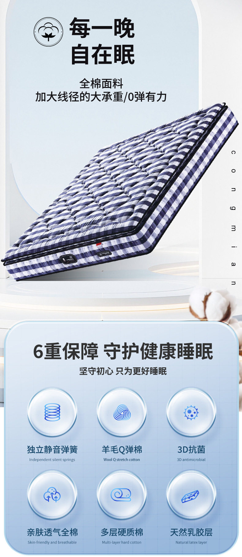 Five-Star Hotel Simmons Mattress Super Soft Home 1.8*2m Soft Cushion Latex Independent Spring Silent Mattress