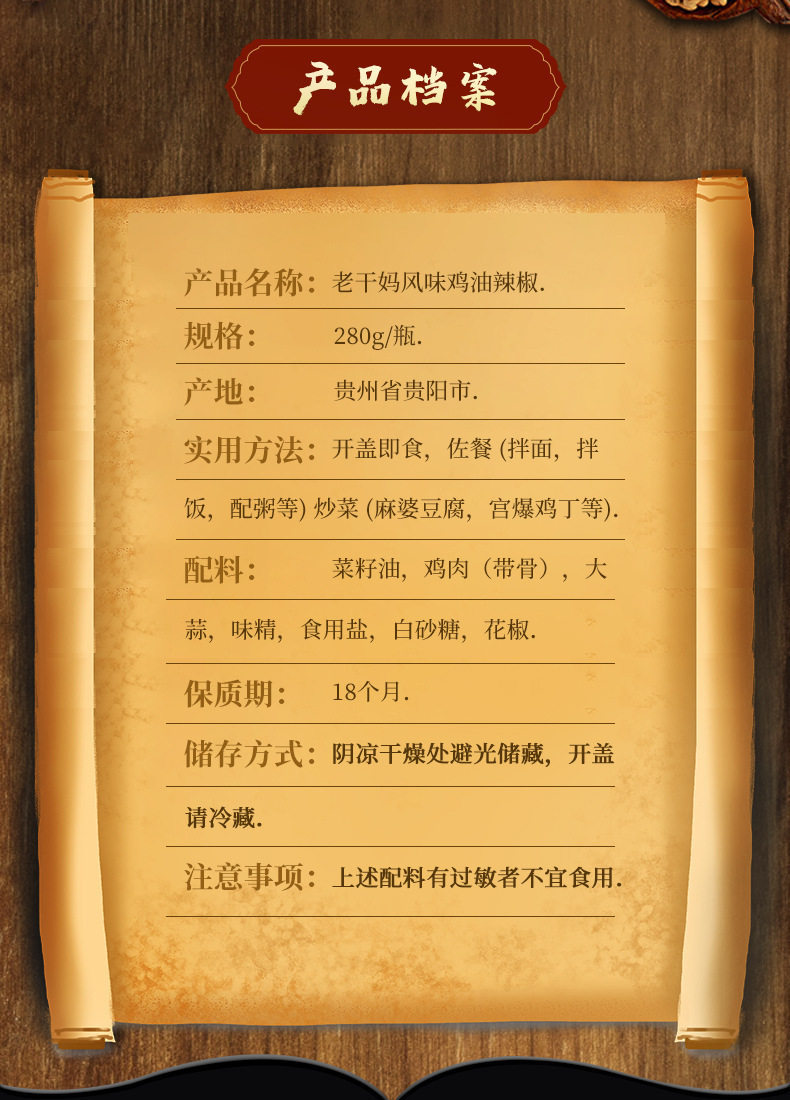 | Packaging specifications | Lao ganma [dry stir-fried shredded pork] oil chili 260g (single bottle),Laoganma [flavored chicken] oil chili 280g (single bottle),Lao ganma [spicy sanding] oil chili 280g (single bottle),Lao ganma [oil chili] 275g (single bottle),Laoganma [shredded pork and black bean sauce] oil chili 280g (single bottle),Lao ganma [flavored black bean paste] oil chili 280g (single bottle),Laoganma [beef minced black bean paste] oil chili 210g (single bottle),Laoganma [red oil fermented bean curd] 260g (single bottle),Laoganma [shredded pork and black bean sauce] oil chili 210g (single bottle),Laoganma [spicy crispy] oil chili 210g (single bottle),Laoganma [spicy sanding] 210g (single bottle),Laoganma [oil chili] 210g (single bottle),Laoganma [water tempeh] 210g (single bottle),Laoganma [spicy vegetables] 60g*5 bags,Lee kum kee delicious bag [soybean paste] 240g (single bag),China [garlic chili sauce] 230g (single bottle),Peng sheng【450g】olives (single can),Peng sheng【230g】olives (single bottle),Peng sheng【180g】olives (single bottle),Boss guang [spicy] dried radish 400g (single bottle),Boss guang [spicy] dried radish 400g (single bottle) |