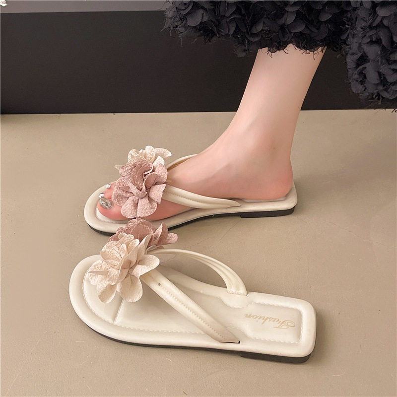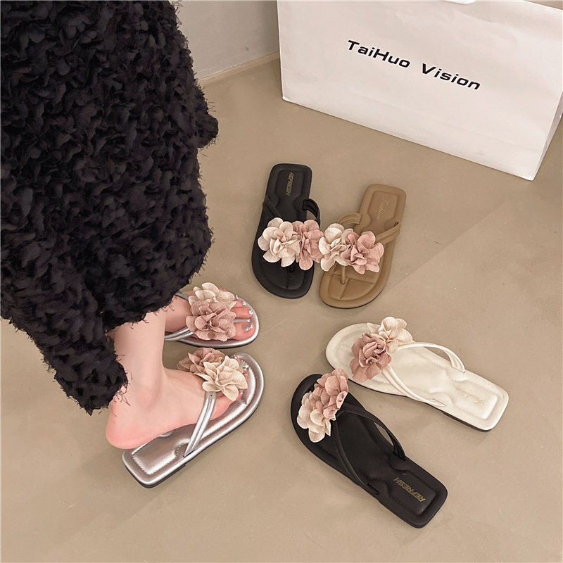 New Fairy Flower Slippers Platform Soft Sole 2025 Summer New Flat Casual Versatile Beach Slippers Wholesale
