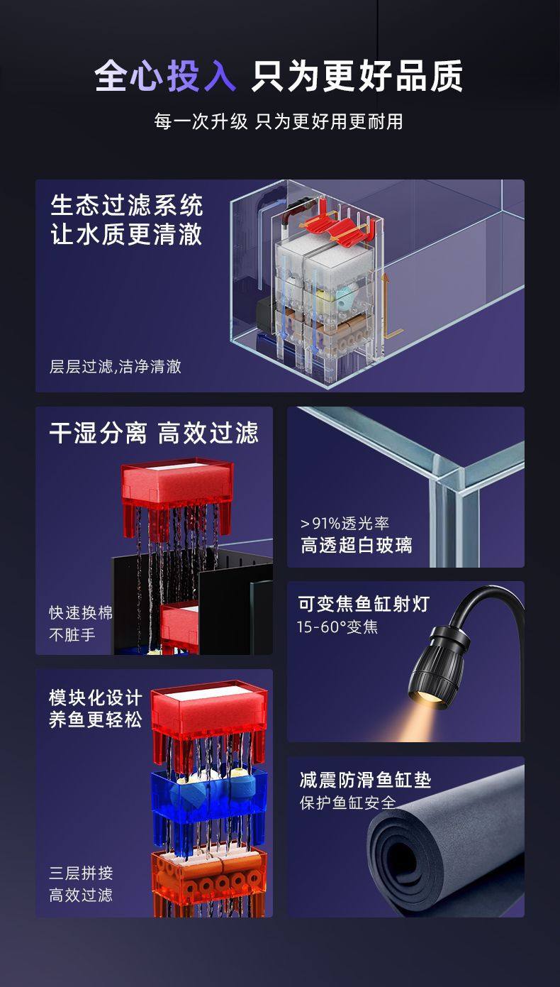 | Color | Tank + water pump filter plate + filter material filter cotton + dry and wet separation + south american lamp,Tank + top filter system + south american lamp + stream sand and gravel landscaping,Tank + top filtration system + south american lamp + rainforest foliage landscaping,Tank + top filter system + south american lamp + cartoon ornaments for landscaping,Tank + top filter system + south american lamp + gold sand rock landscaping |