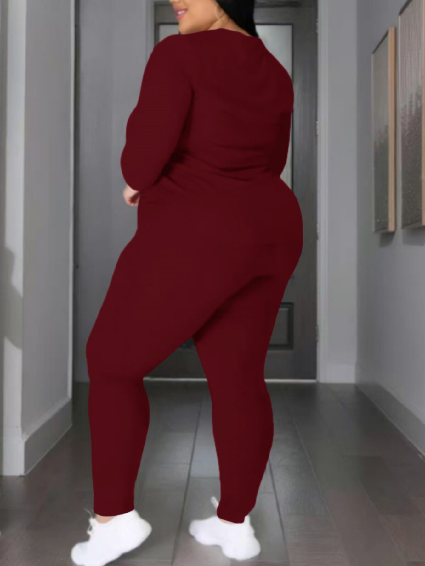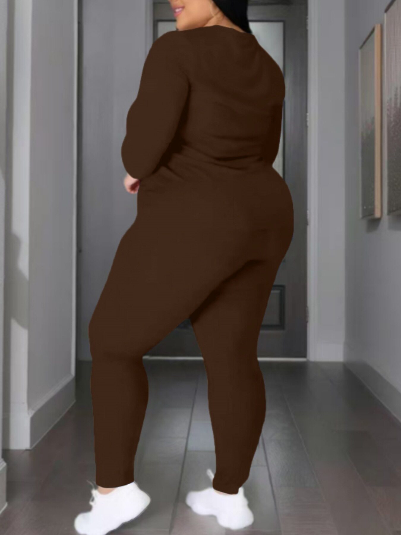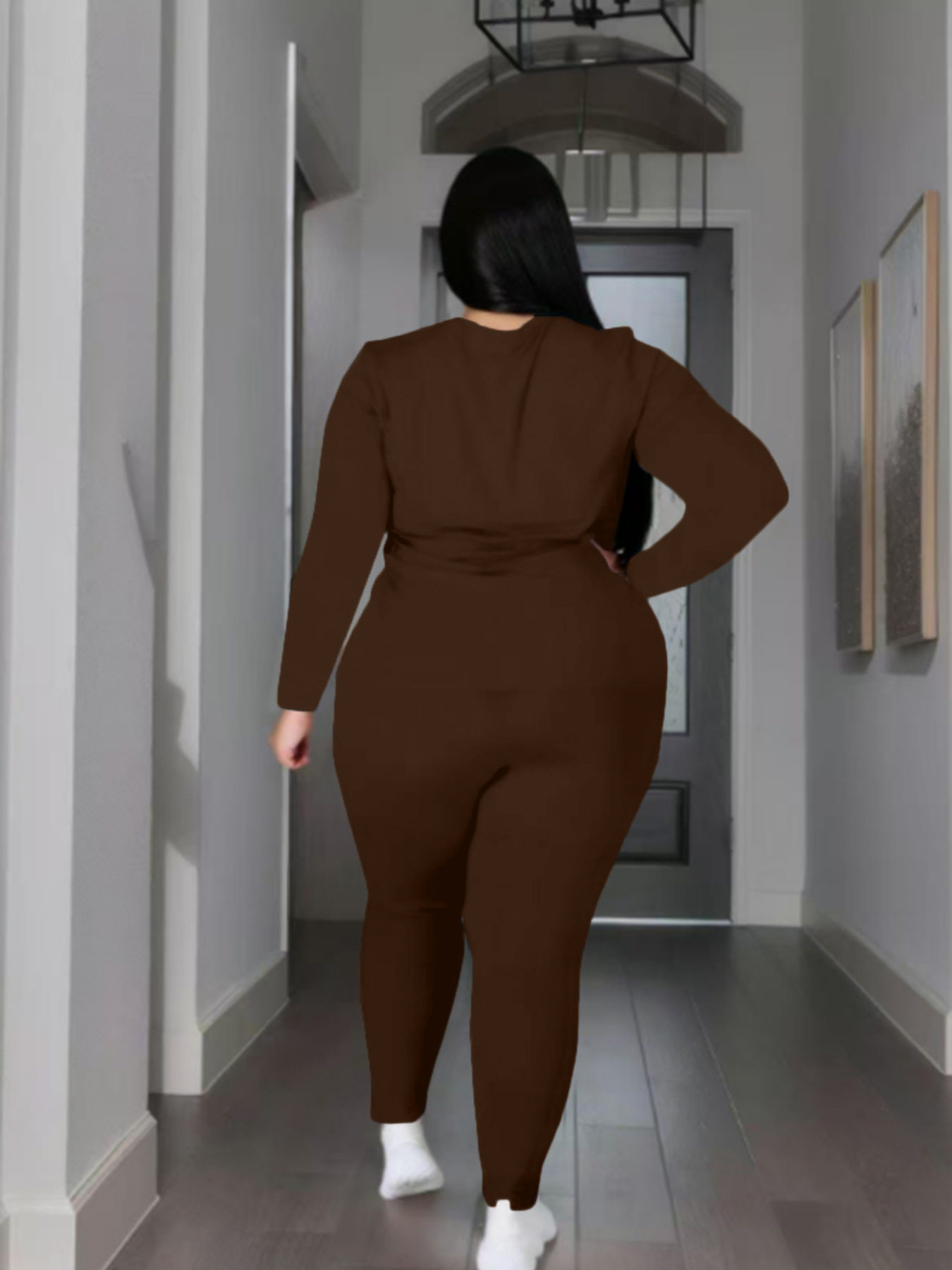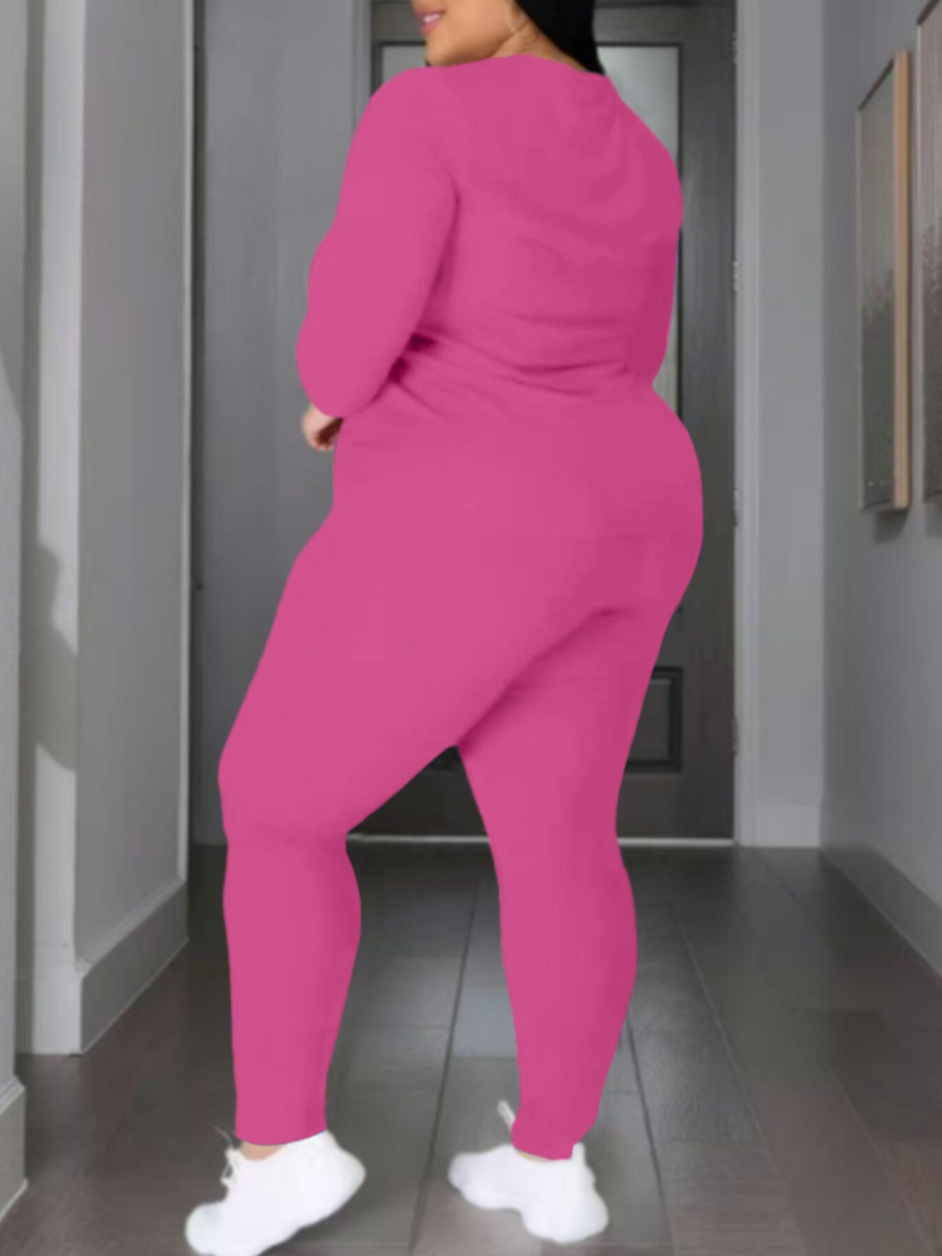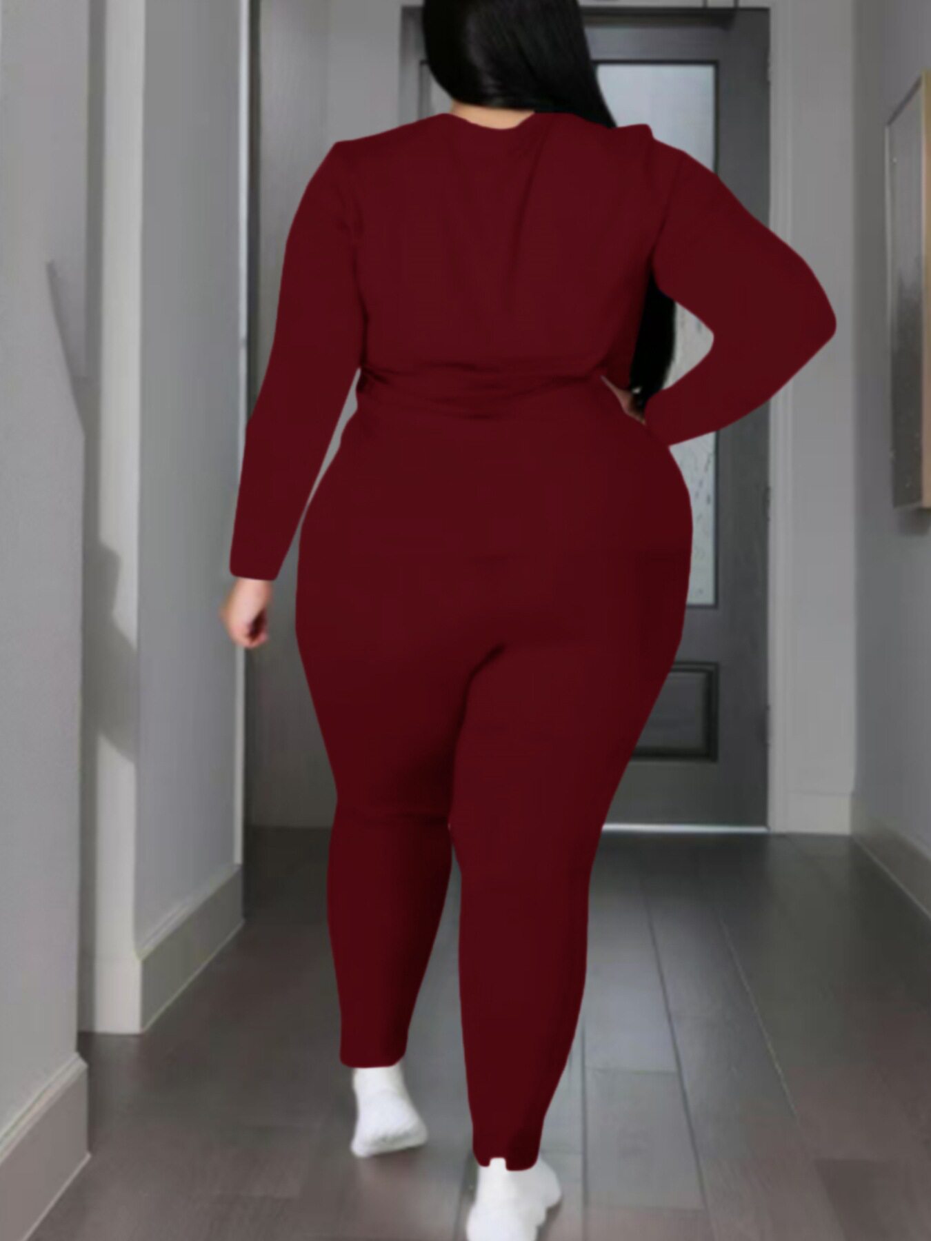 European and American New Large Size Women's Pure Color Two-Piece Suit, Long-Sleeved Round Neck T-Shirt Top and Tights Two-Piece Set