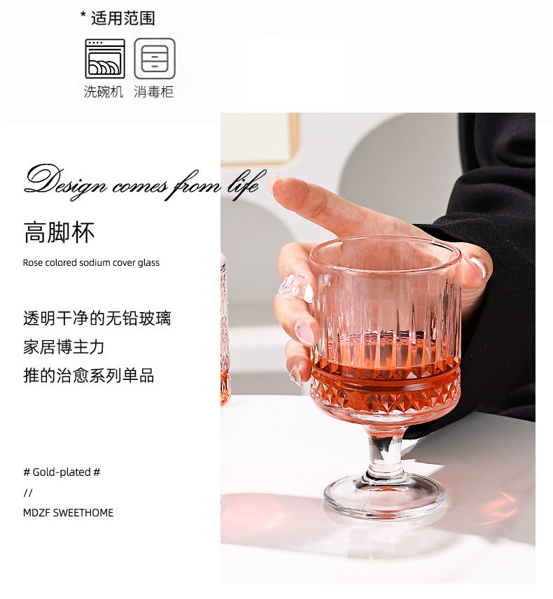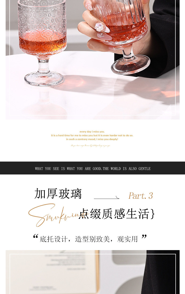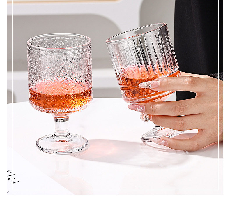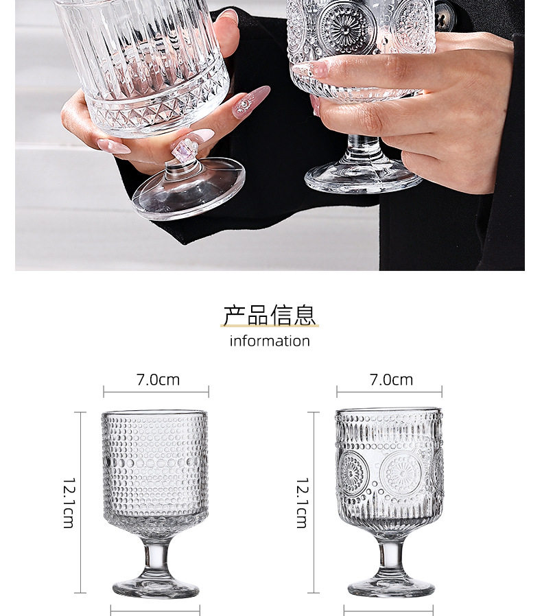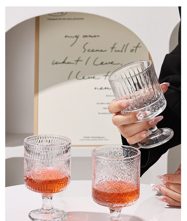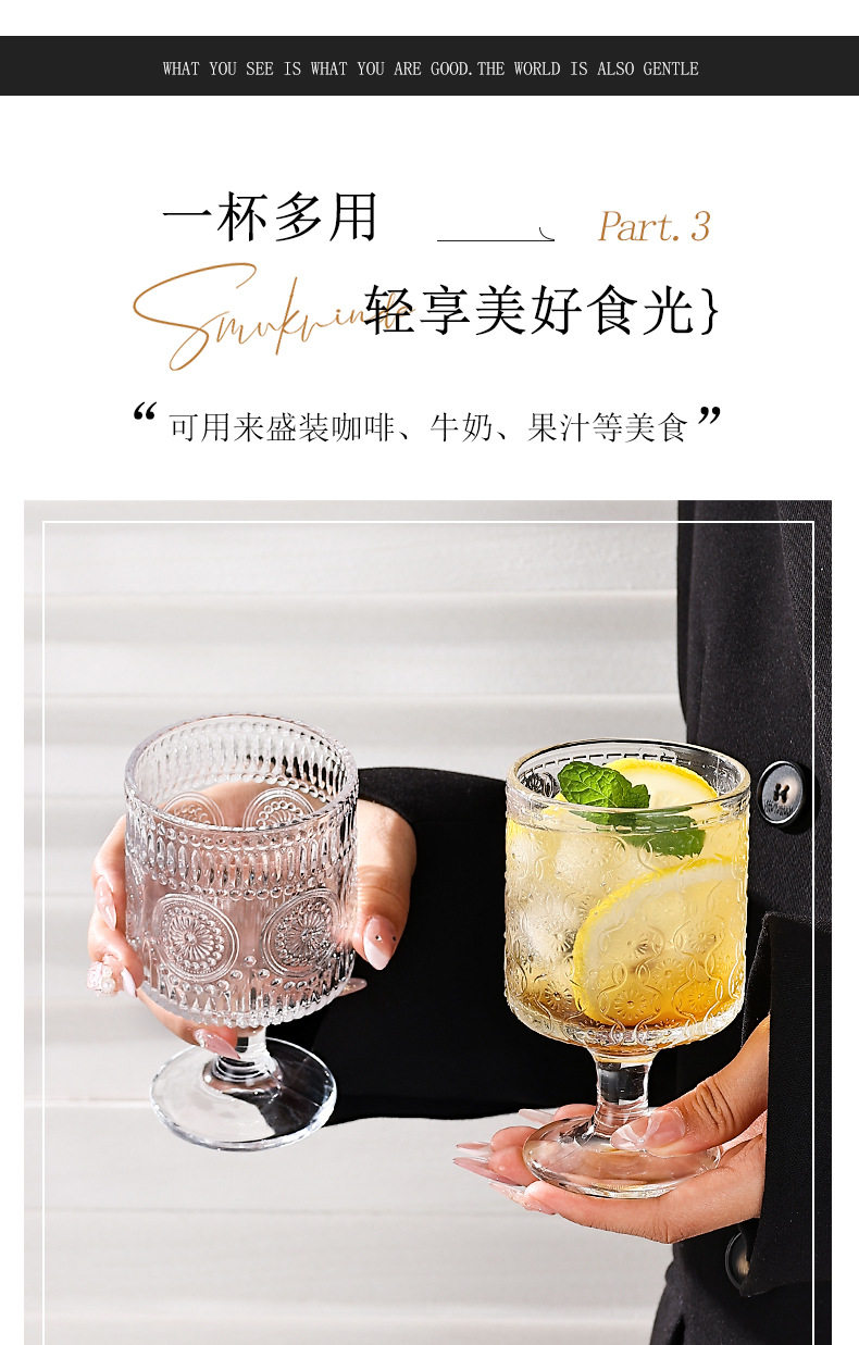 Goblet with Vintage Embossed Sunflower Design, Suitable for Juice, Desserts, and Wine, with an Instagram-Style Aesthetic, High-End Feel, and Unique Glassware