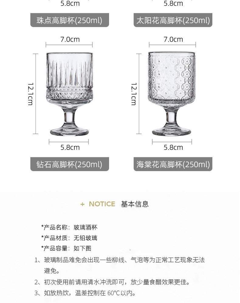 | Color | Sunflower goblet,Diamond pattern goblet,Beaded goblet,Begonia flower goblet |