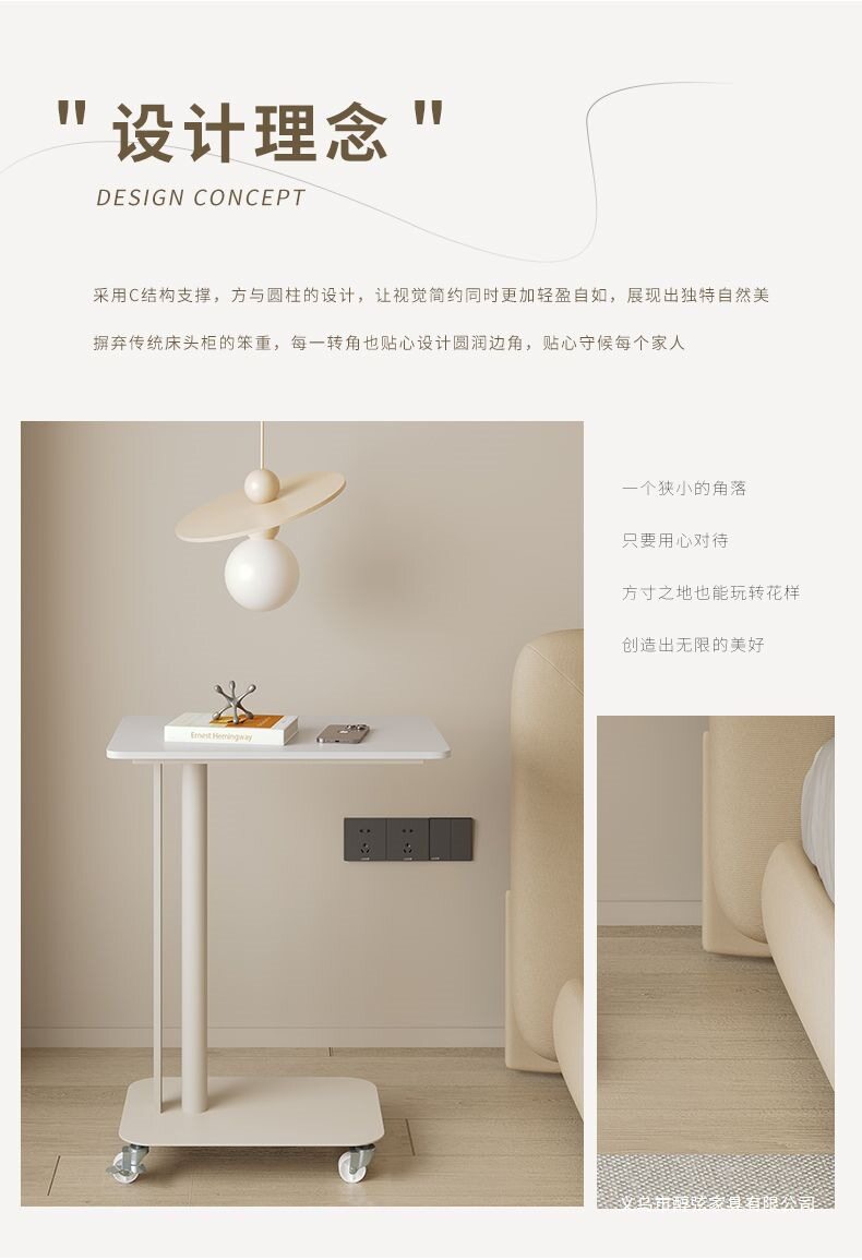 Cream Style Bedside Table Small Bedroom Home Simple Modern Light Luxury Alternative Iron Mobile Storage Rack Side Table