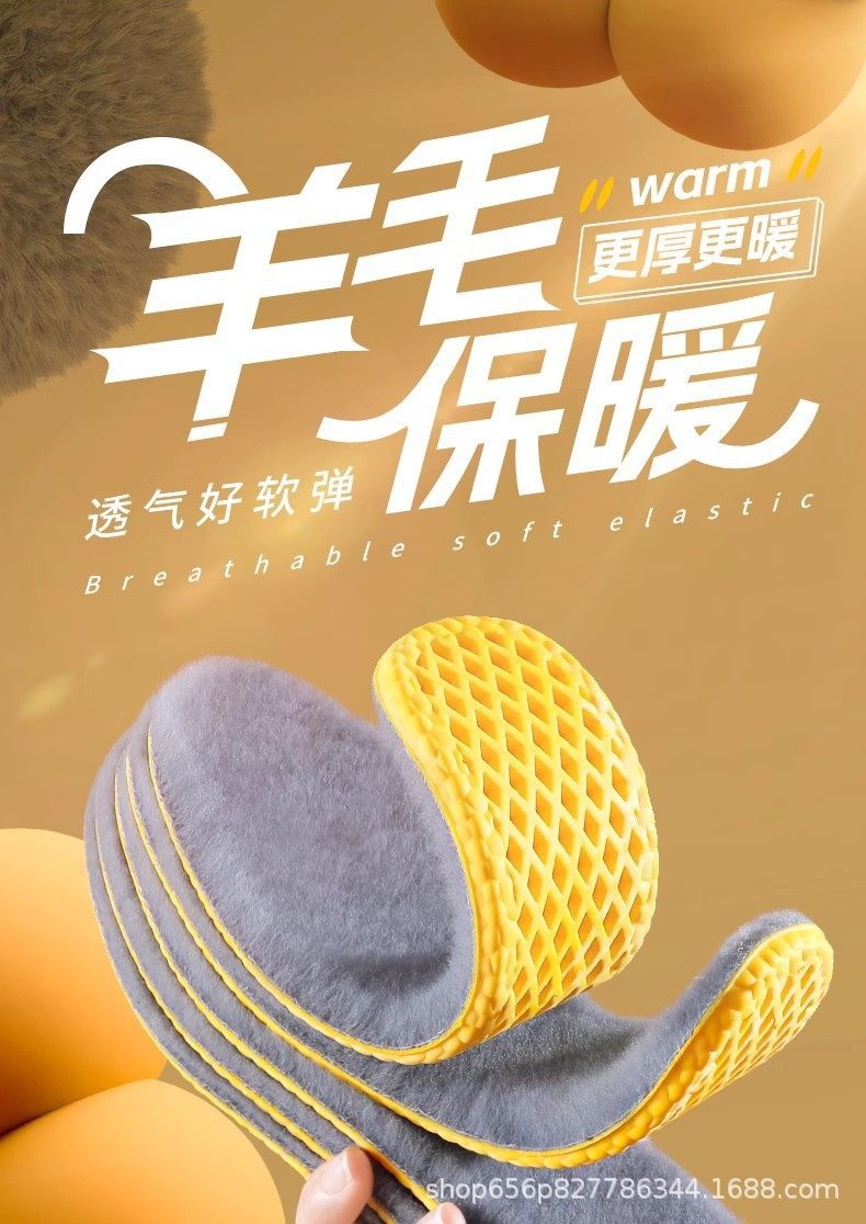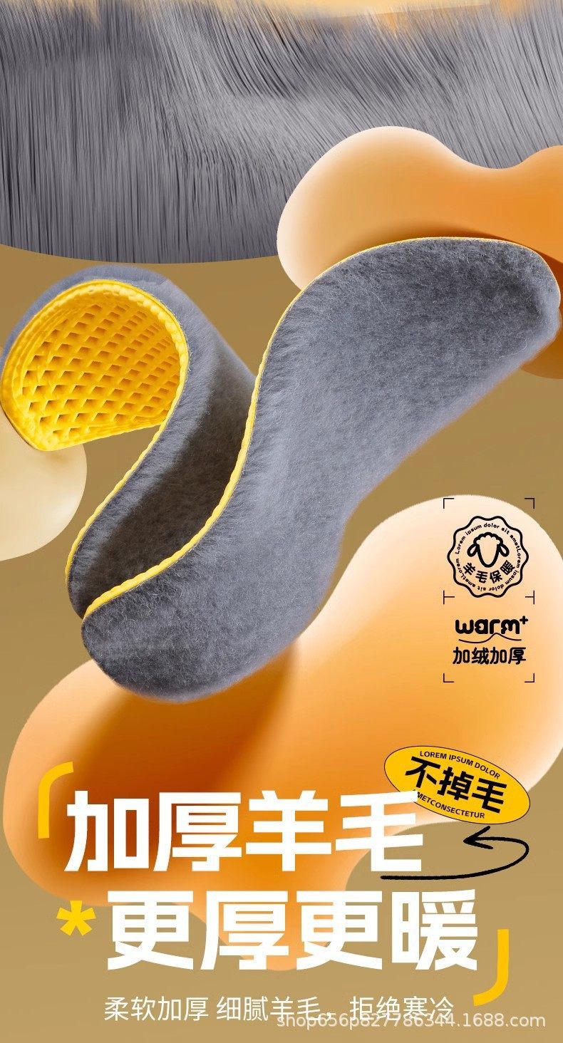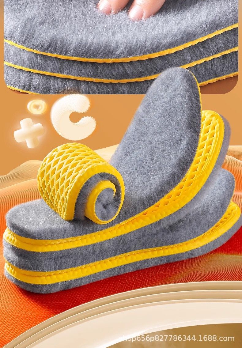 Warm Insoles with Fleece Lining, Thick Imitation Cashmere Insoles, Sweat-Absorbent, Odor-Resistant, Soft, Elastic, Shock-Absorbing, Plush Insoles for Long Standing Without Fatigue