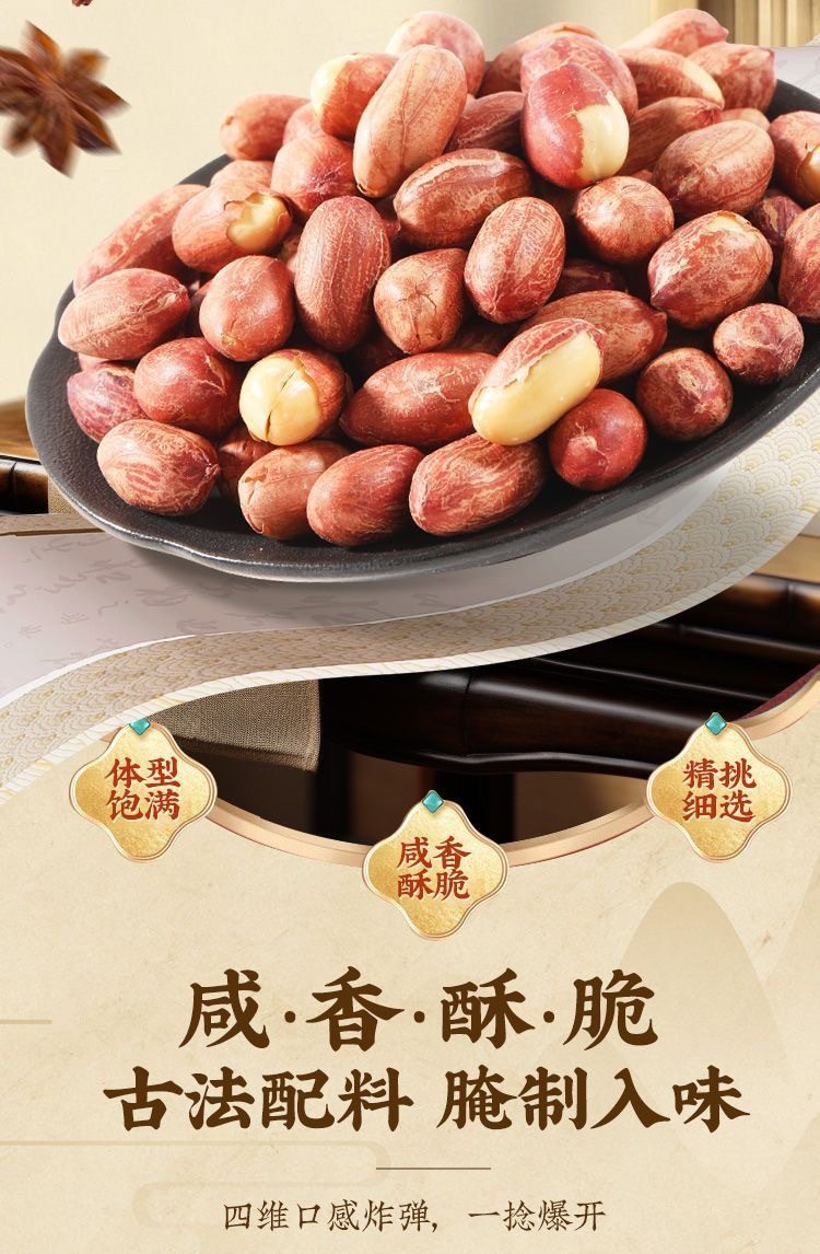 Astragalus Codonopsis Five-Spice Roasted Peanuts with a Crispy Texture, Individually Packaged, Simple and Convenient as a Snack to Accompany Drinks