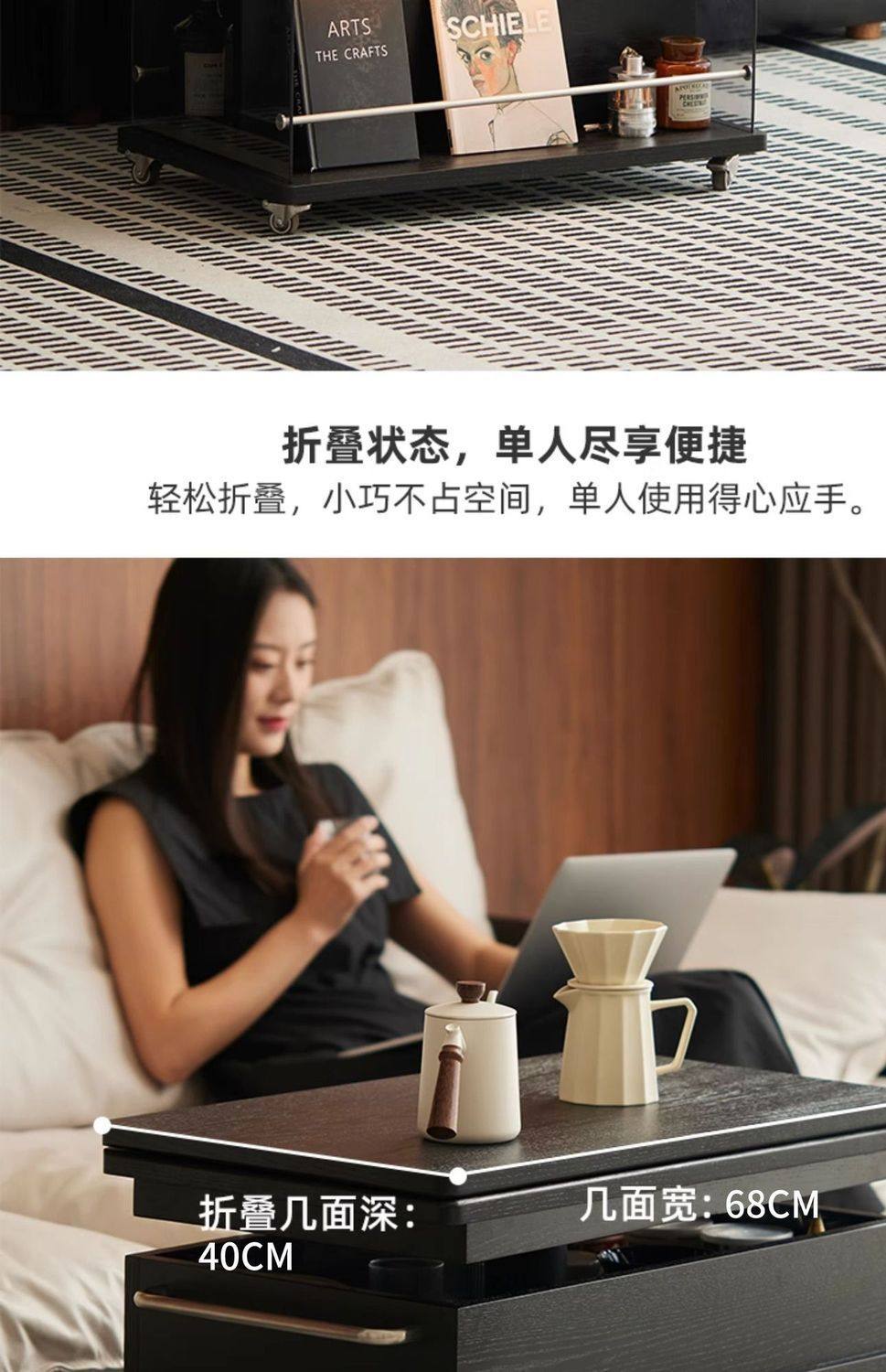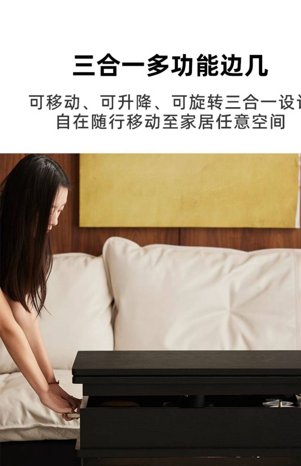 Light Luxury Solid Wood Mobile Lift Foldable Coffee Table with Side Cabinet Multi-Functional Sofa Simple Modern Small Apartment