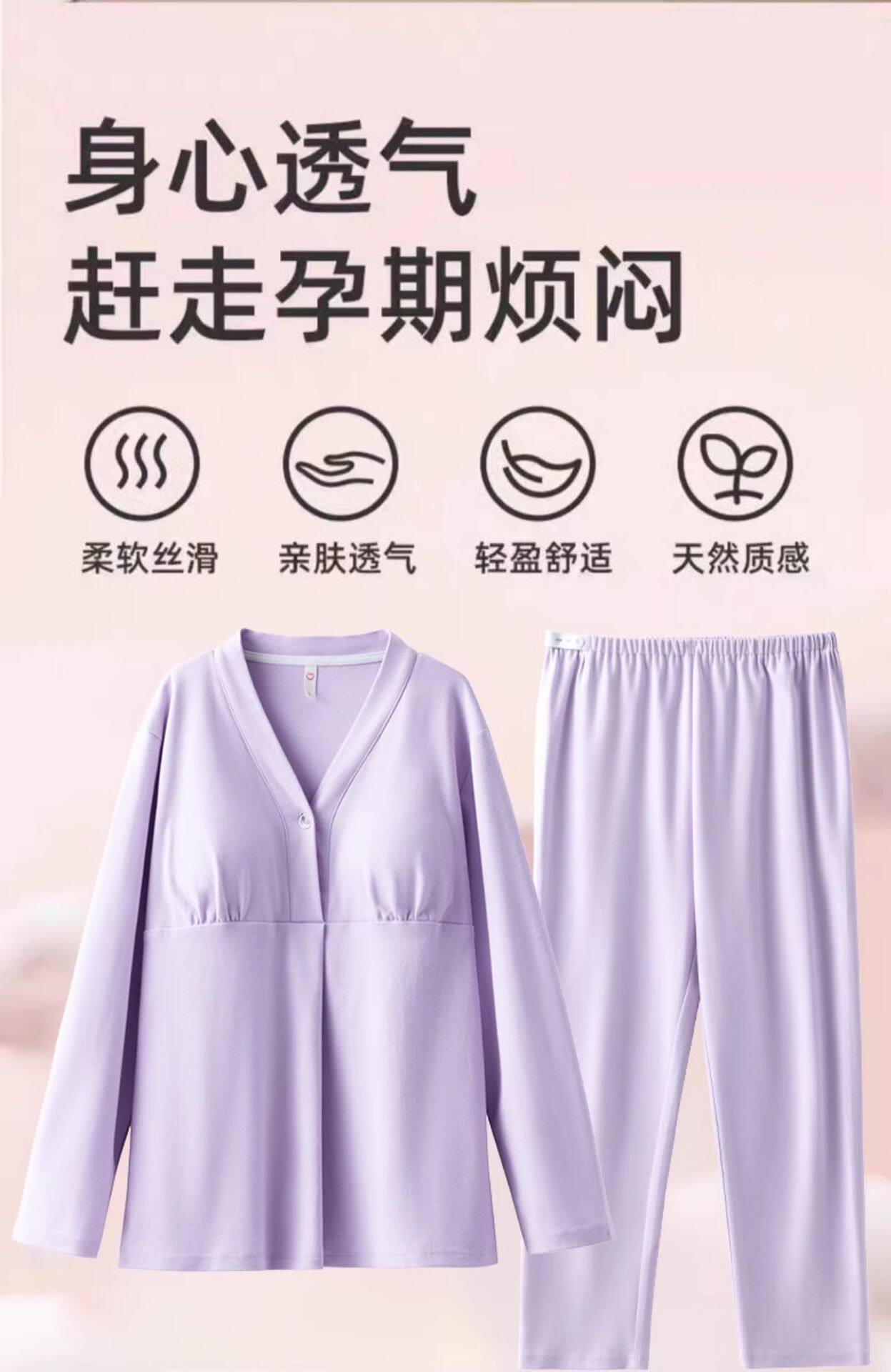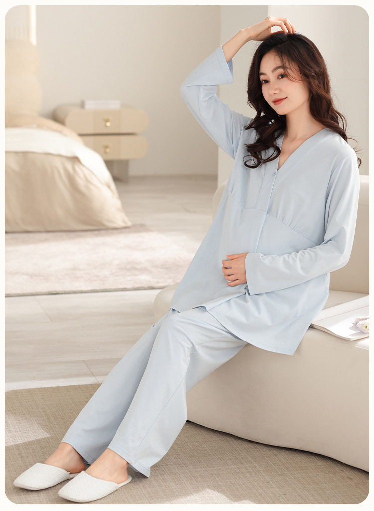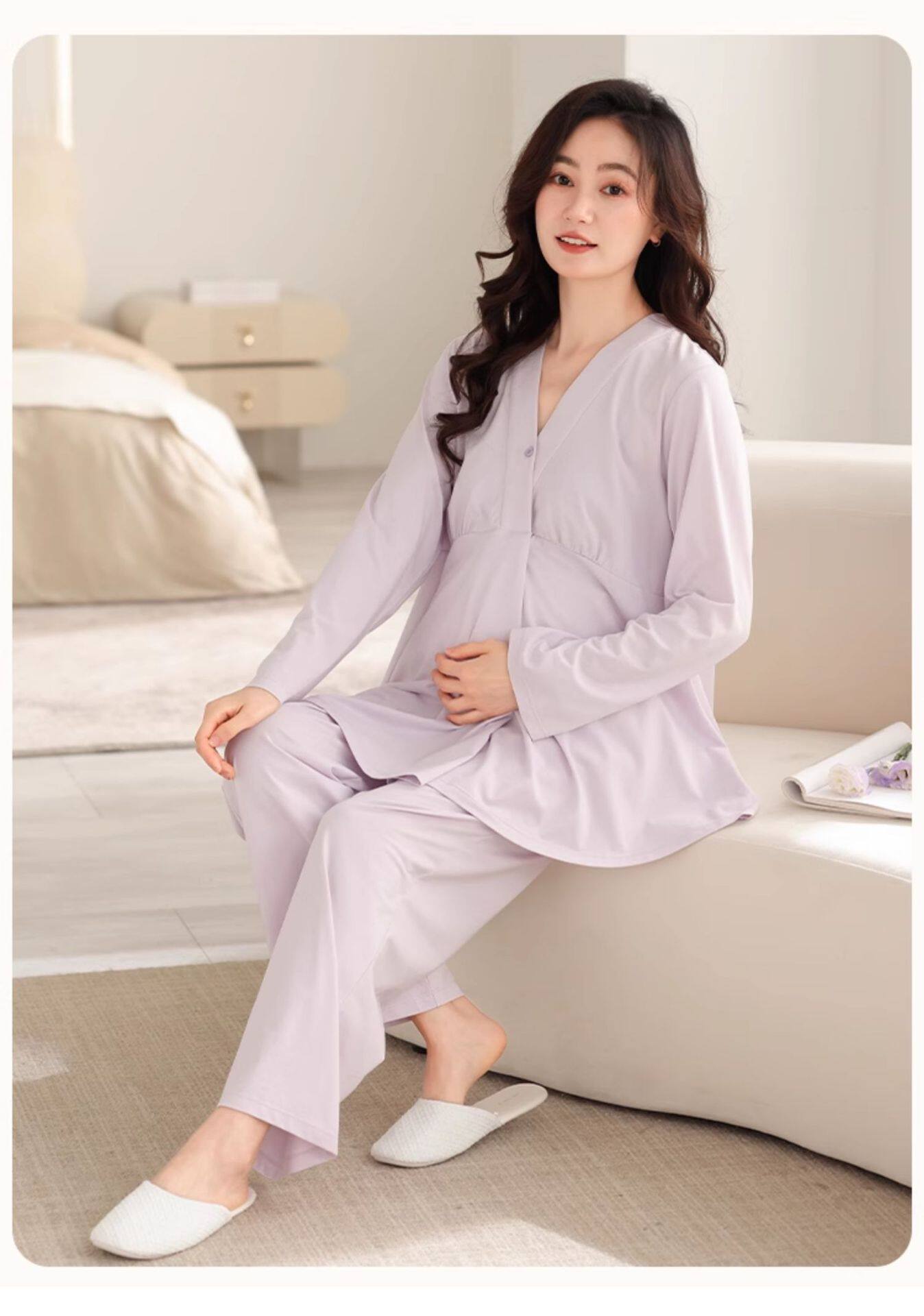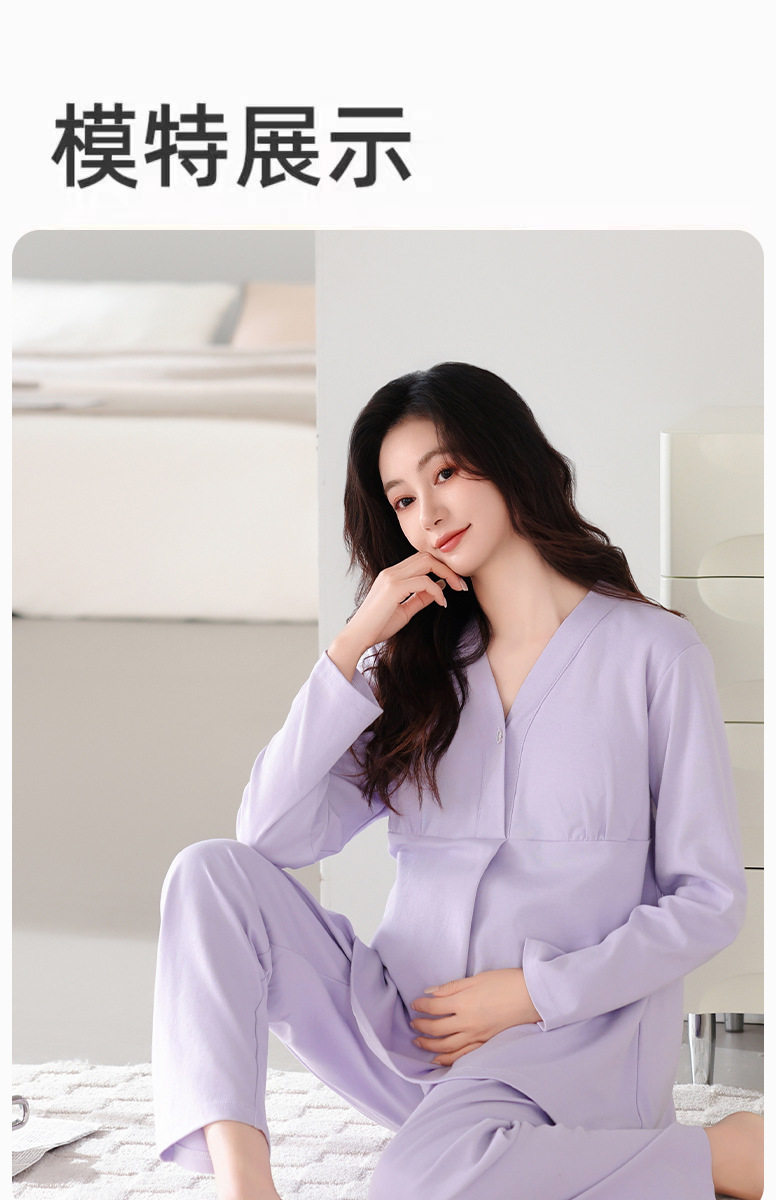 Jingqi with Breast Pad Confinement Clothes Autumn and Winter Pure Cotton Postpartum Breastfeeding Maternity Pajamas Pregnancy Breastfeeding Home Clothes Set