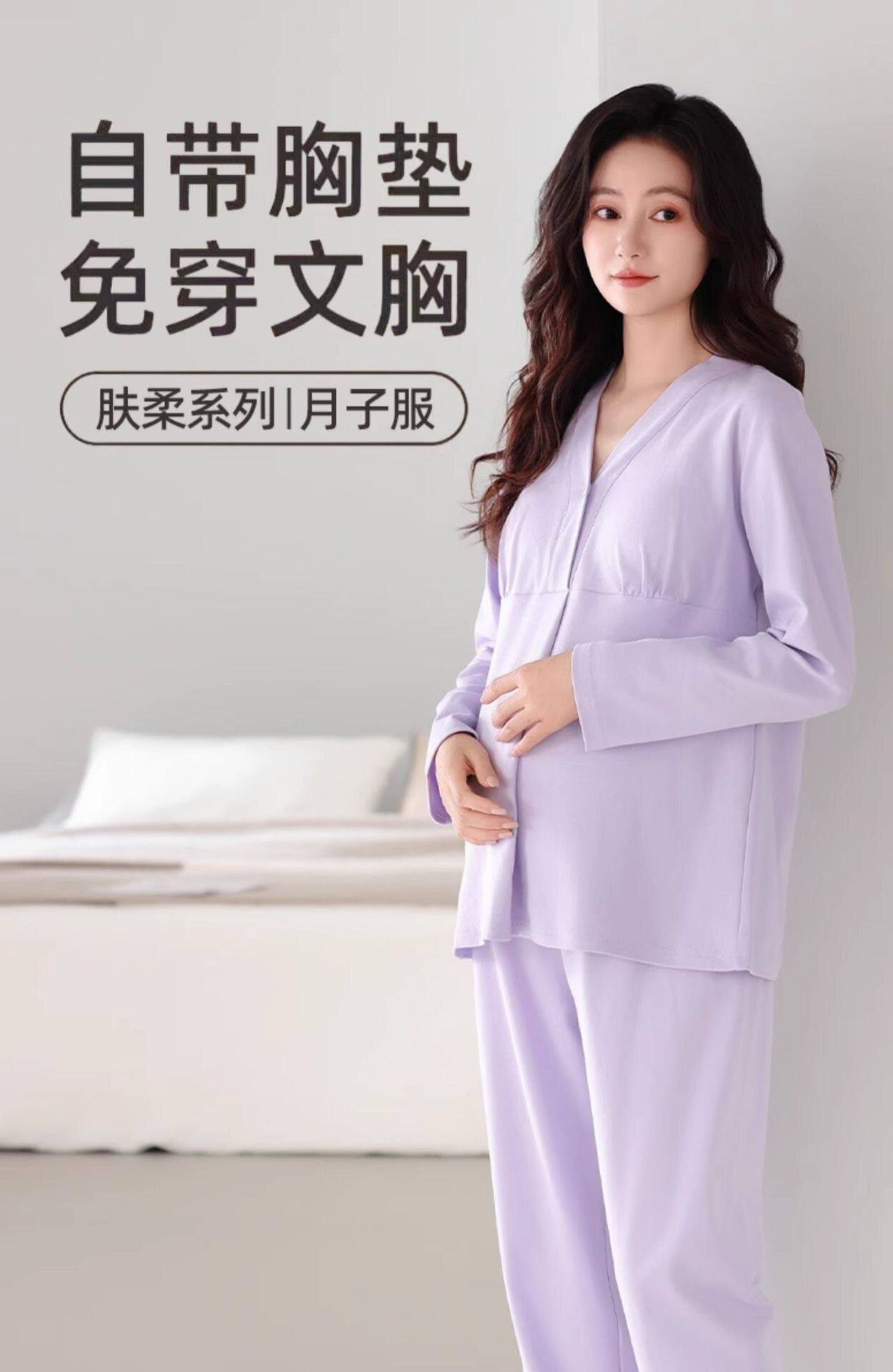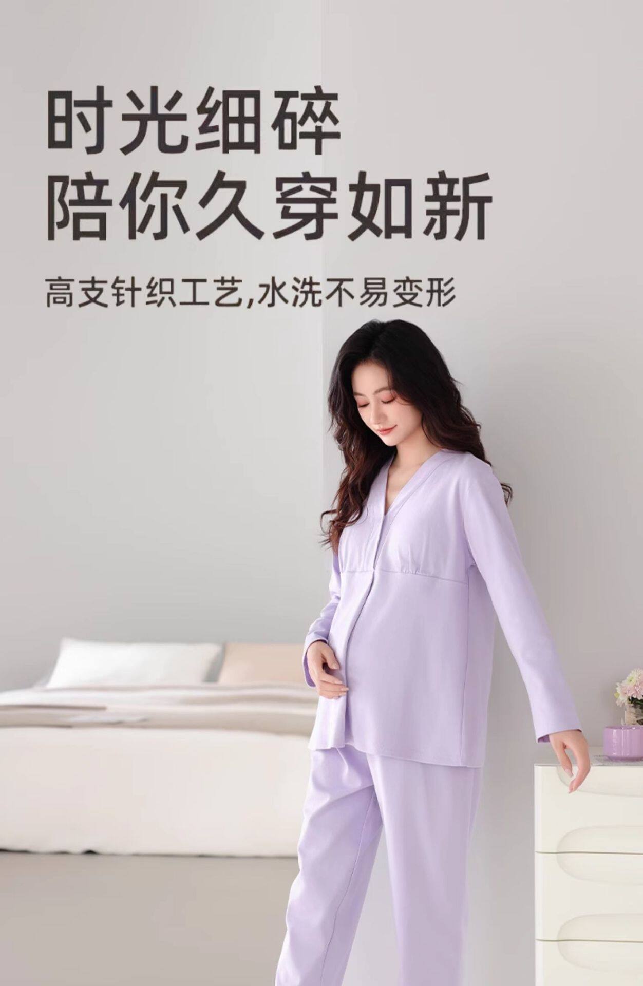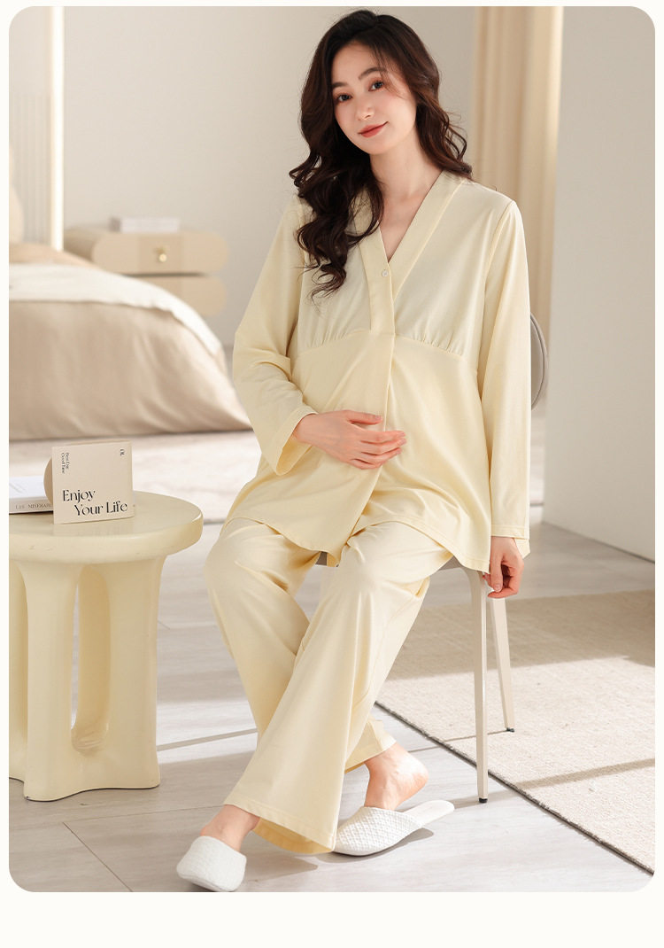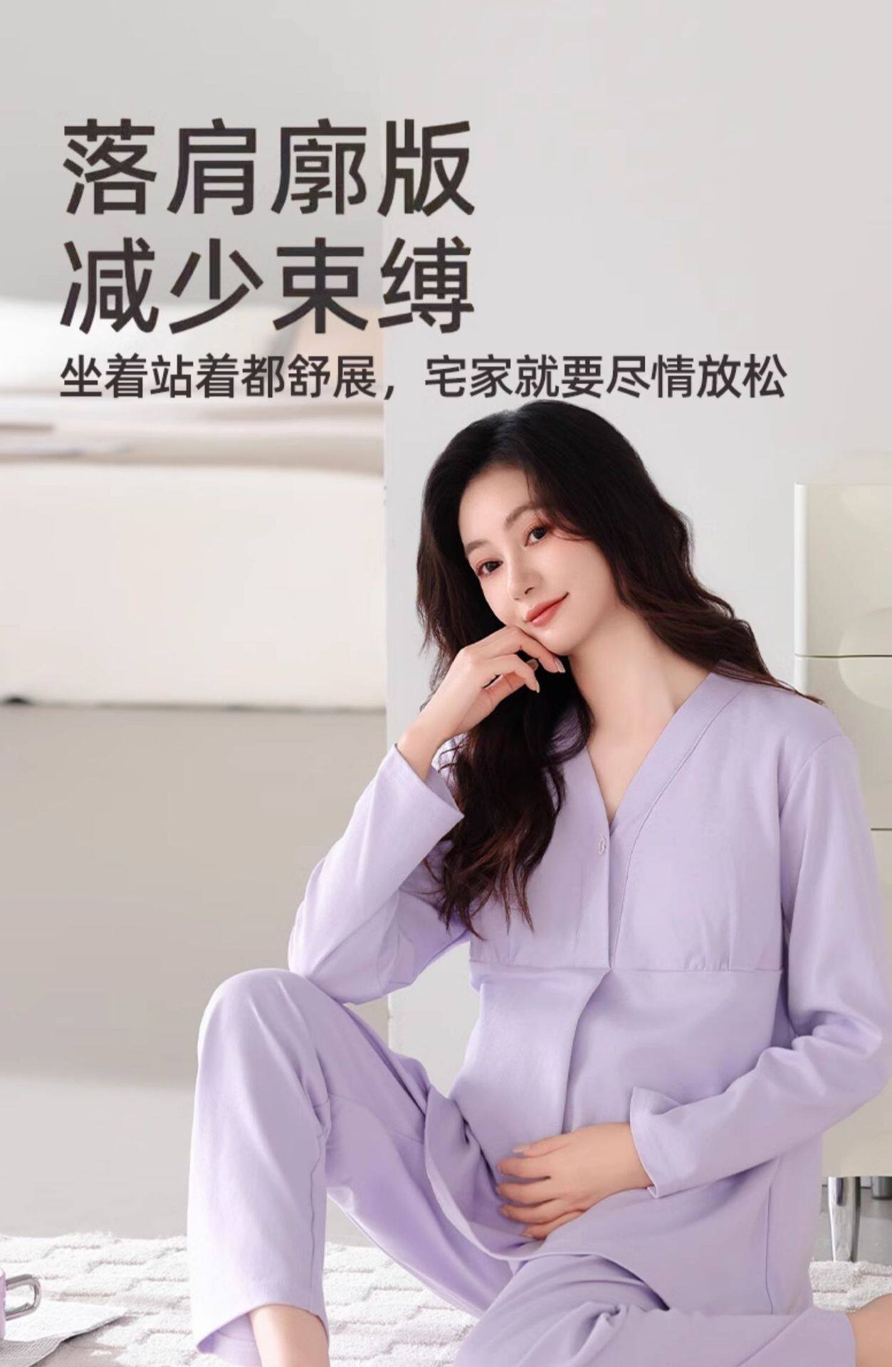 Jingqi with Breast Pad Confinement Clothes Autumn and Winter Pure Cotton Postpartum Breastfeeding Maternity Pajamas Pregnancy Breastfeeding Home Clothes Set