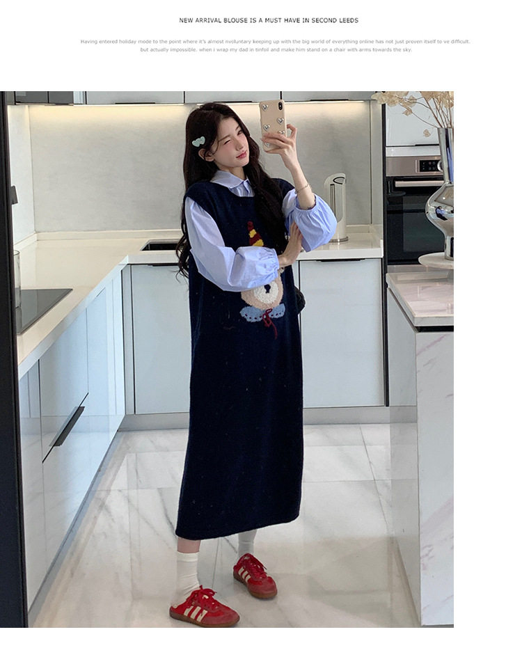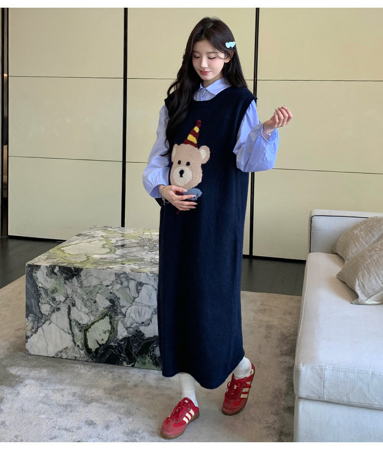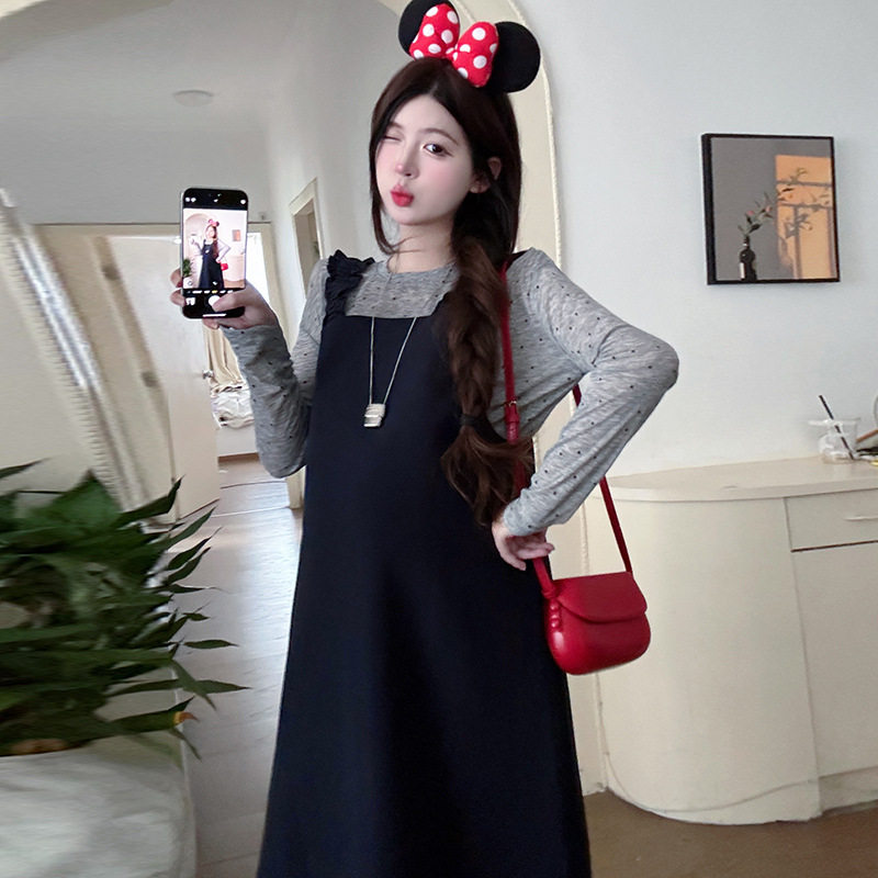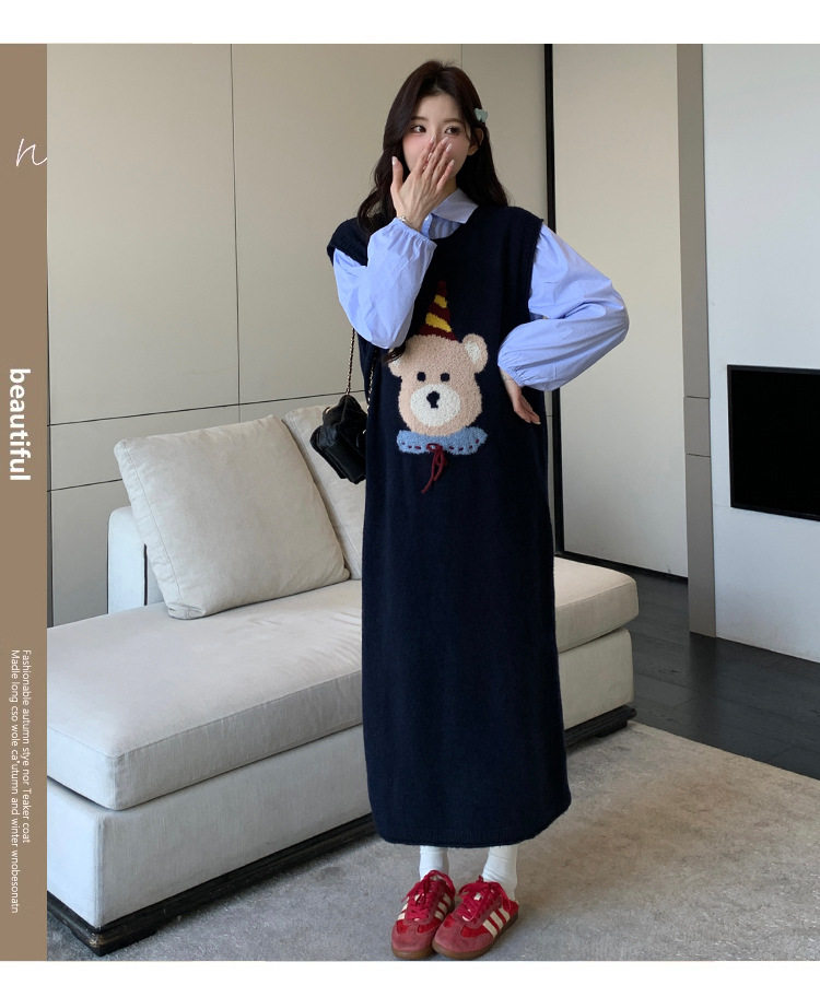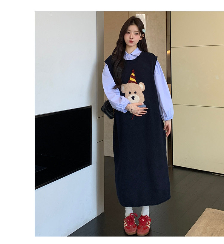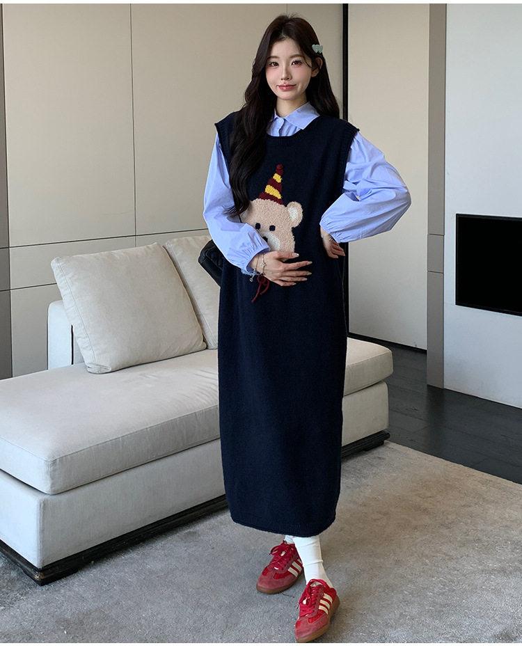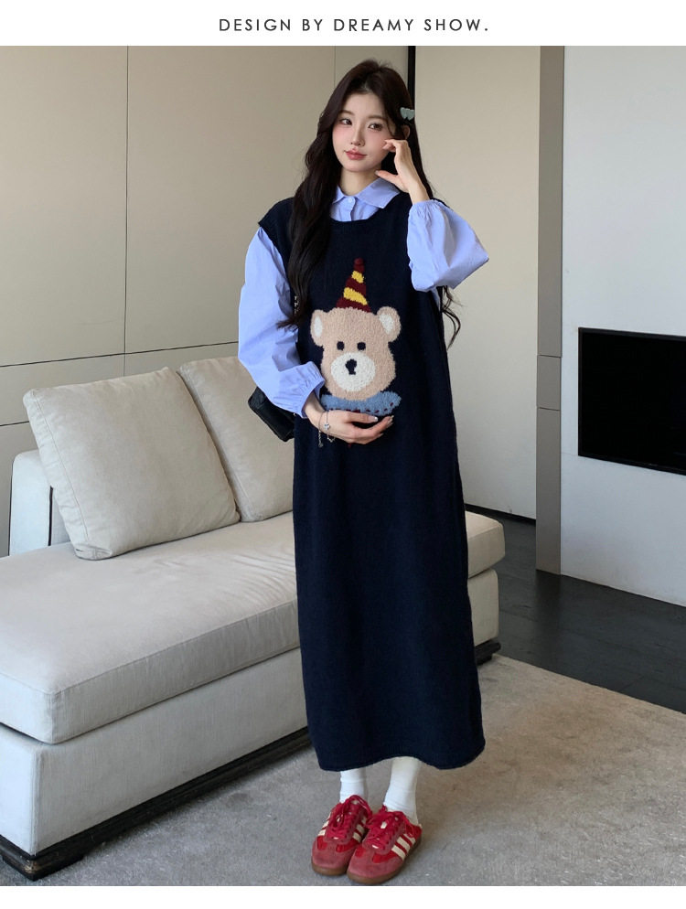 Jingqi Maternity Dress Set New Stylish Casual Loose Bear Suspender Skirt Shirt Two-Piece Set