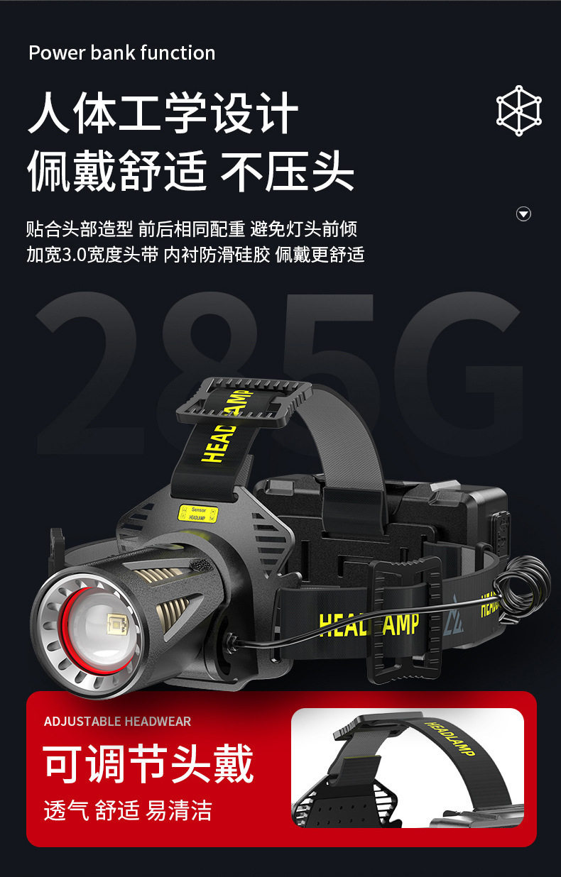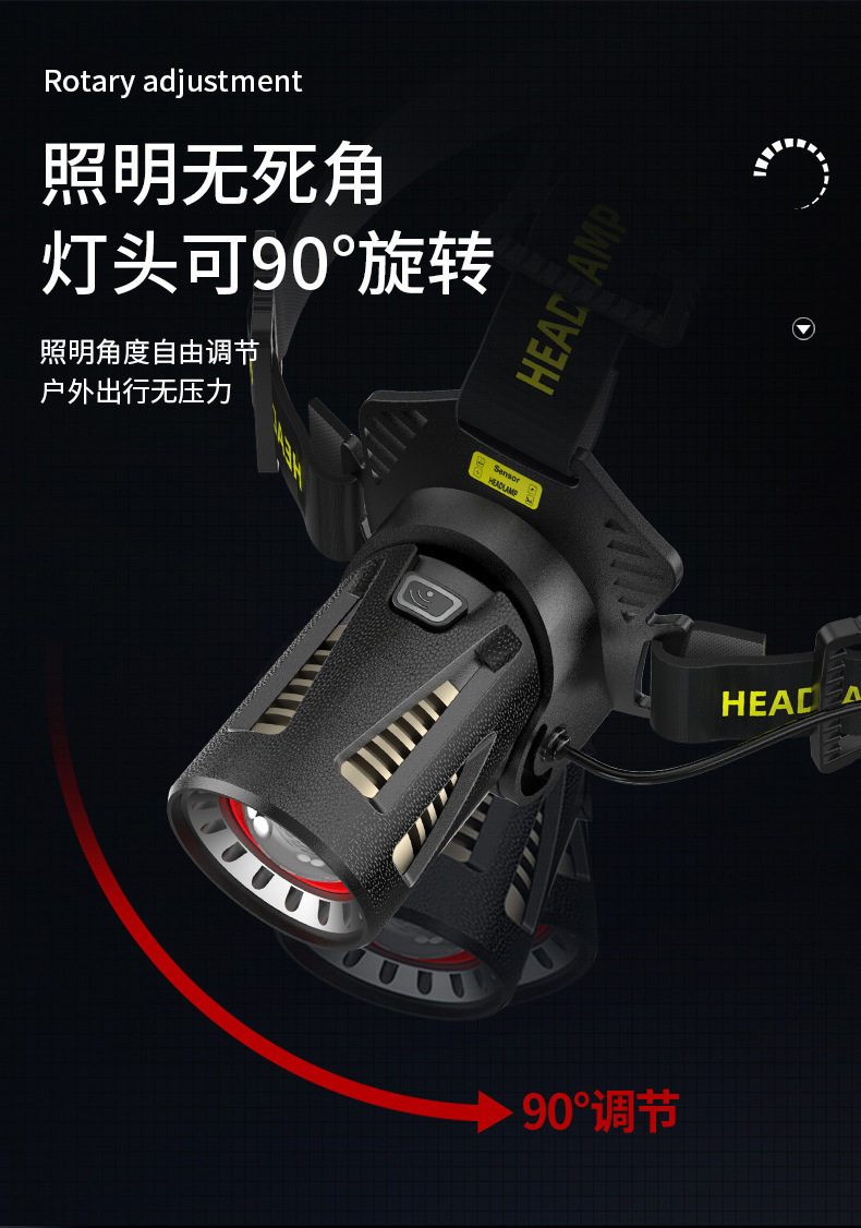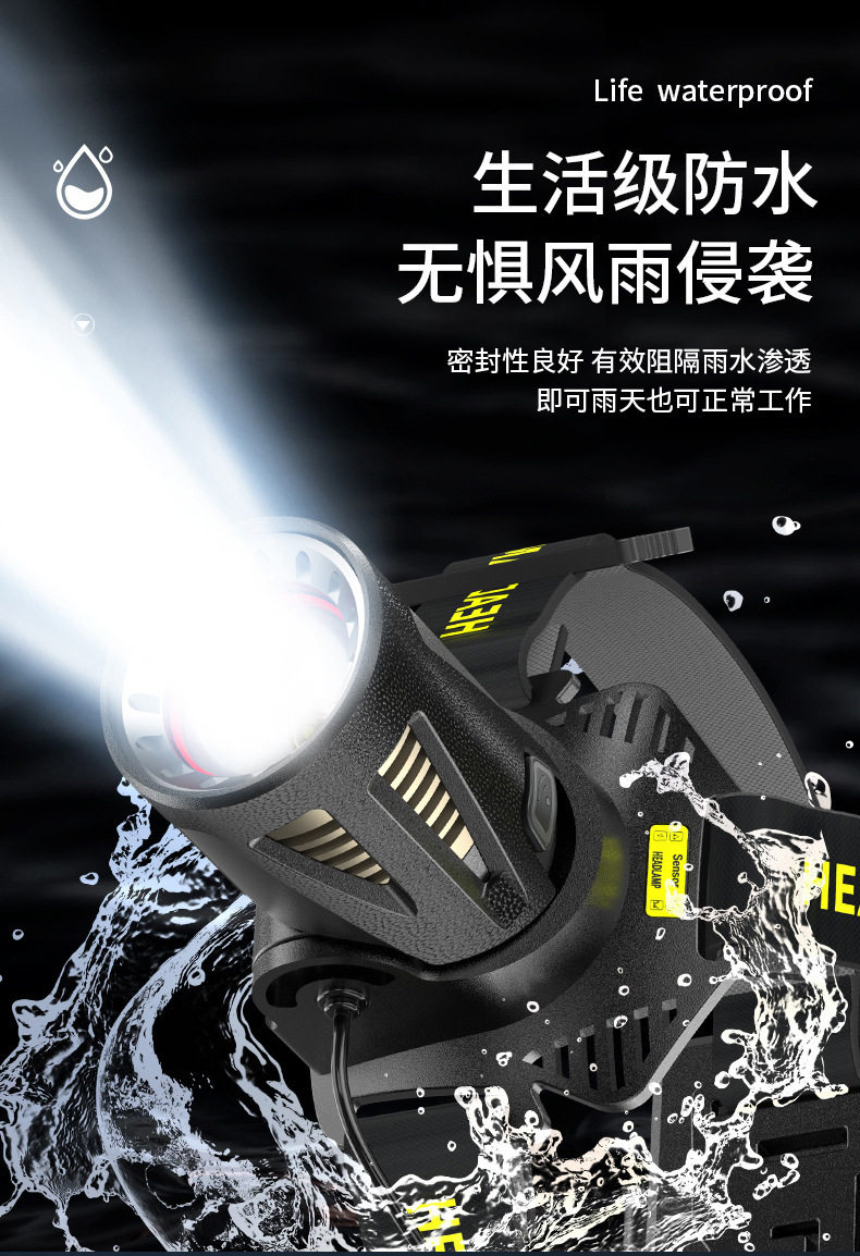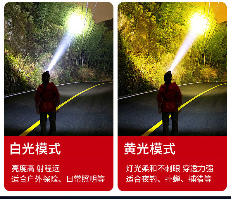 Headlamp with Strong Light, Rechargeable, Ultra-Bright, New Head-Mounted Flashlight, Ultra-Long Battery Life, Yellow Light, Special for Night Fishing