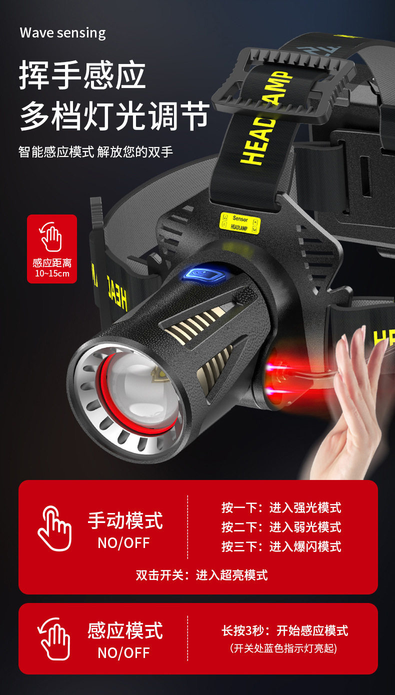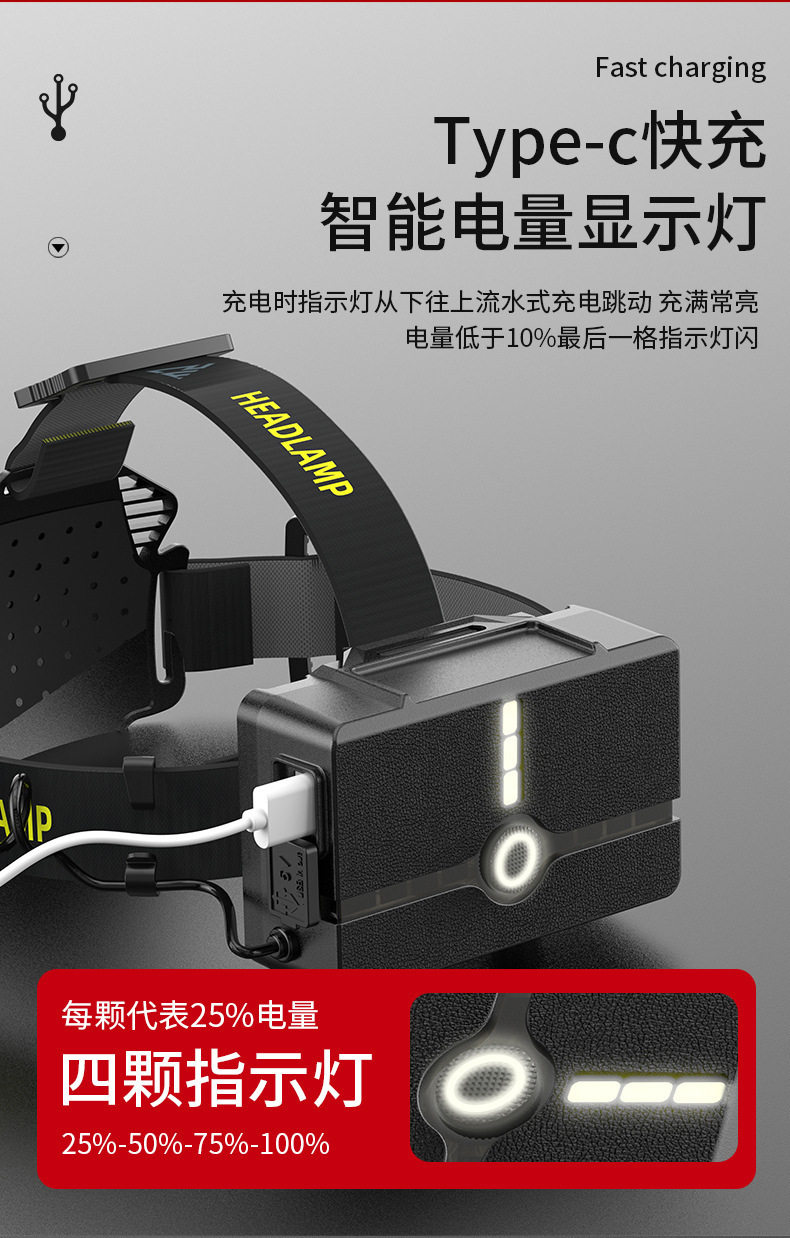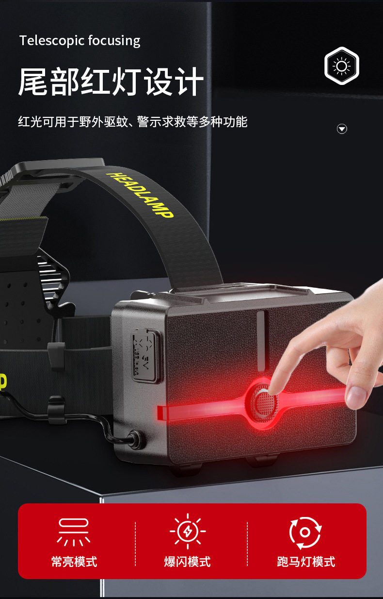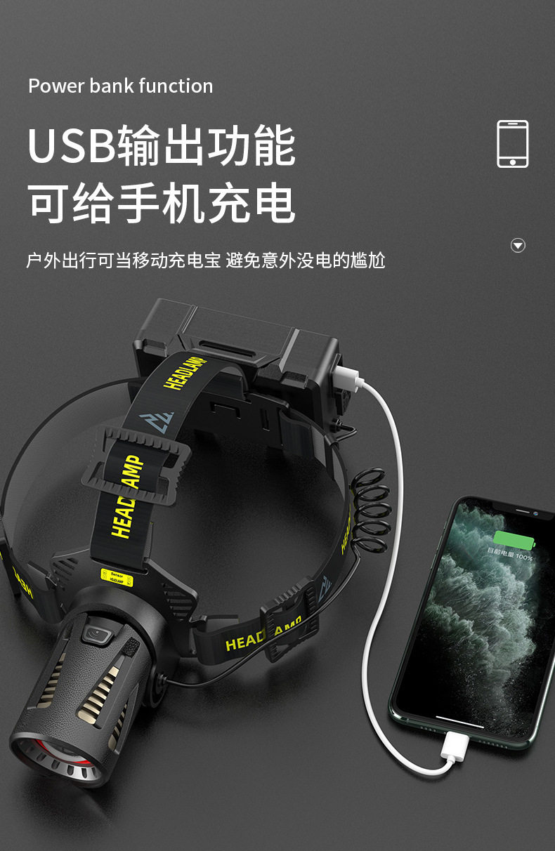 Headlamp with Strong Light, Rechargeable, Ultra-Bright, New Head-Mounted Flashlight, Ultra-Long Battery Life, Yellow Light, Special for Night Fishing