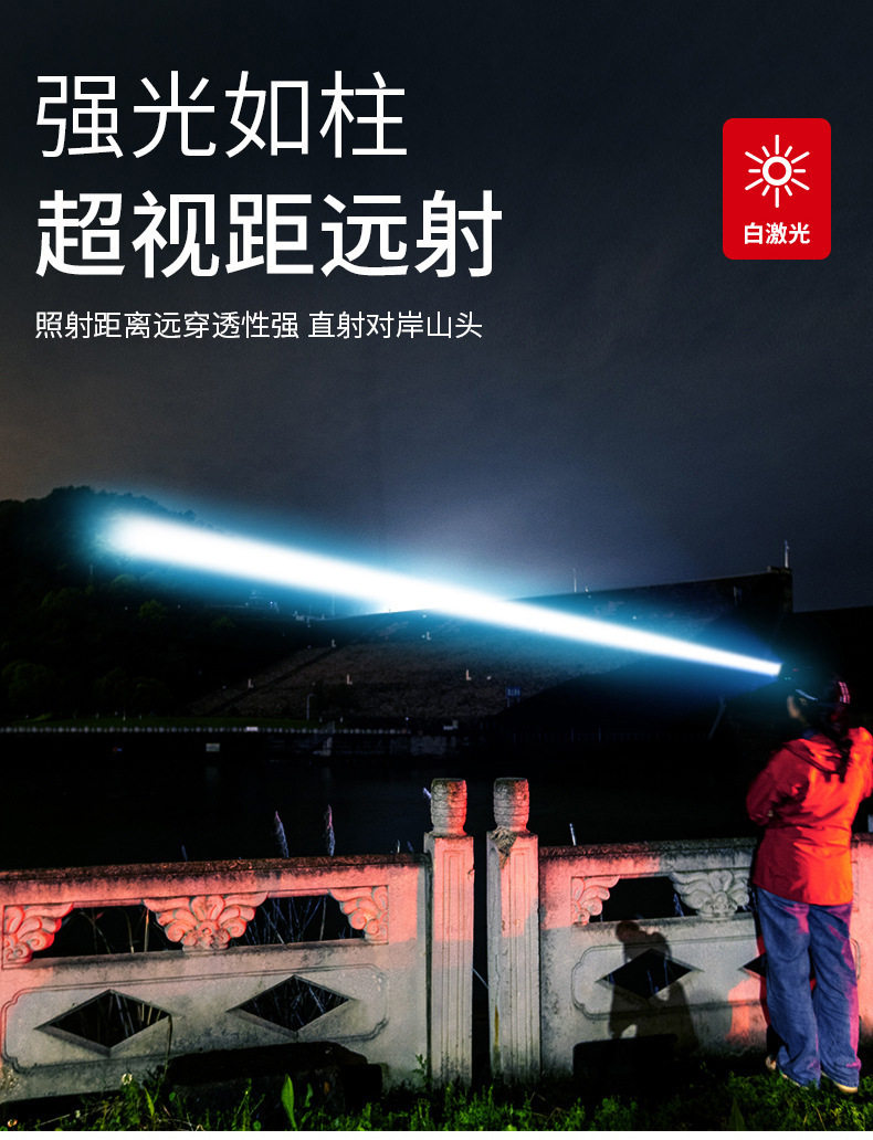| Color | Dual light source + 3 batteries,Dual light source + 6 batteries,White laser + 3 batteries,White laser + 6 batteries,Dual light source without battery,White laser without battery |