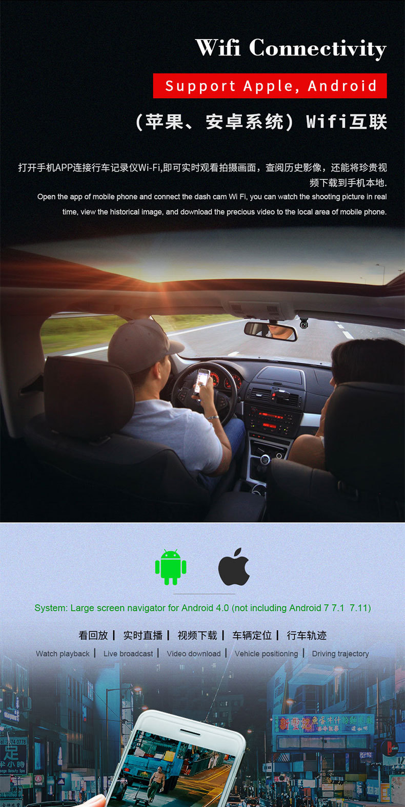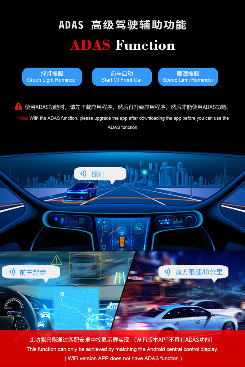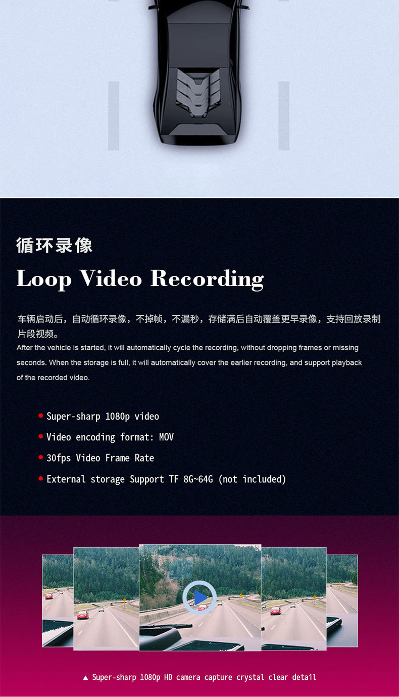 | Function | Loop recording,Car ahead starting reminder,Short video sharing |
