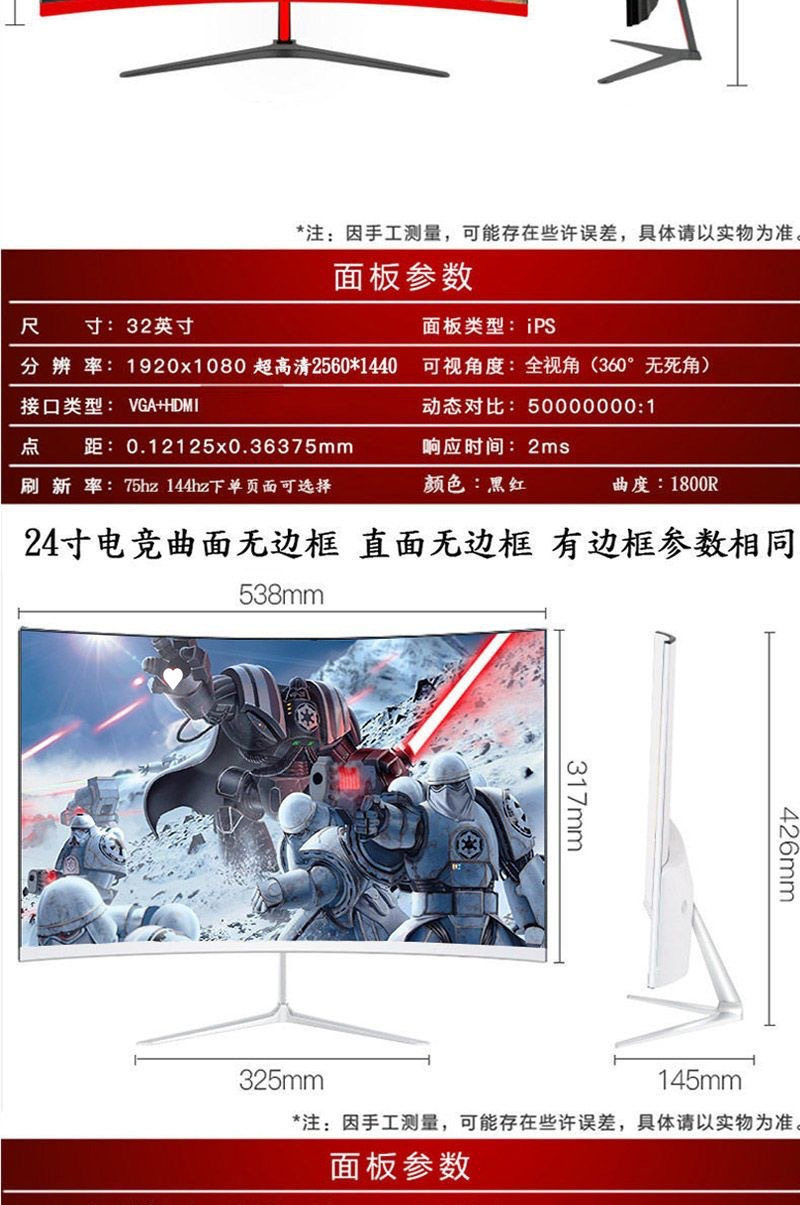 | Size | Brand new machine, the first choice for cost-effectiveness. minor flaws will not affect use at all. three-year warranty,E-sports curved white level-co-branded model 25-inch 1k75hz borderless【3】,E-sports curved white level-co-branded model 25-inch 1k100hz borderless【3】,E-sports curved white level-co-branded model 24-inch 1k144hz borderless【3】,E-sports curved white level-co-branded model 24-inch 1k165hz borderless【3】,E-sports curved white level-co-branded model 24-inch 1k180hz borderless【3】,E-sports curved white level-co-branded model 24-inch 1k200hz borderless【3】,E-sports curved white level - joint model 24 inches 1k240hz borderless [3],E-sports curved white level-co-branded model 24-inch 1k300hz borderless【3】,E-sports curved white level-co-branded model 24-inch 2k144hz borderless【3】,E-sports curved white level-co-branded model 24-inch 2k165hz borderless【3】,E-sports curved white level-co-branded model 24-inch 2k180hz borderless【3】,E-sports curved white level - joint model 24-inch 2k144hz dual configuration borderless [3],E-sports curved white level-co-branded model 27-inch 1k75hz borderless【3】,E-sports curved white level-co-branded model 27-inch 1k100hz borderless【3】,E-sports curved white level-co-branded model 27-inch 1k144hz borderless【3】,E-sports curved white level-co-branded model 27-inch 1k165hz borderless【3】,E-sports curved white level-co-branded model 27-inch 1k180hz borderless【3】,E-sports curved white level-joint model 27-inch 1k200hz frameless [3],E-sports curved white level-co-branded model 27-inch 1k240hz borderless【3】,E-sports curved white level-co-branded model 27-inch 1k280hz borderless【3】,E-sports curved white level - joint model 27-inch 2k100hz borderless [3],E-sports curved white level-co-branded model 27-inch 2k144hz borderless【3】,E-sports curved white level-co-branded model 27-inch 2k165hz borderless【3】,E-sports curved white level - joint model 27-inch 2k180hz borderless [3],E-sports curved white level-co-branded model 27-inch 2k144hz dual configuration borderless【3】,E-sports curved white level-co-branded model 27-inch 2k240hz borderless【3】,E-sports curved white level - joint model 32 inches 1k144hz borderless [3],E-sports curved white level-co-branded model 32-inch 1k165hz borderless【3】,E-sports curved white level-joint model 32inch borderless 1k180hz borderless【3】,E-sports curved white level-co-branded model 32-inch 1k200hz frameless [3],E-sports curved white level - joint model 32 inches 1k240hz borderless [3],E-sports curved white level - joint model 32 inches 1k280hz borderless [3],E-sports curved white level-joint model 32inch borderless 2k144hz borderless【3】,E-sports curved white level-joint model 32inch borderless 2k165hz borderless【3】,E-sports curved white level-joint model 32inch borderless 2k180hz borderless【3】,E-sports curved white level - joint model 32-inch 2k144hz dual configuration borderless [3],E-sports curved white level-co-branded model 32-inch 4k144hz dual configuration [3],E-sports curved black level (black and red can be noted) - joint model 24-inch 1k100hz event promotion,E-sports curved black level (black and red can be noted) - joint model 25-inch 1k75hz borderless [3],E-sports curved black level (black and red can be noted) - joint model 25-inch 1k100hz borderless [3],E-sports curved black level (black and red can be noted) - joint model 24-inch 1k75hz event promotion,E-sports curved black level (black and red can be noted) - joint model 24-inch 1k144hz borderless [3],E-sports curved black level (black and red can be noted) - joint model 24-inch 1k165hz borderless [3],E-sports curved black level (black and red can be noted) - joint model 24-inch 1k180hz borderless [3],E-sports curved black level (black and red can be noted) - joint model 24-inch 1k200hz borderless [3],E-sports curved black level (black and red can be noted) - joint model 24-inch 1k240hz borderless [3],E-sports curved black level (black and red can be noted) - joint model 24-inch 1k300hz borderless [3],E-sports curved black level (black and red can be noted) - joint model 24-inch 2k144hz borderless [3],E-sports curved black level (black and red can be noted) - joint model 24-inch 2k165hz borderless [3],E-sports curved black level (black and red can be noted) - joint model 24-inch 2k180hz borderless [3],E-sports curved black level (black and red can be noted) - joint model 24-inch 2k144hz dual configuration borderless [3],E-sports curved black level (black and red can be noted) - joint model 27-inch 1k75hz borderless [3],E-sports curved black level (black and red can be noted) - joint model 27 inches 1k100hz borderless [3],E-sports curved black level (black and red can be noted) - joint model 27-inch 1k144hz borderless [3],E-sports curved black level (black and red can be noted) - joint model 27 inches 1k165hz borderless [3],E-sports curved black level (black and red can be noted) - joint model 27 inches 1k180hz borderless [3],E-sports curved black level (black and red can be noted) - joint model 27 inches 1k200hz frameless [3],E-sports curved black level (black and red can be noted) - joint model 27-inch 1k240hz borderless [3],E-sports curved black level (black and red can be noted) - joint model 27 inches 1k280hz borderless [3],E-sports curved black level (black and red can be noted) - joint model 27-inch 2k100hz borderless [3],E-sports curved black level (black and red can be noted) - joint model 27-inch 2k144hz borderless [3],E-sports curved black level (black and red can be noted) - joint model 27-inch 2k165hz borderless [3],E-sports curved black level (black and red can be noted) - joint model 27-inch 2k180hz borderless [3],E-sports curved black level (black and red can be noted) - joint model 27-inch 2k144hz dual configuration borderless [3],E-sports curved black level (black and red can be noted) - joint model 27-inch 2k240hz borderless [3],E-sports curved bla