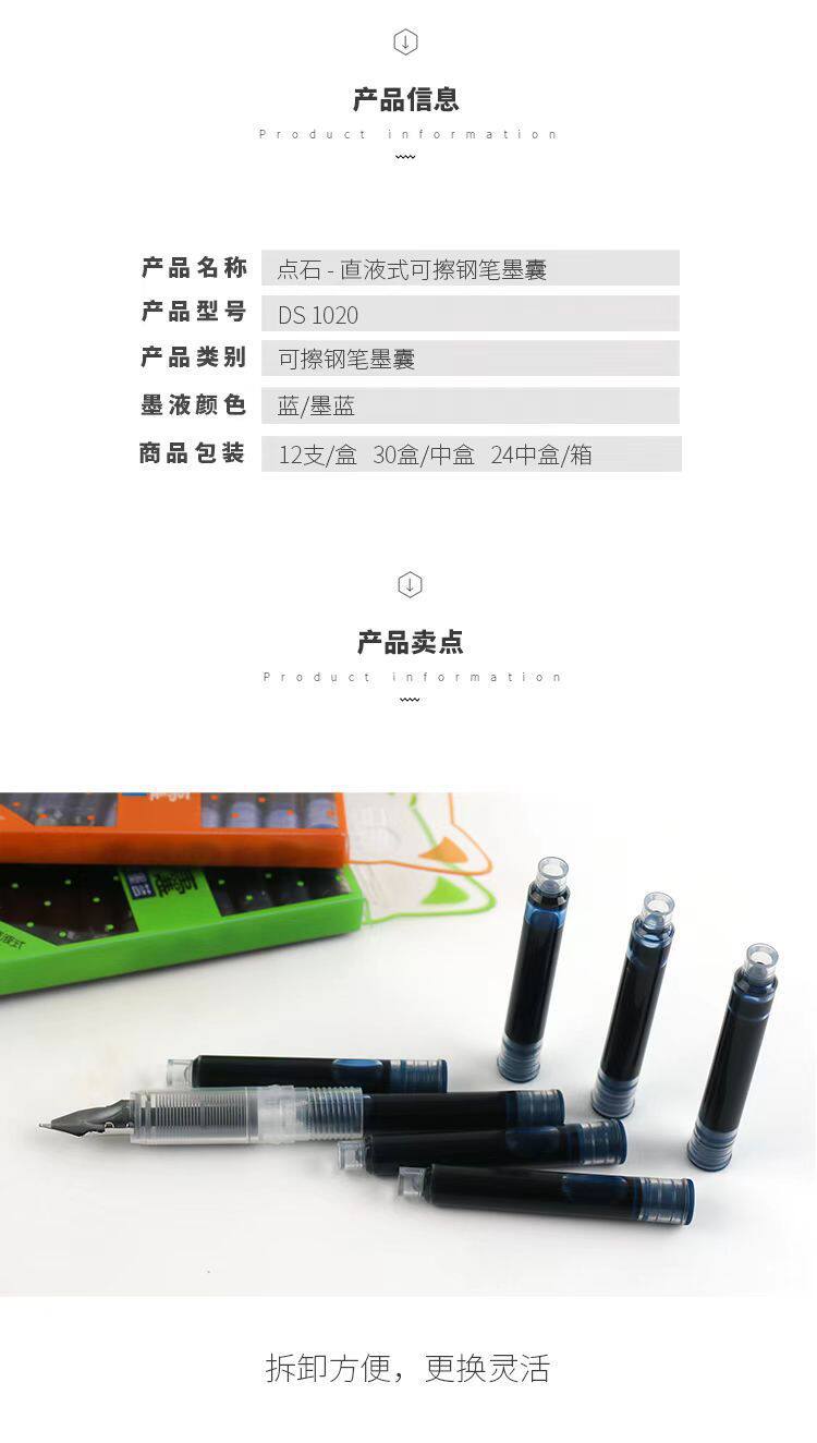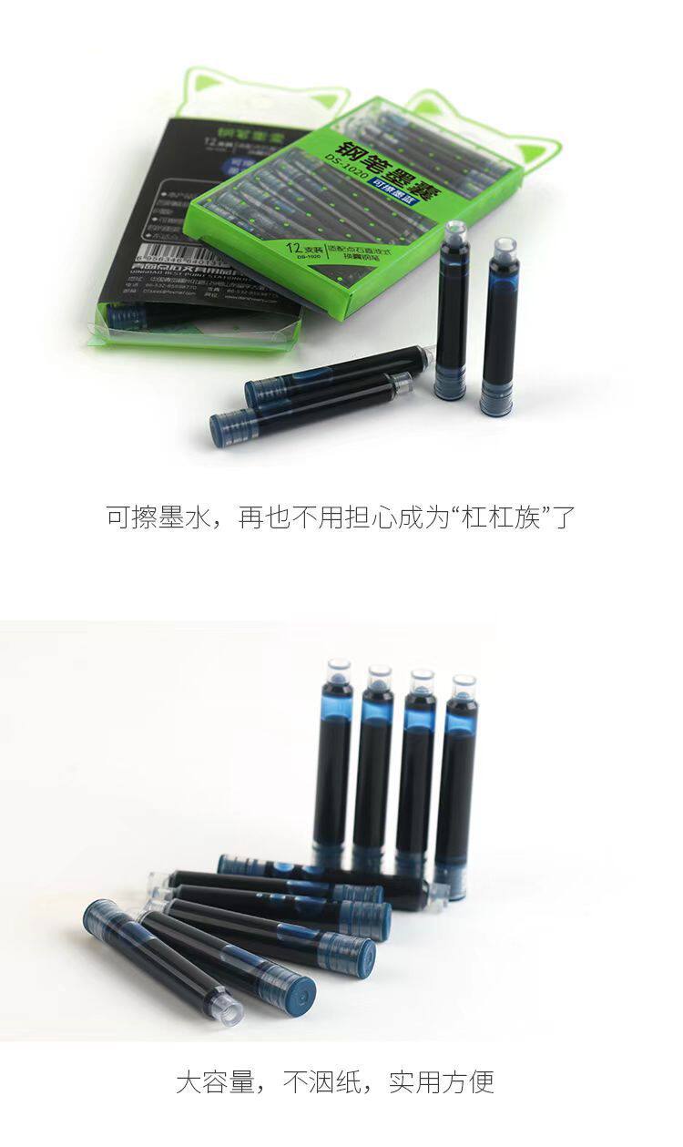 Dianshi 1020 Pen Universal Ink Bag 3.4 Caliber Primary School Students Special Erasable Blue Pen Ink Bag Black Wholesale