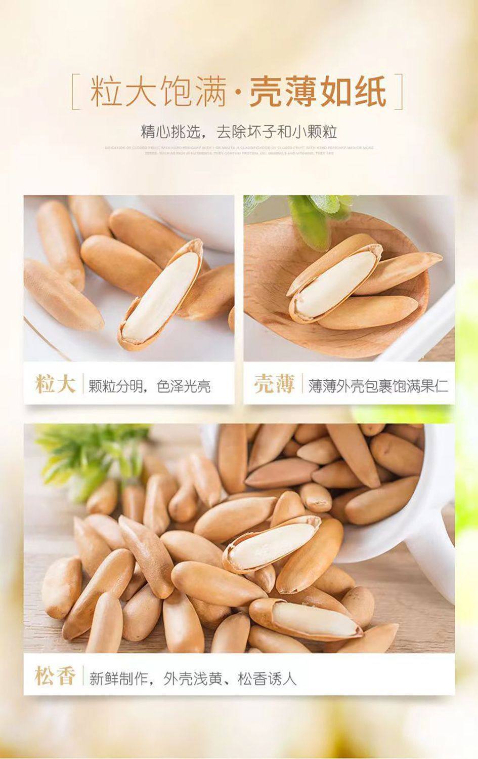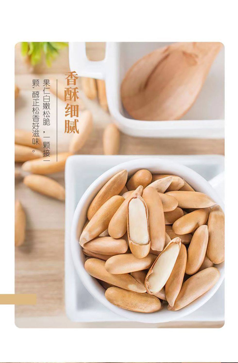 | Packaging specifications | Small tablets [1 pack independent],Small tablets [2 packs individually],10 bags】individually packaged shells with thin meat and good pine nuts,Selected ultra-low bad seed rate [10 packs individually] almost no bad seeds,20 bags】individually packaged shells with thin meat and good pine nuts,Selected ultra-low bad seed rate [20 packs individually] almost no bad seeds,Selected seeds with ultra-low bad seed rate [30 packs individually] almost no bad seeds |