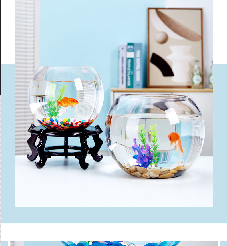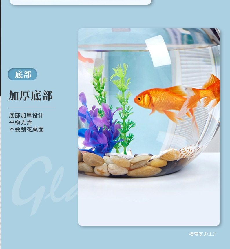 Office Desk Glass Fish Tank Goldfish Tank Aquarium Living Room Small Desktop Turtle Tank Transparent Round Home Shihua
