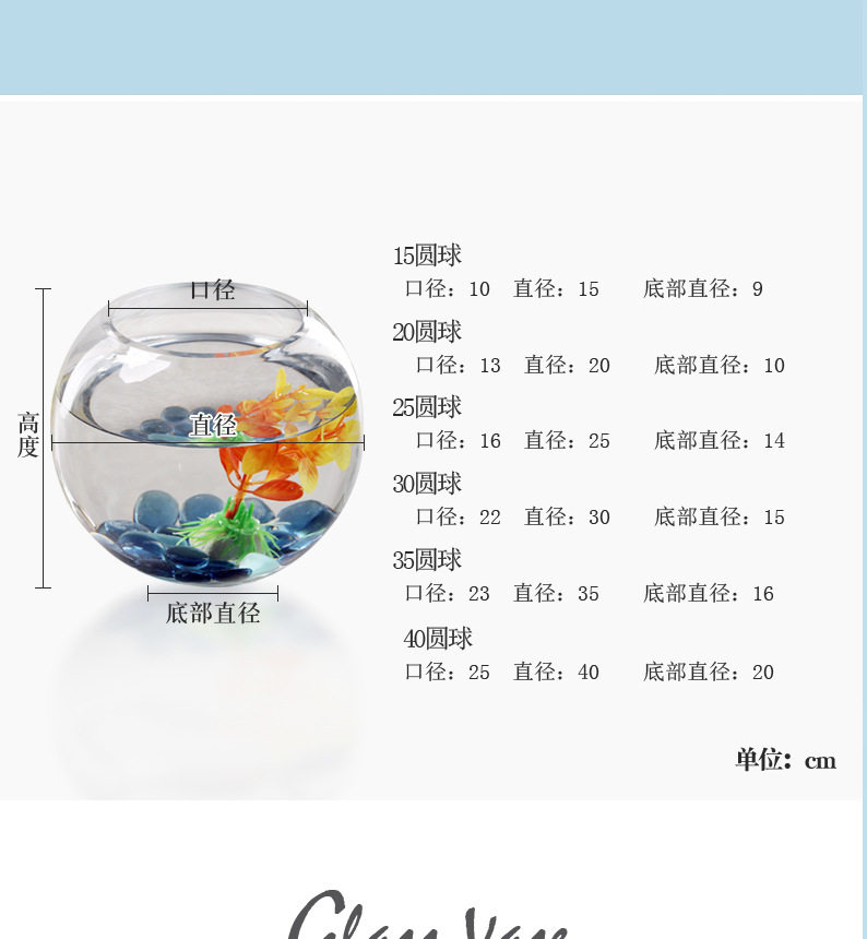 | Color | 15 round ball tank (suitable for raising a small fish),20 round ball cylinder free (+ colored stone),30 round ball cylinder |