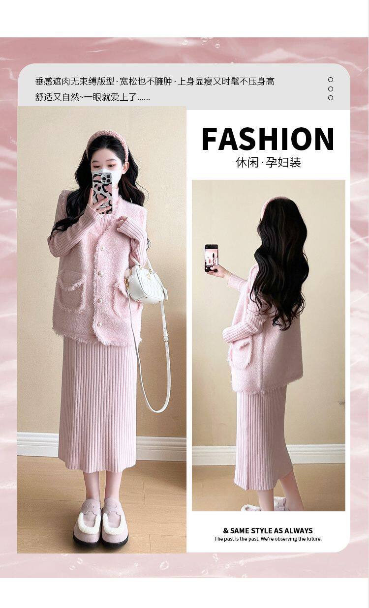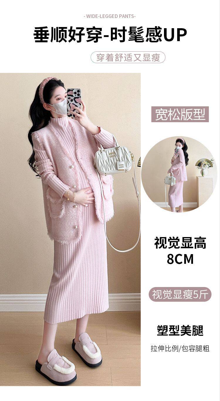 Maternity Wear Autumn and Winter Dress 2025 New Autumn Dress Small Fragrance Suit Mid-Length Autum Outing Two-Piece Set