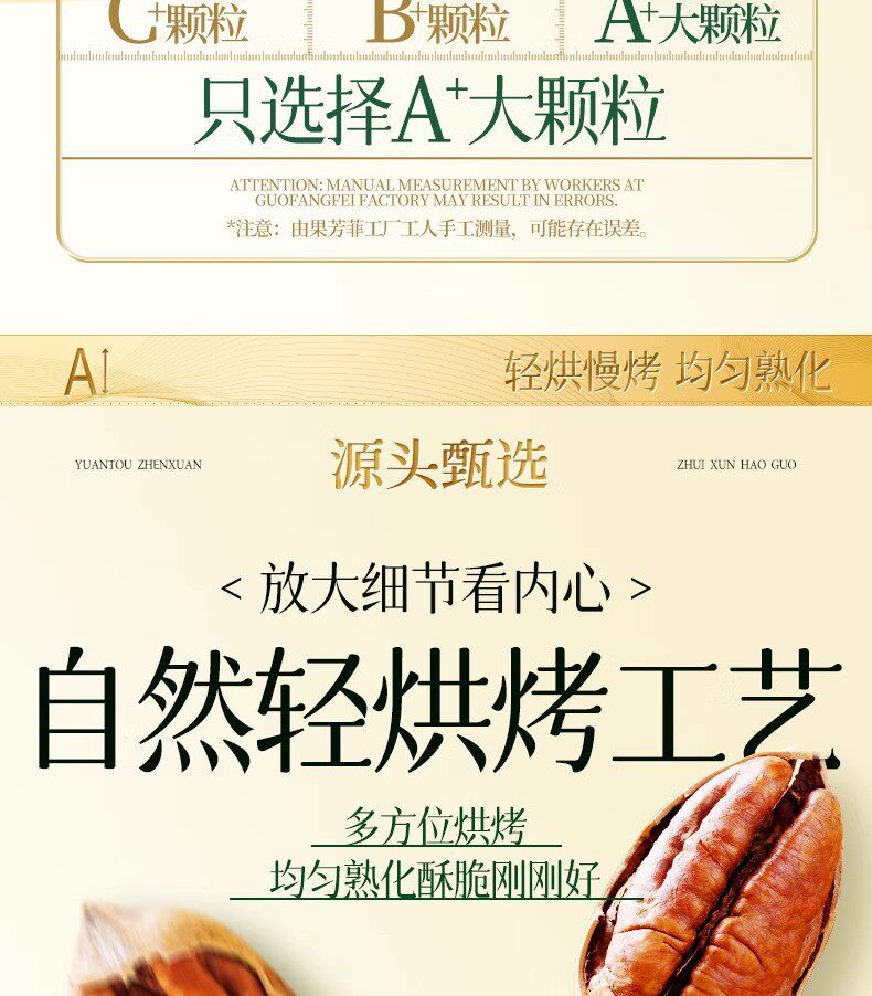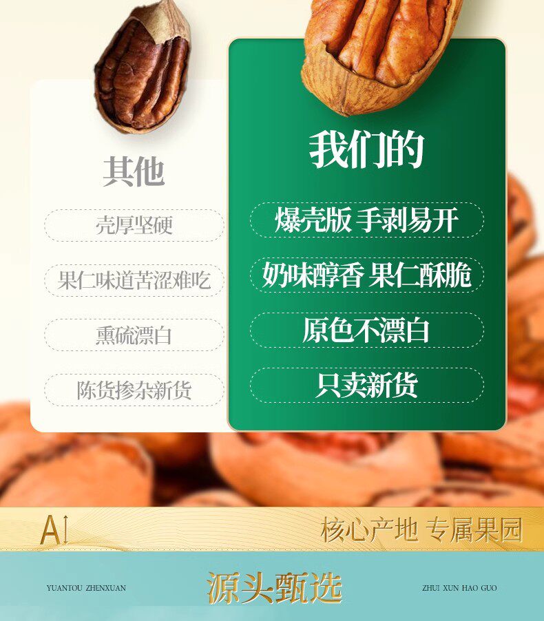 | Packaging specifications | New arrivals [extra large particles] pecans 250g*1 bag (new arrivals),Guaranteed compensation for bad fruits [extra large particles] pecans 500g*1 bag (new product),Guaranteed compensation for bad fruits [extra large particles] pecan 500g*1 can (new product),Guaranteed compensation for bad fruits [extra large particles] pecans 500g*2 bags (new goods),Guaranteed compensation for bad fruits [extra large particles] pecans 500g*2 cans (new goods),Guaranteed compensation for bad fruits [extra large particles] pecans 500g*3 bags (new goods),Guaranteed compensation for bad fruits [extra large particles] pecans 500g*3 cans (new goods) |