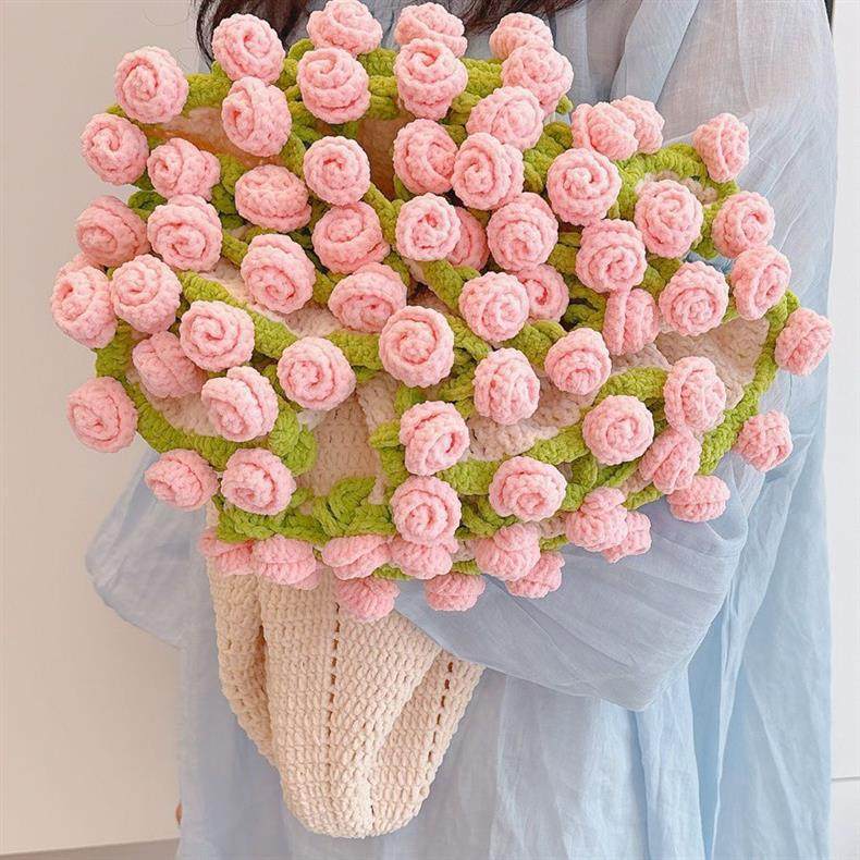 Hand-Knitted Rose Bouquet Blanket Material Package Wool Ball Crocheted Flower Wool Ball Crocheted for Friends
