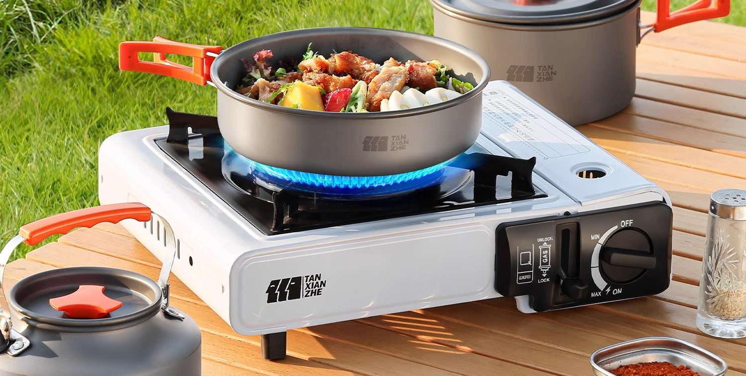 Cassette Stove Outdoor Portable New Stove Card Magnetic Stove Gas Stove Baking Pan Camping Picnic Full Set of Cookware