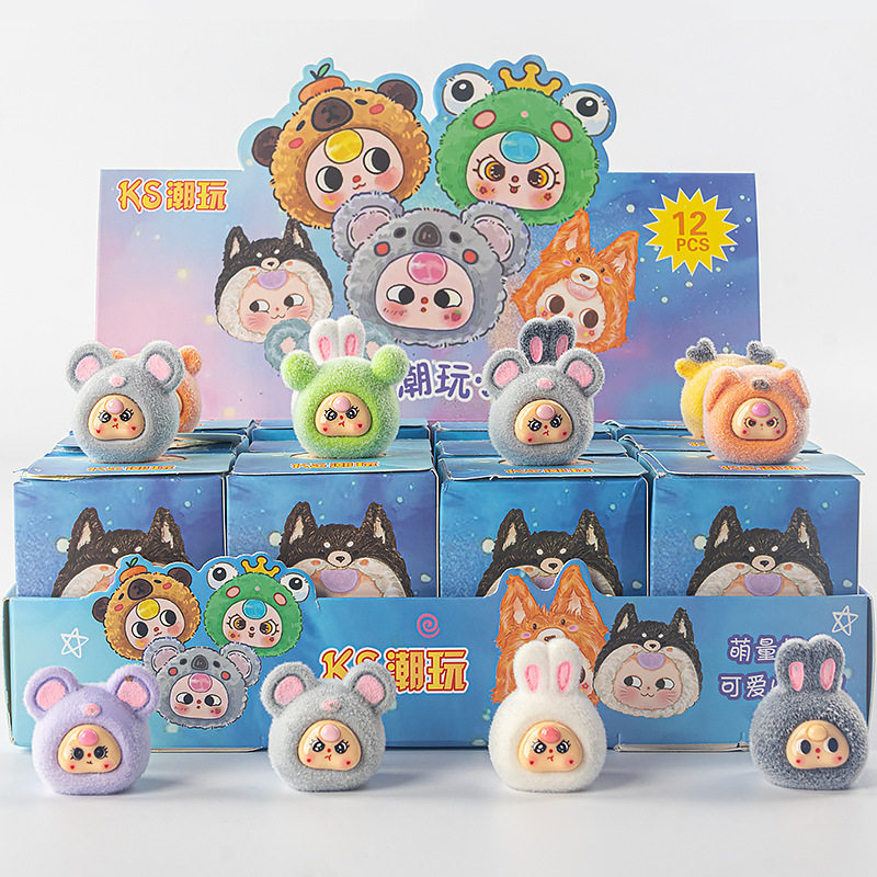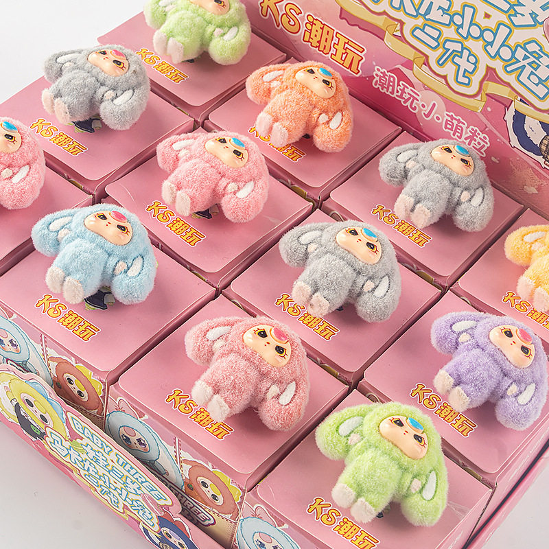 Cute Flocked Plush Small Ornaments Children's Toys Bubble Mart Stall Wholesale Trendy Toy Dolls Blind Bags Blind Boxes